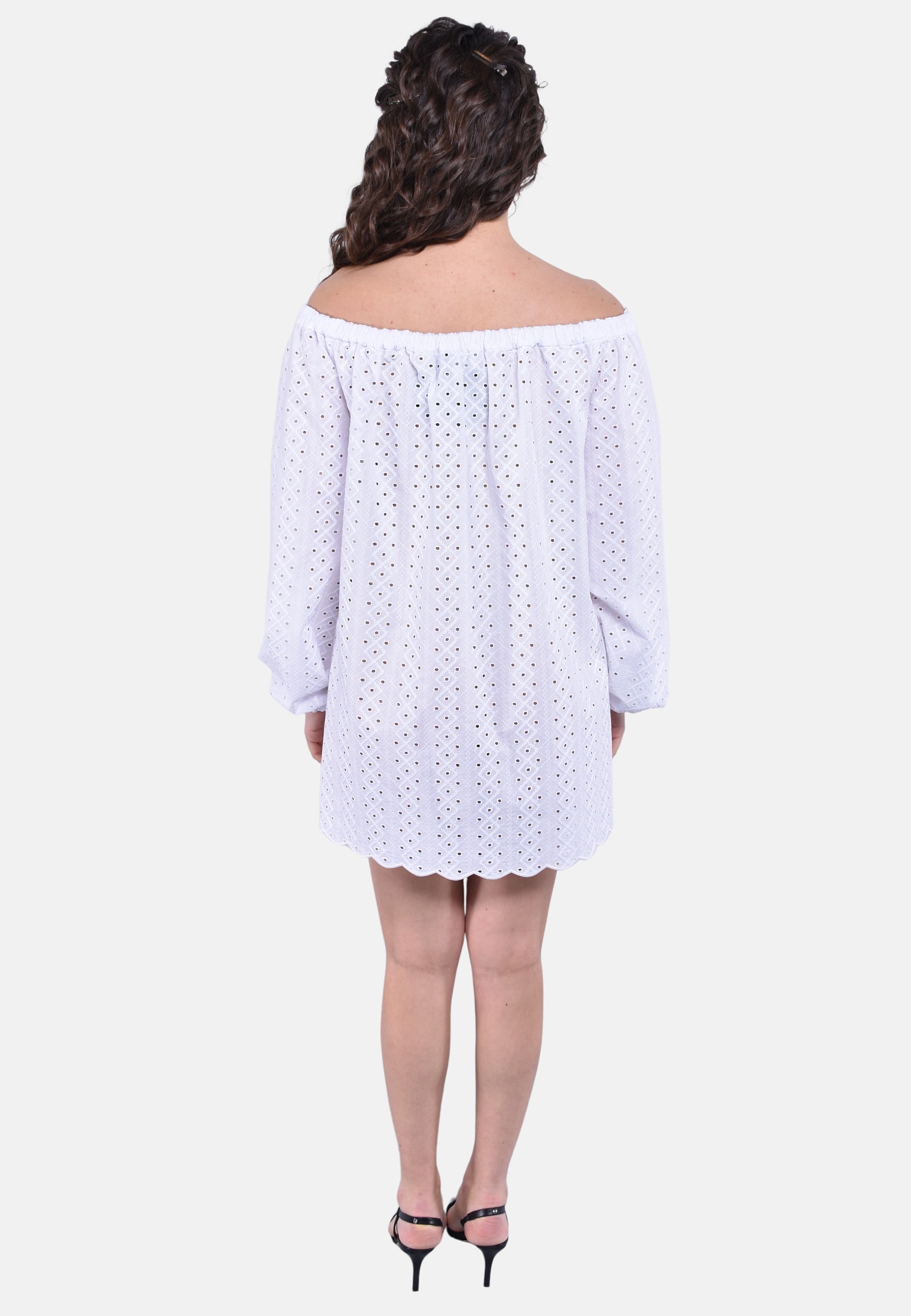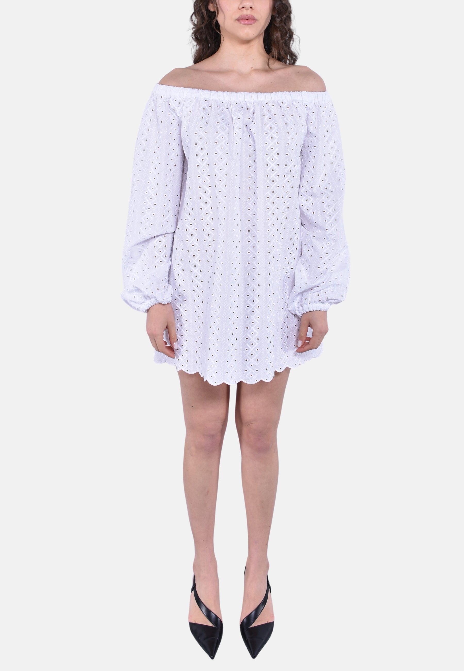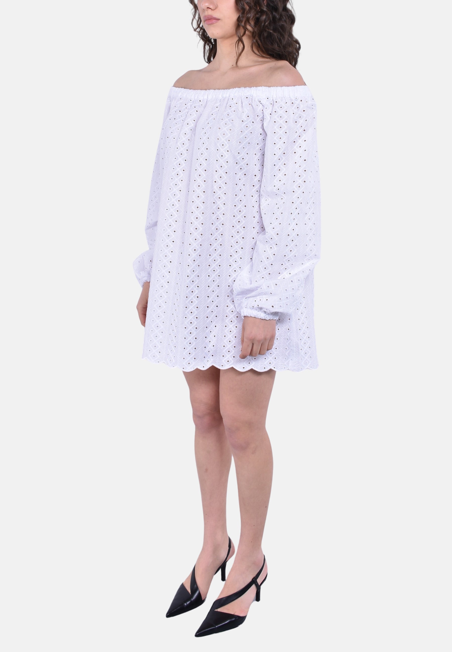 Abito oversize in pizzo media lunghezza a manica lunga.