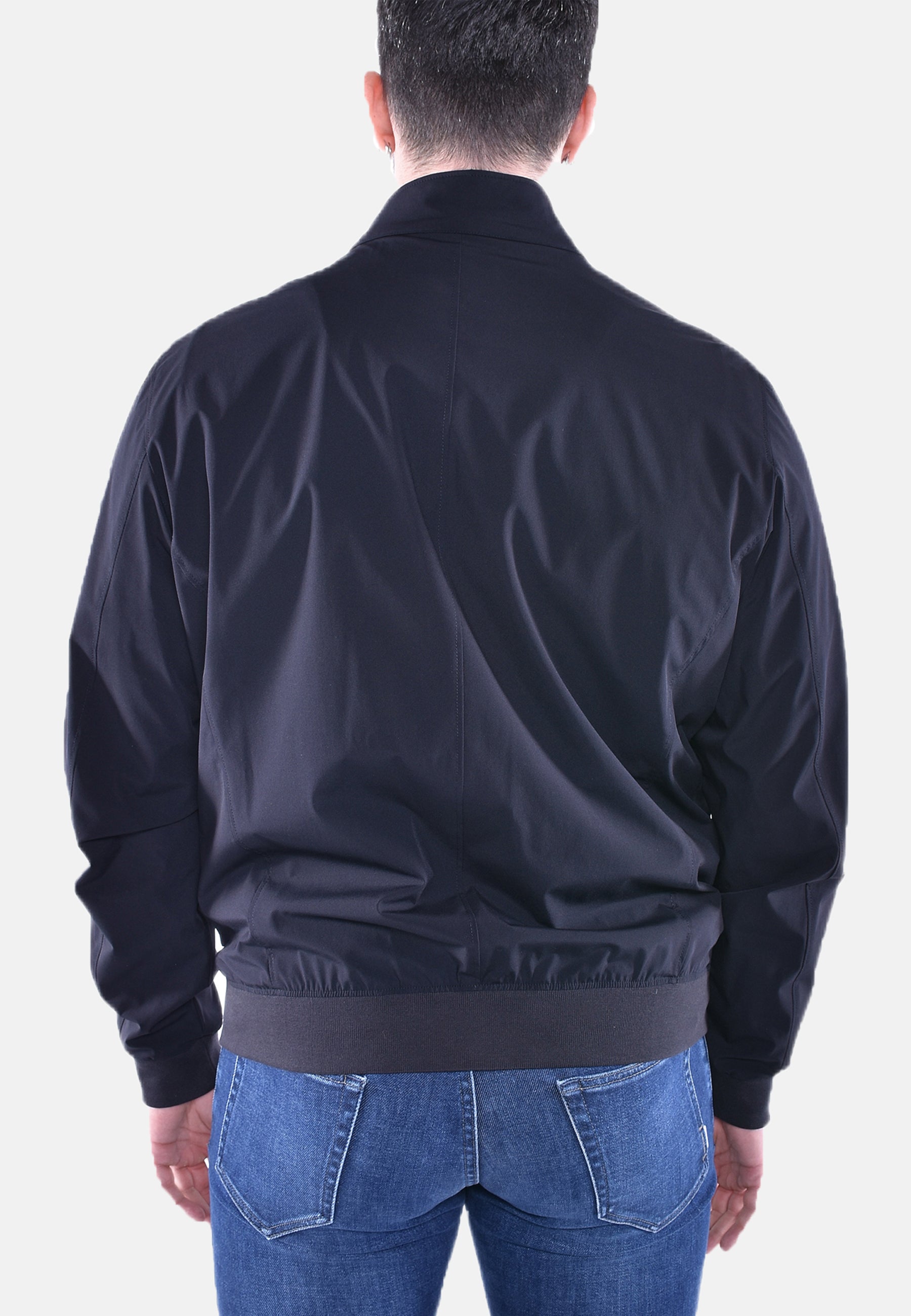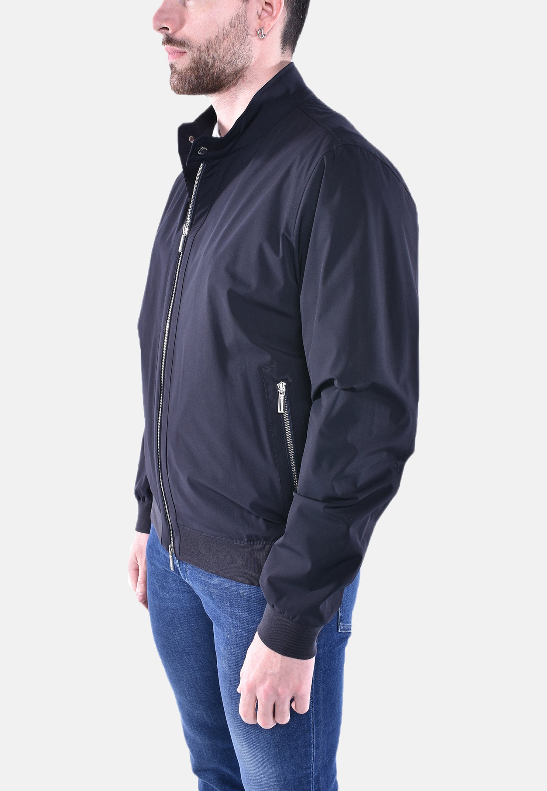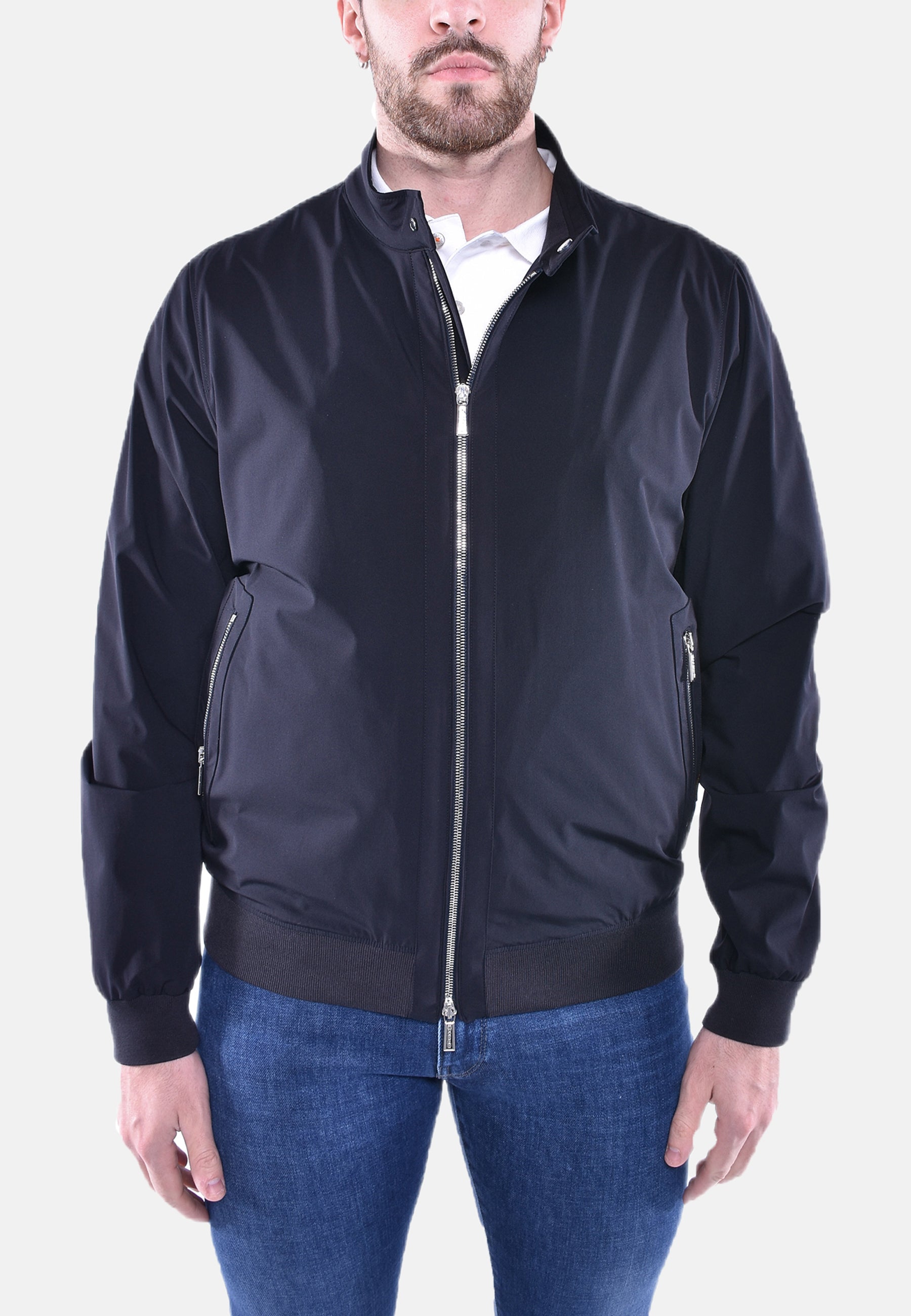Bomber appartenente alla linea Acqua (1 ombrellino) realizzato in tessuto elastico resinato idrorepellente, molto compatto e resistente alla trazione.
