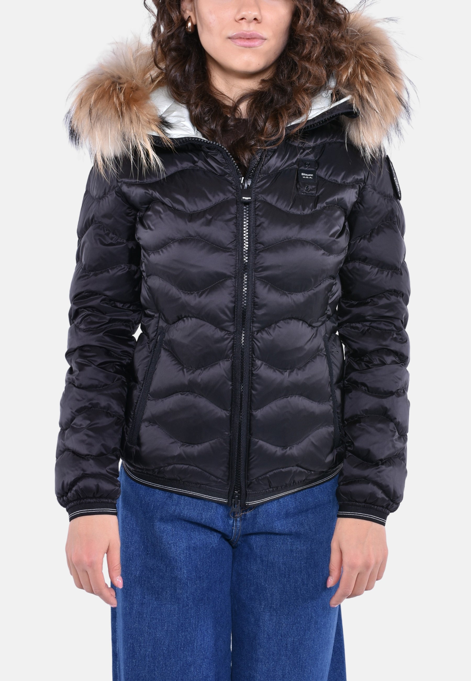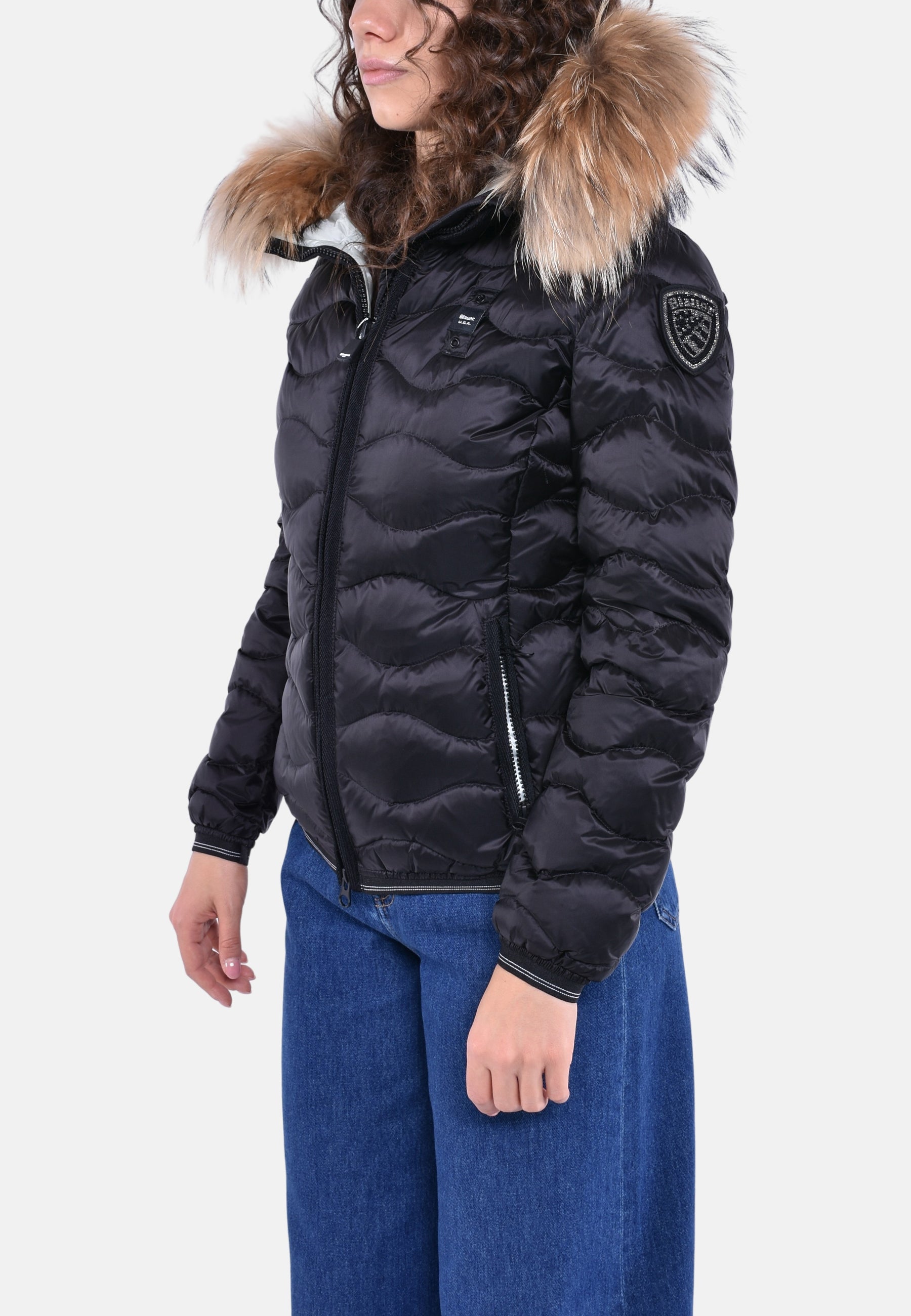 Piumino Blauer in nylon imbottito in piuma e trapuntato a onde orizzontali.
