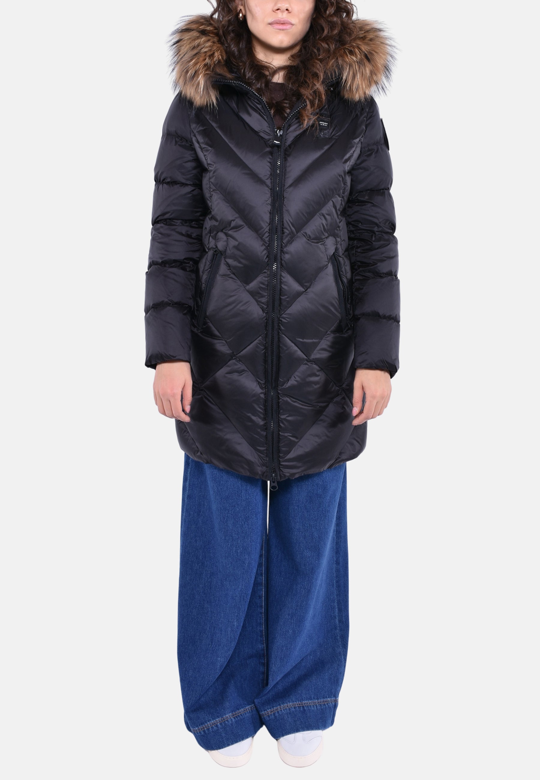 Cappuccio fisso e bordo con vera pelliccia removibile tramite zip.