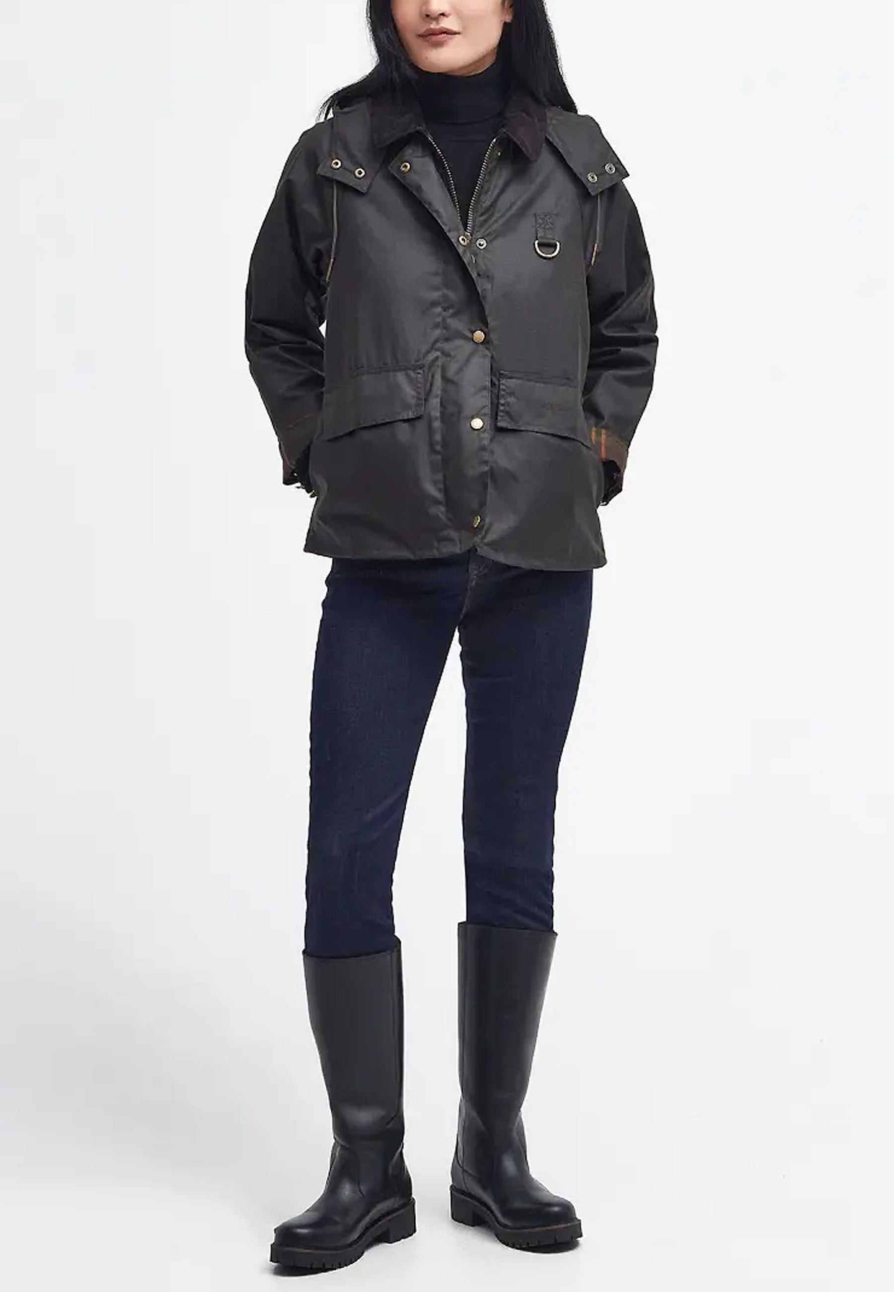 Un aggiornamento contemporaneo della classica giacca da pesca Barbour Spey, il taglio corto e la silhouette squadrata della Avon la rendono il compagno perfetto per qualsiasi ensemble casual. Realizzata in cotone cerato con un morbido colletto in velluto a coste, la giacca è dotata di cappuccio staccabile per una maggiore versatilità.