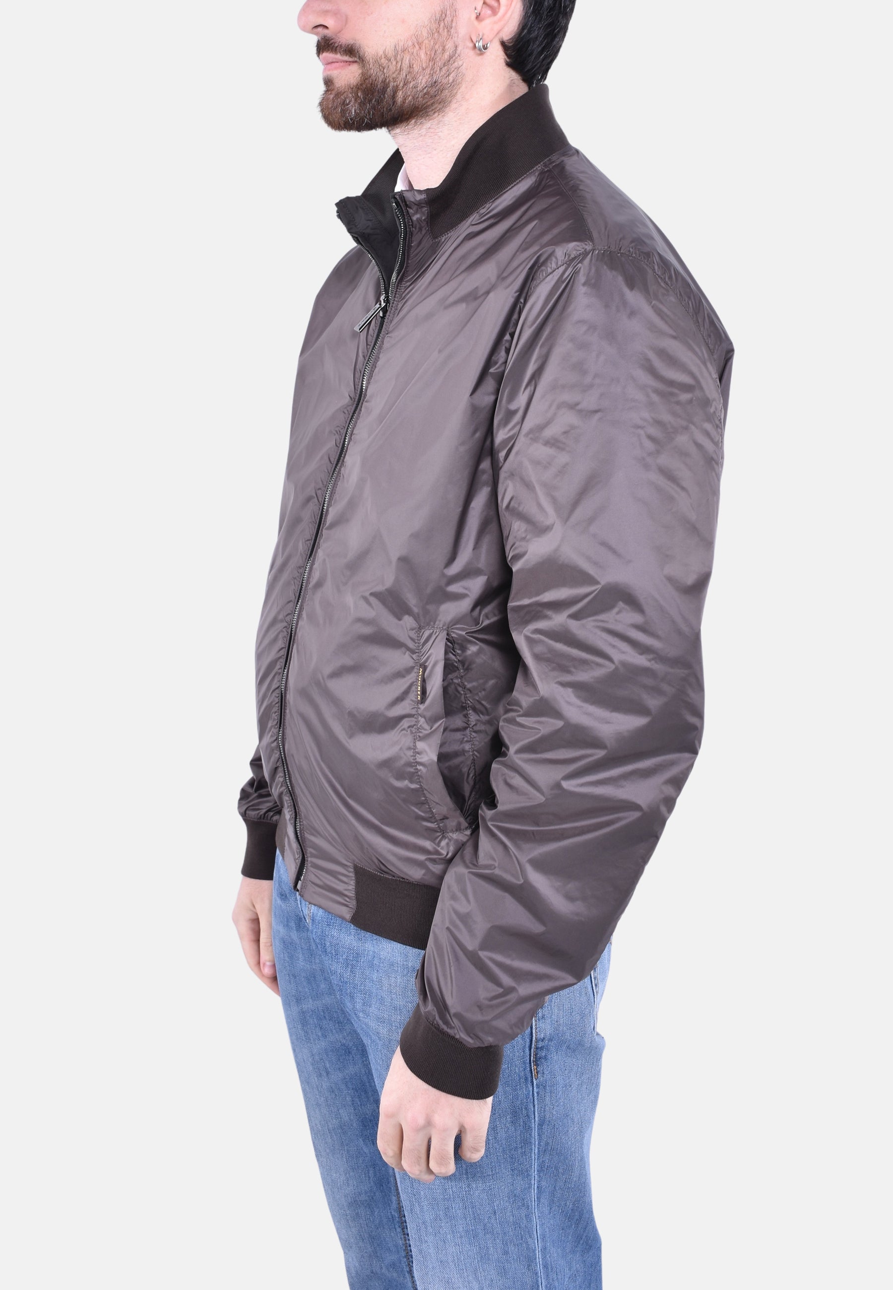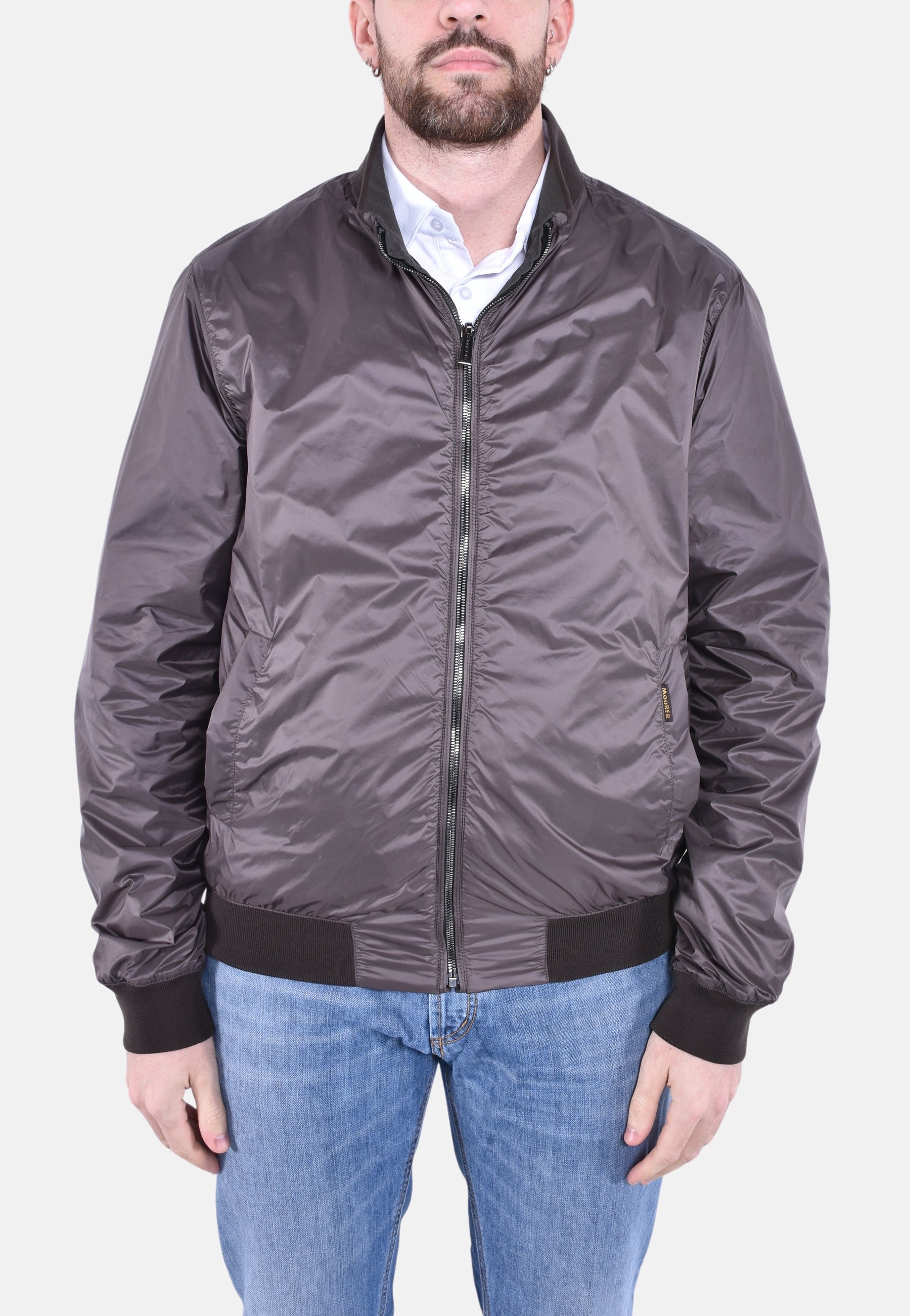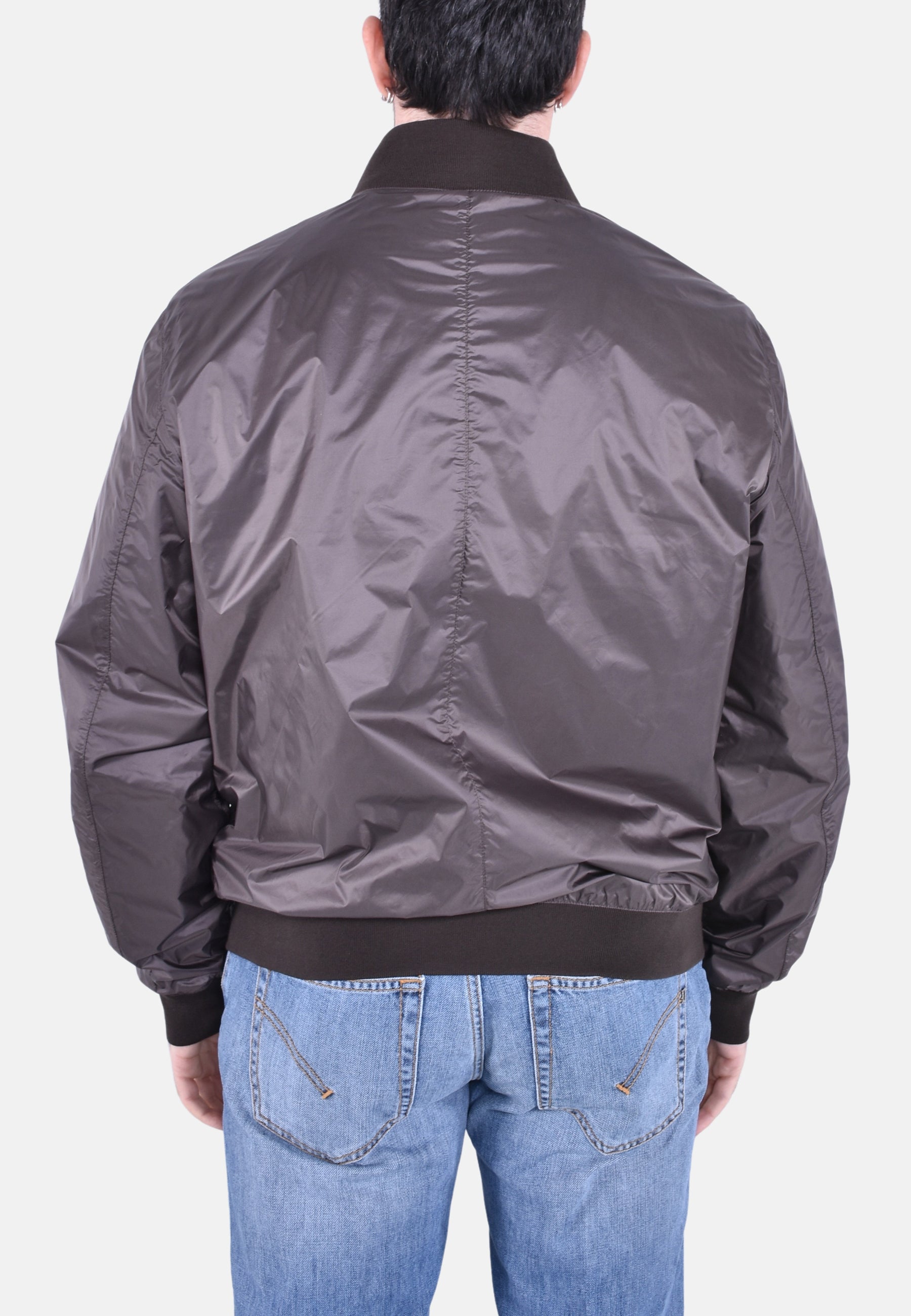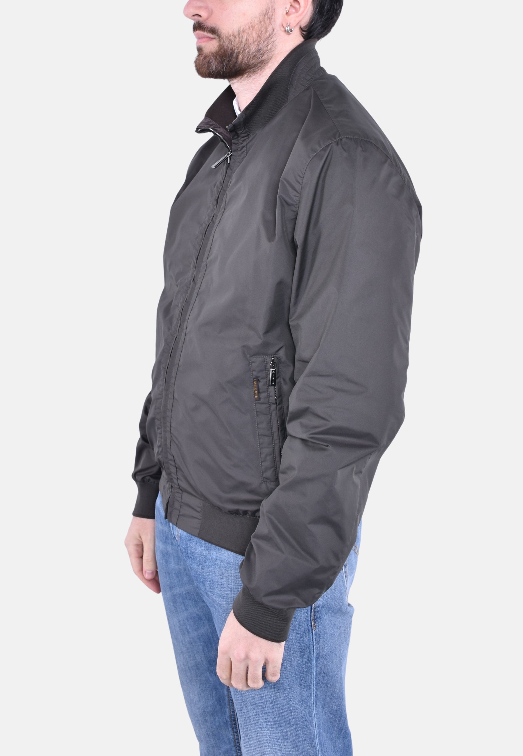 Bomber reversibile realizzato da un lato in tessuto "Sharp Memory Pes" e dall'altro in tessuto "Pirax": gabardina taffetà cangiante, sharp memory, idrorepellente con doppia tintura.