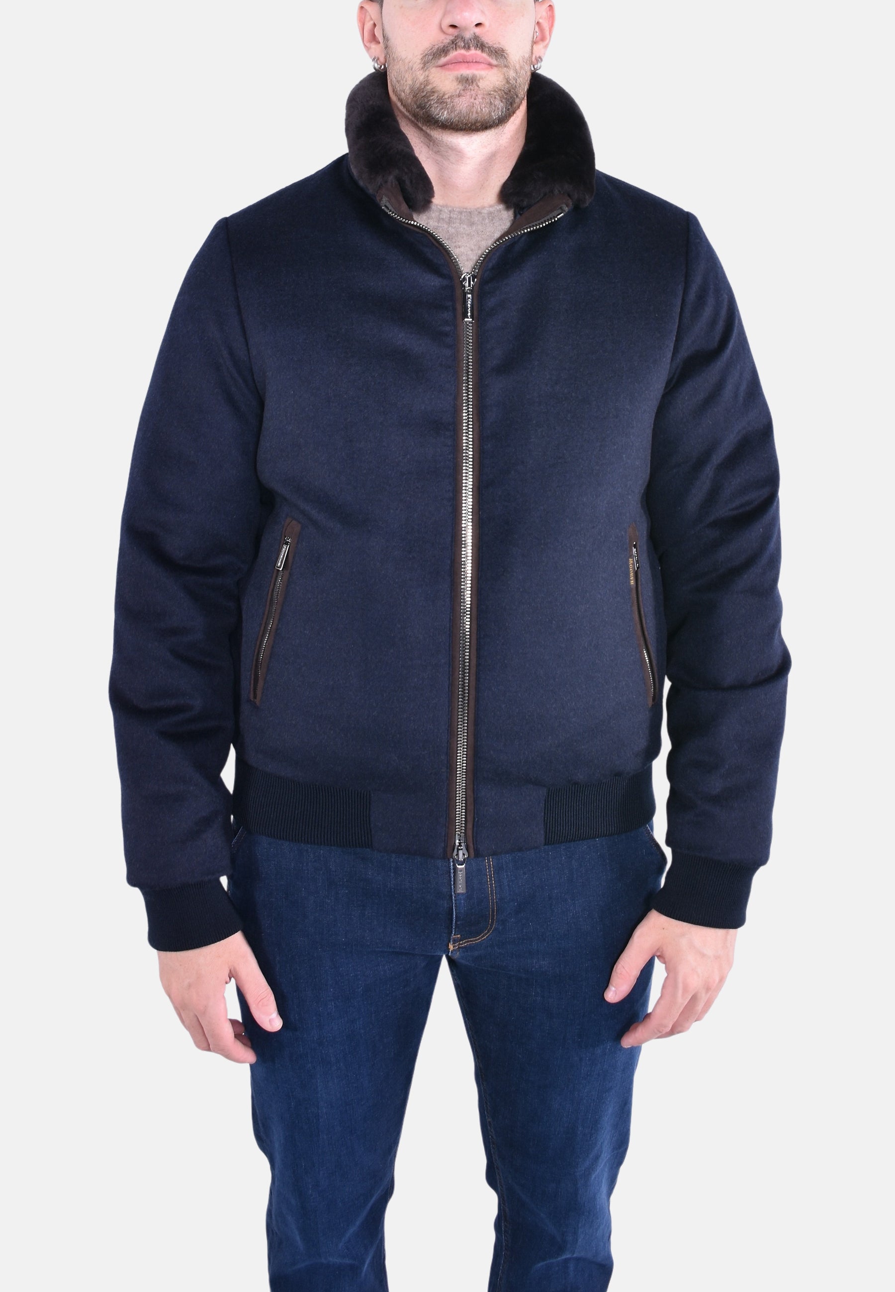 Bomber ibrido imbottito in piuma d’oca trapuntato a boudin, appartenente alla linea Acqua (1 ombrellino). Realizzato in un mix di materiali: tessuto tecnico con resinatura idrorepellente abbinato a parti in flanella di lana mista a cashmere con membrana traspirante e waterproof.