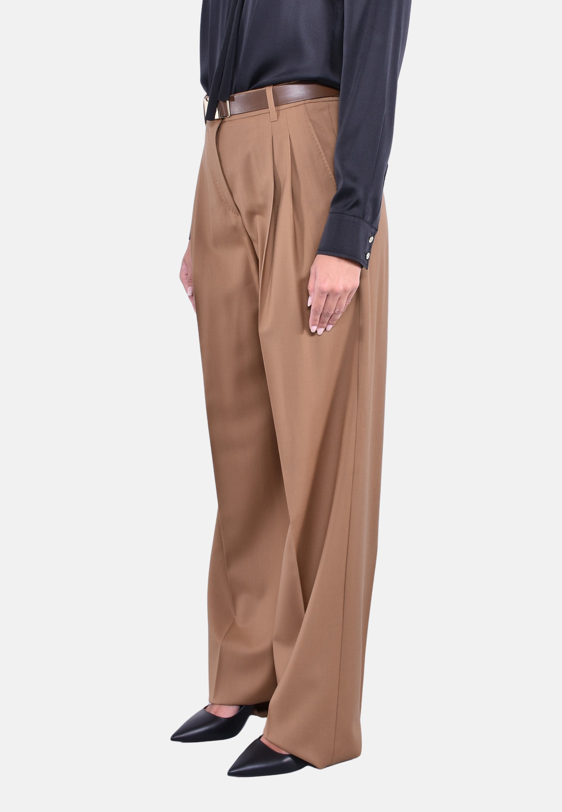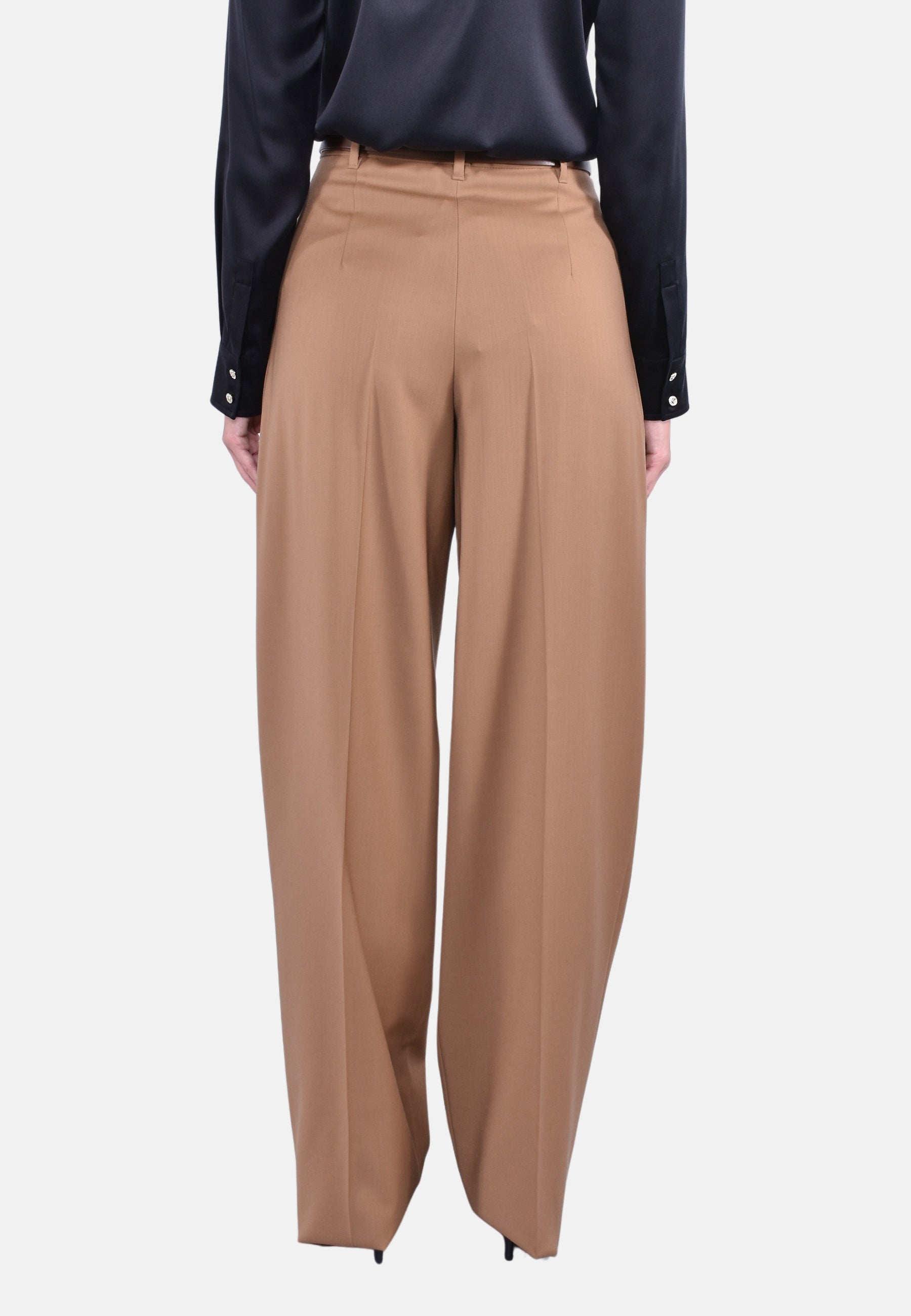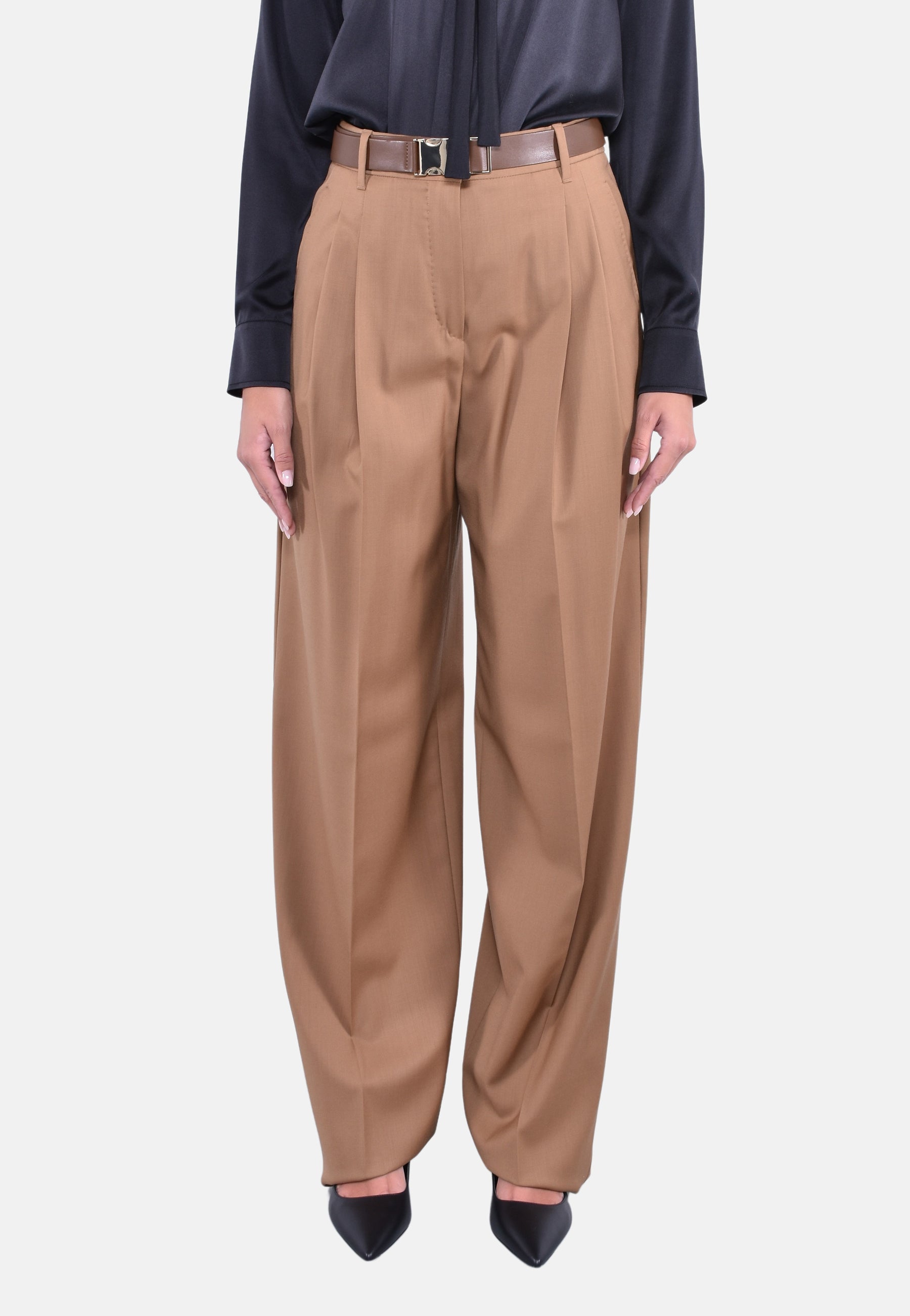 Pantalone con cintura lunga in tessuto spalmato e fibbia in metallo.