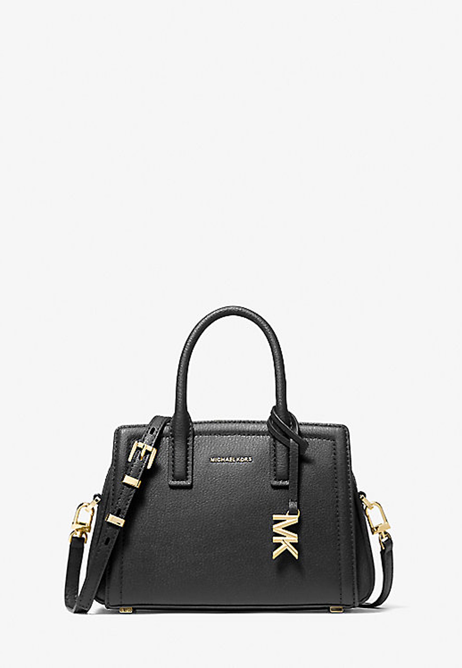 Abbiamo rivisitato l'amatissima borsa a mano Laila in pelle in una silhouette a tracolla piccola ma funzionale. Questo splendido accessorio con tracolla regolabile è dotato di manico superiore e presenta una chiusura con zip bidirezionale che si apre su un interno a scomparti adatto a contenere solo l'essenziale. Completa di dettagli in metallo dorato lucido, è dotata di piedini in metallo per evitare graffi.