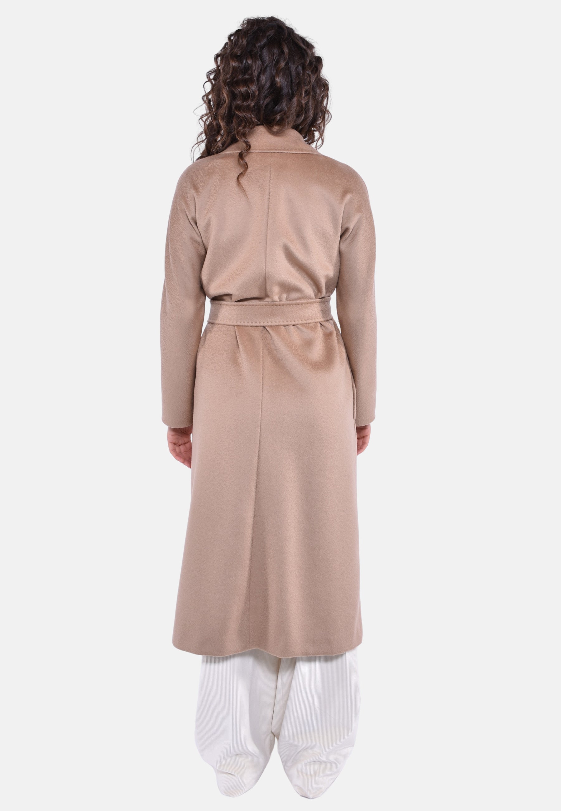 Cappotto lungo a vestaglia realizzato in pregiato tessuto di pura lana, caratterizzato da una linea dritta con cintura abbinata in vita per evidenziare il punto vita. Silhouette avvolgente con collo a rever, maniche lunghe a kimono e tasche laterali. Foderato.