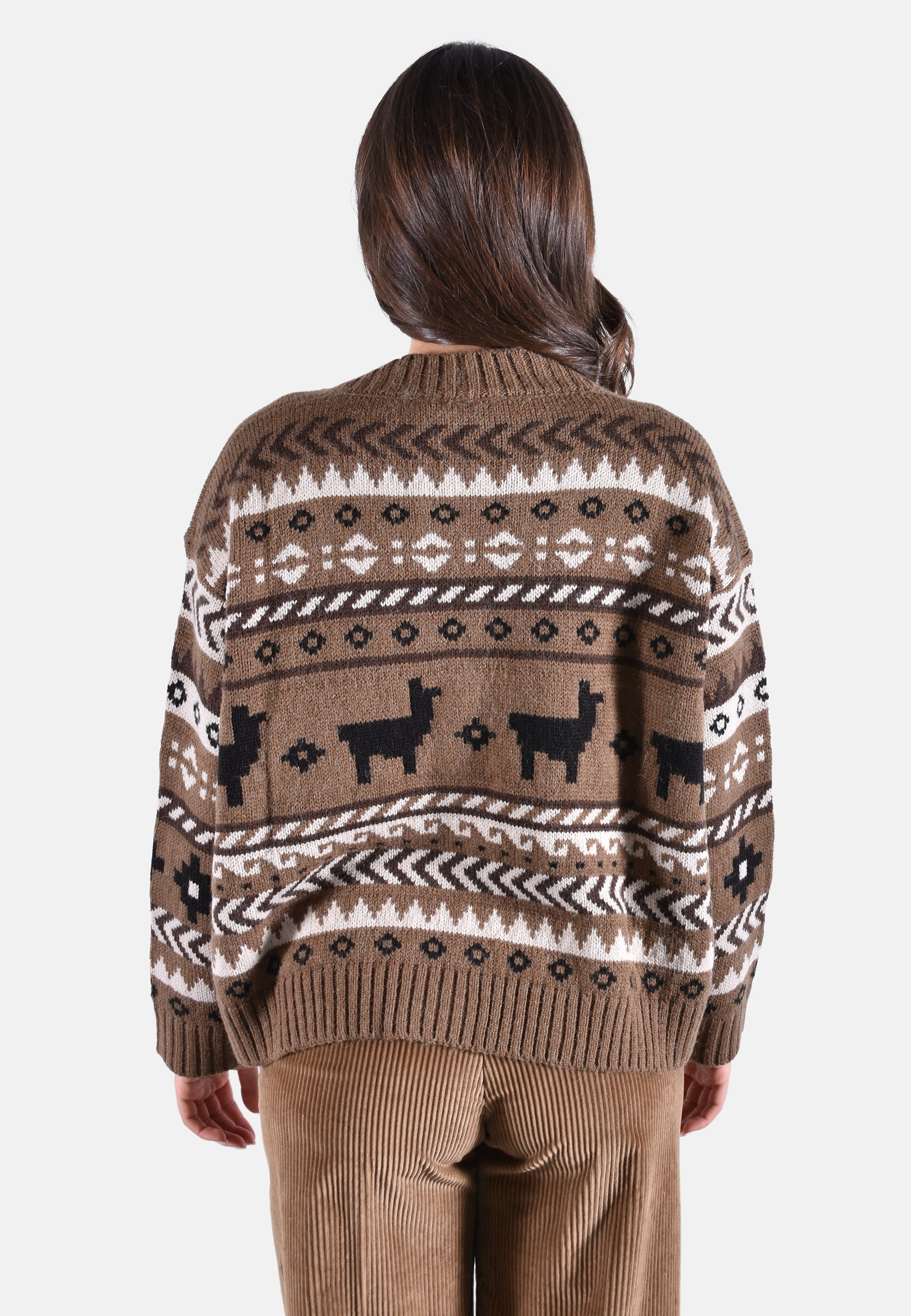 Cardigan overfit, impreziosito da una lavorazione jacquard all over.