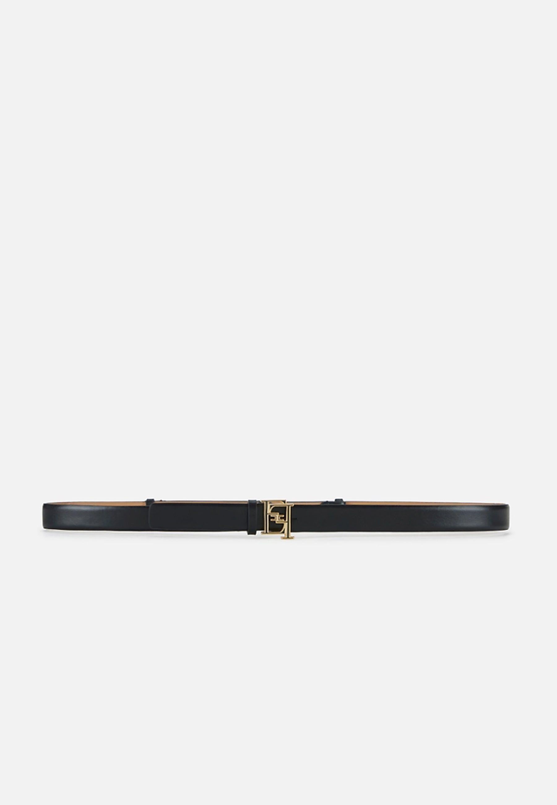Cintura a vita regolare realizzata in pelle. Sottile, dalla texture liscia e leggermente bombata, è impreziosita dalla fibbia con logo in metallo dorato e smaltato internamente.