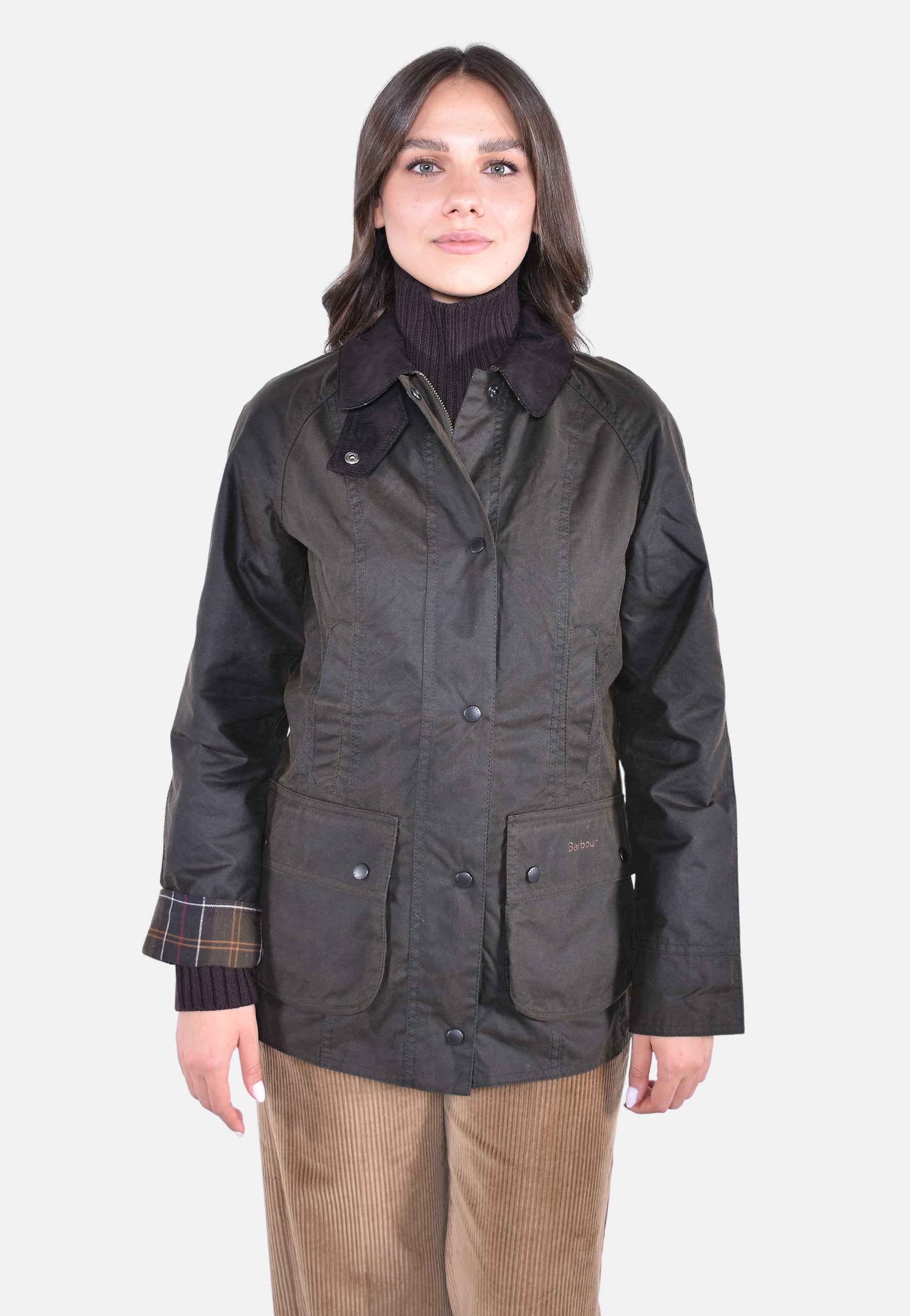 Vera e propria icona della campagna britannica, la giacca cerata Barbour Classic Beadnell Wax Jacket è basata sulla leggendaria Bedale, aggiornata con un nuovo taglio e cuciture per creare una silhouette più femminile con l'intramontabile stile Barbour. Realizzata all’esterno in cotone cerato Sylkoil e all’interno con una fodera in cotone in caratteristico tartan per un look Barbour per eccellenza, è il capo ideale da indossare tutto l'anno, sovrapposto o da solo a seconda della stagione. Presenta un tradizionale colletto in velluto a coste, un'allacciatura al collo e una robusta cerniera con l'aggiunta di una patta antivento con chiusura a scatto per la migliore protezione contro il freddo e le intemperie. Tra i dettagli classici vi sono le tasche scaldamani foderate in fustagno e le caratteristiche tasche inferiori a soffietto arrotondate con logo ricamato. Data la sua vestibilità regolare e silhouette femminile, si consiglia di controllare la guida alle taglie prima di scegliere