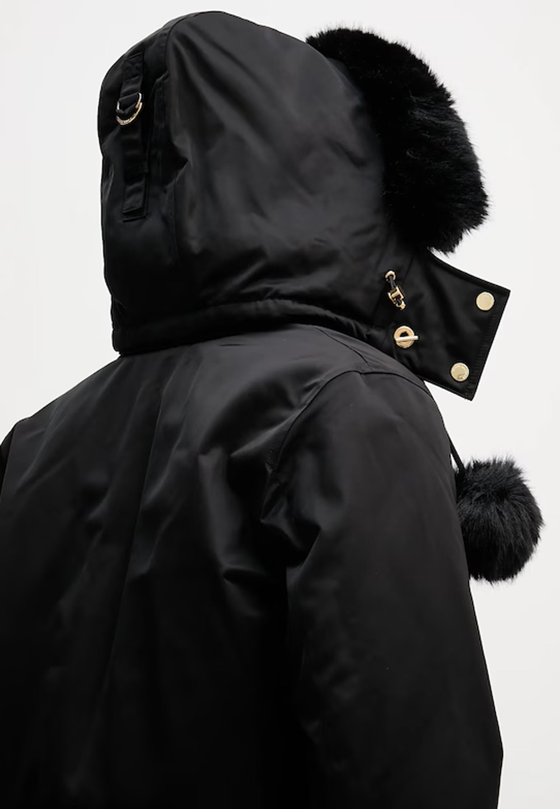 - Cappuccio rimovibile con bordo in pelliccia sintetica e pompon in pelliccia sintetica rimovibili