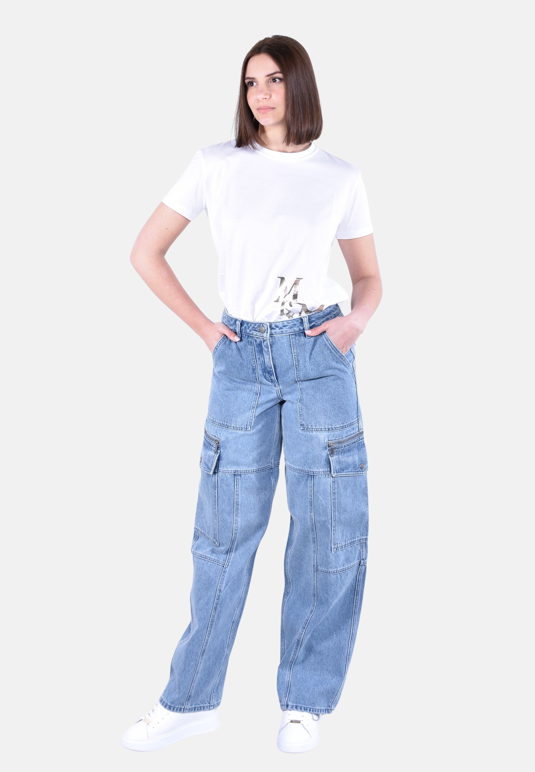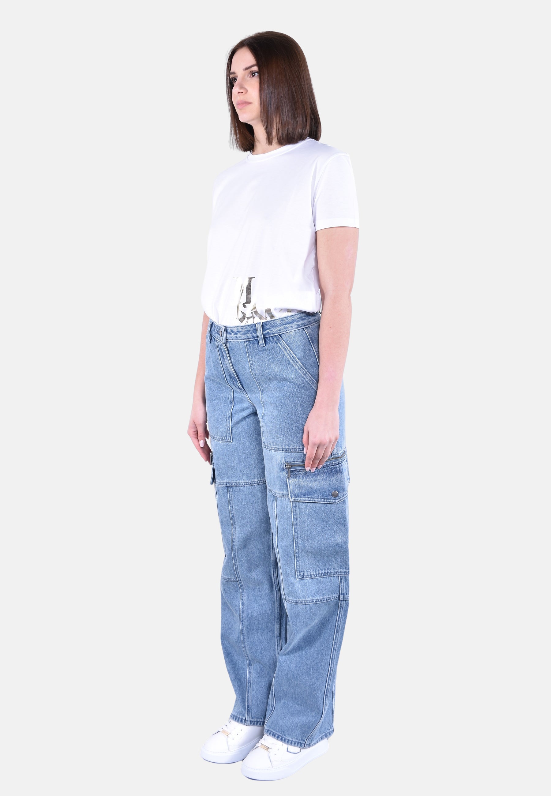 Indossa questi jeans cargo dal look casual e disinvolto per uno stile rilassato e alla moda. Realizzati in denim pesante lavato, hanno una vestibilità comoda e presentano numerose tasche con chiusura a scatto. Indossa una cintura con occhielli per un look grintoso anni ‘90.