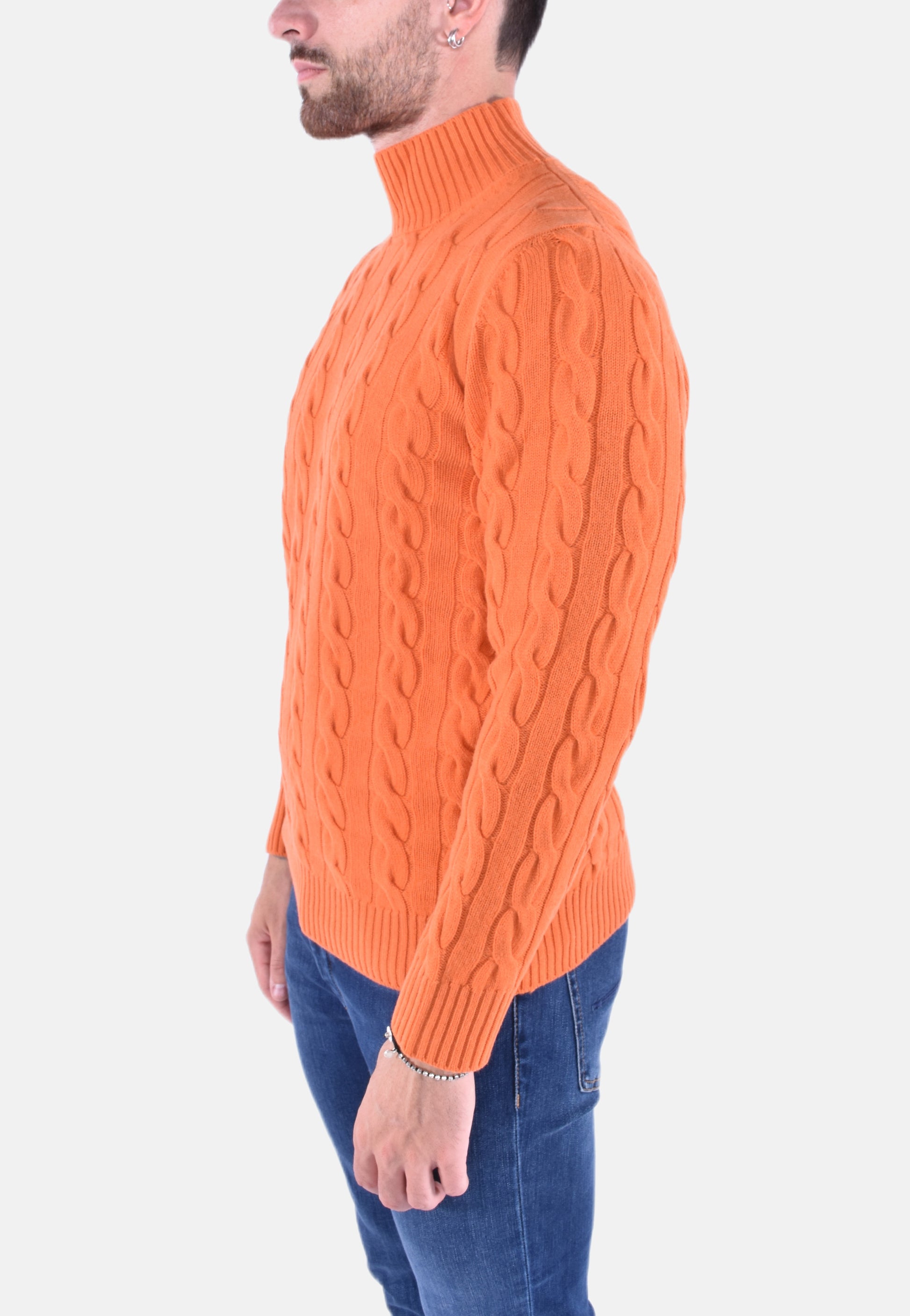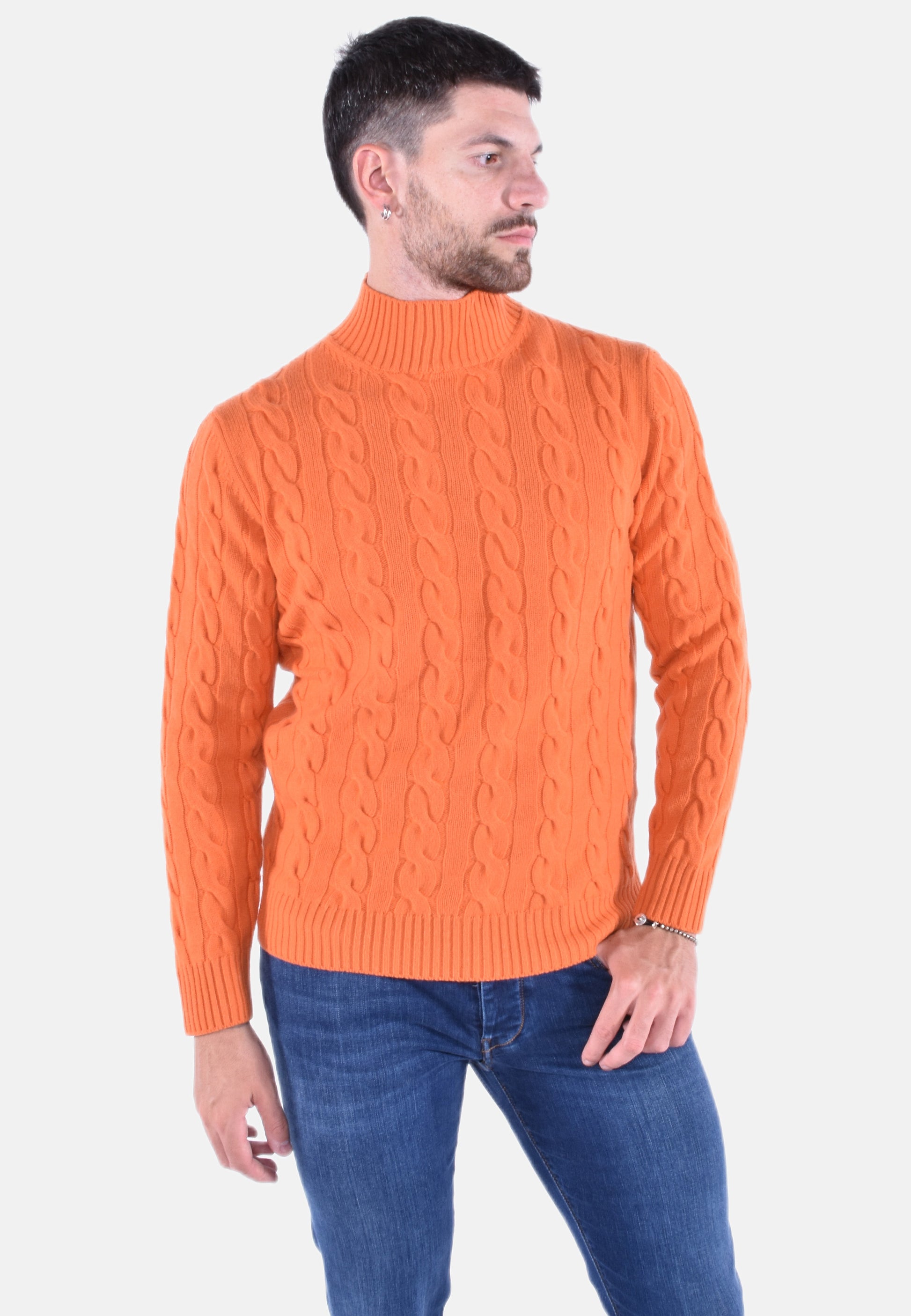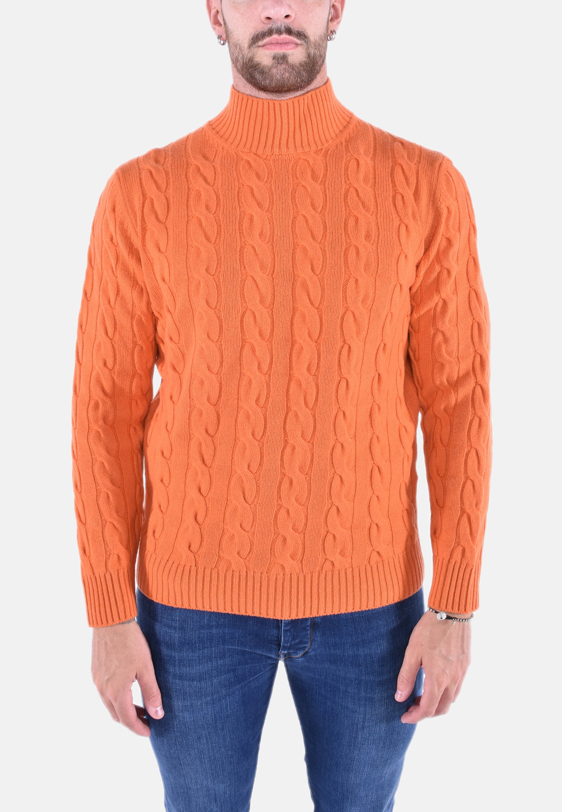 Dolcevita lupetto in morbida lana e cashmere in fantasia a treccie.