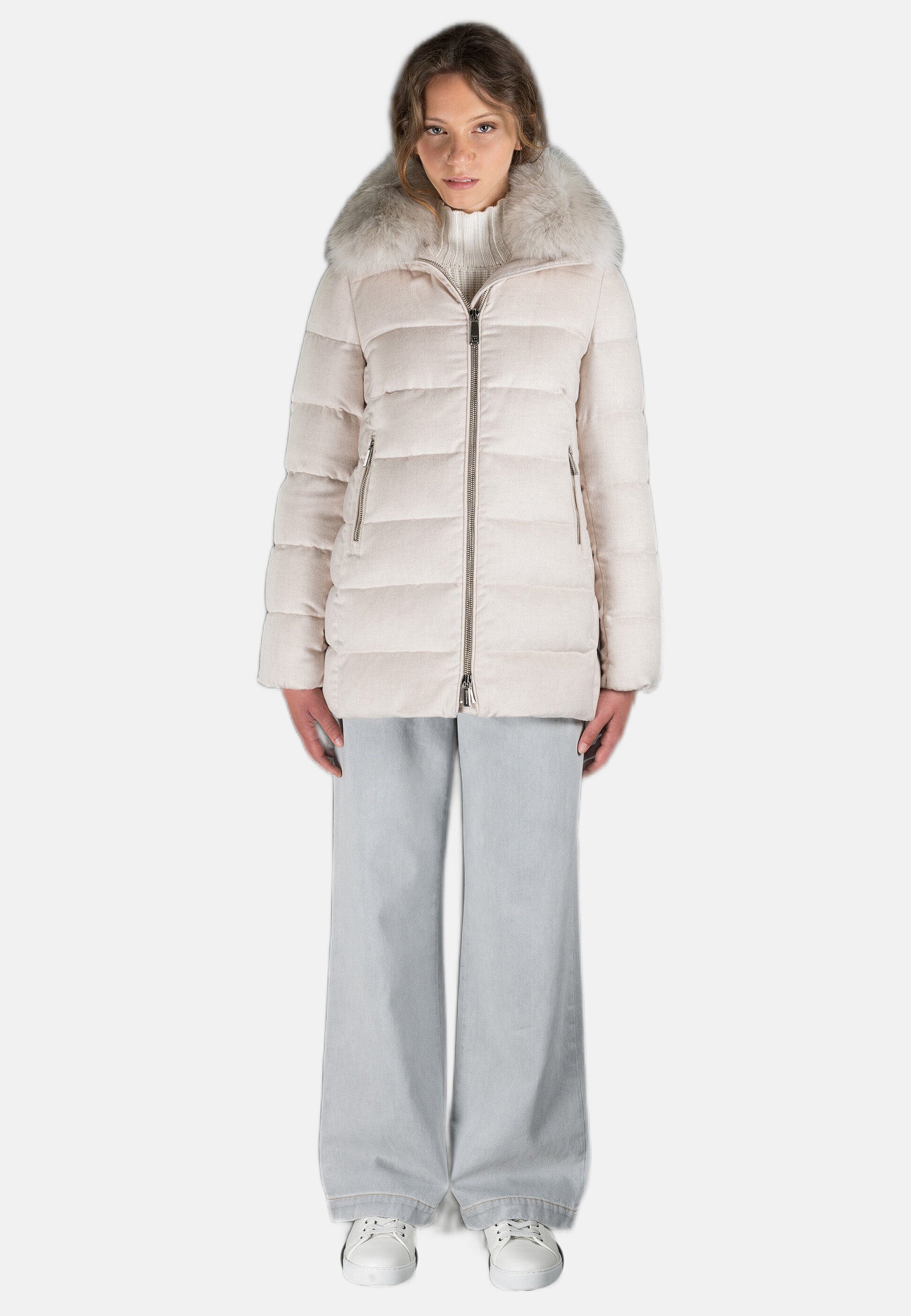 Collo impreziosito da bordo staccabile in vera volpe