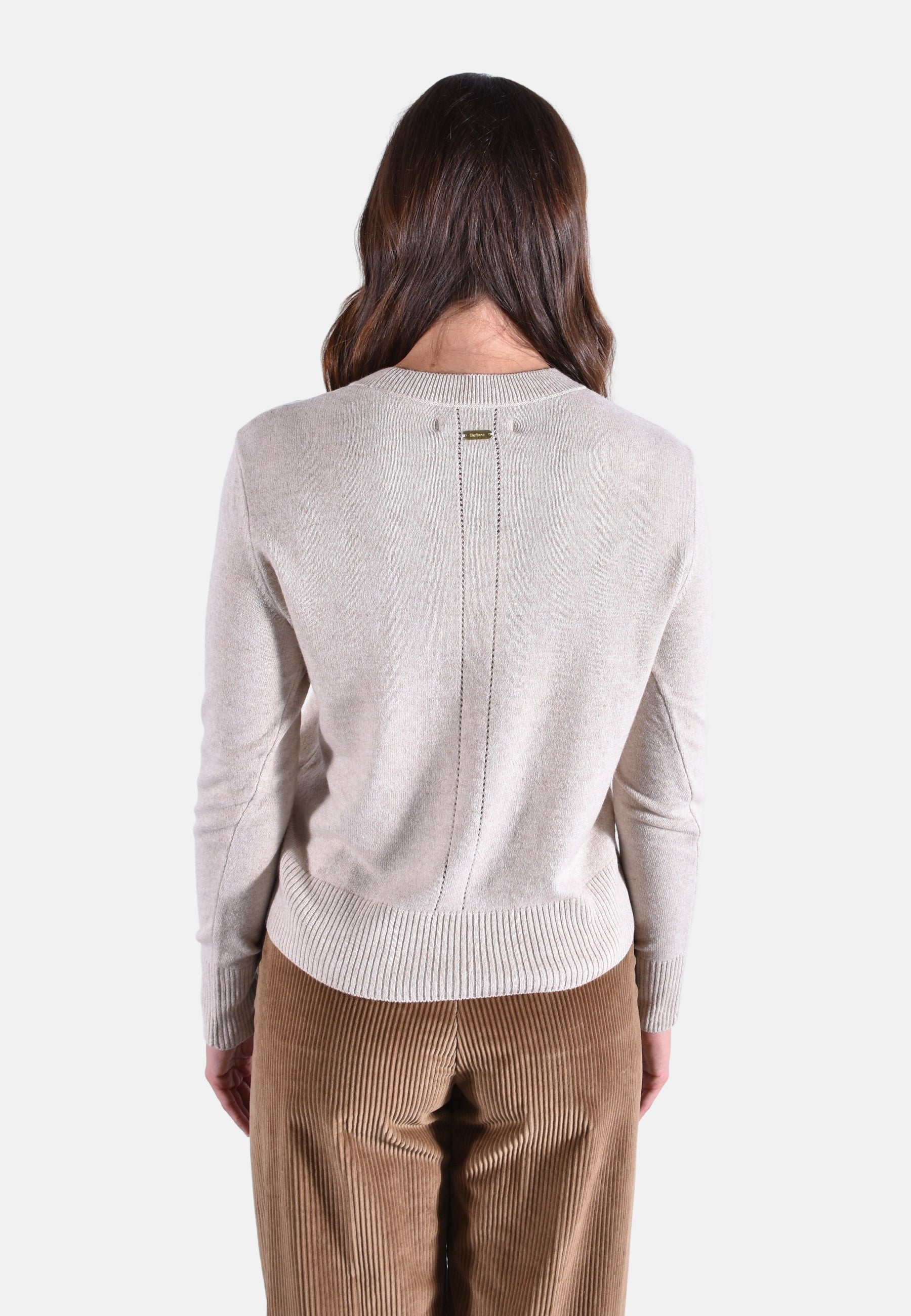 Il maglione girocollo Eleanor firmato Barbour è il connubio perfetto di comfort ed eleganza. Realizzato in una morbida maglia in misto lana, il modello presenta una vestibilità comoda, maniche a giro e finiture a costine. La finta chiusura con bottoni logati impreziosisce la sezione della spalla, mentre il motivo a righe a punto maglia lungo la schiena conferisce al capo un tocco raffinato ed elegante.