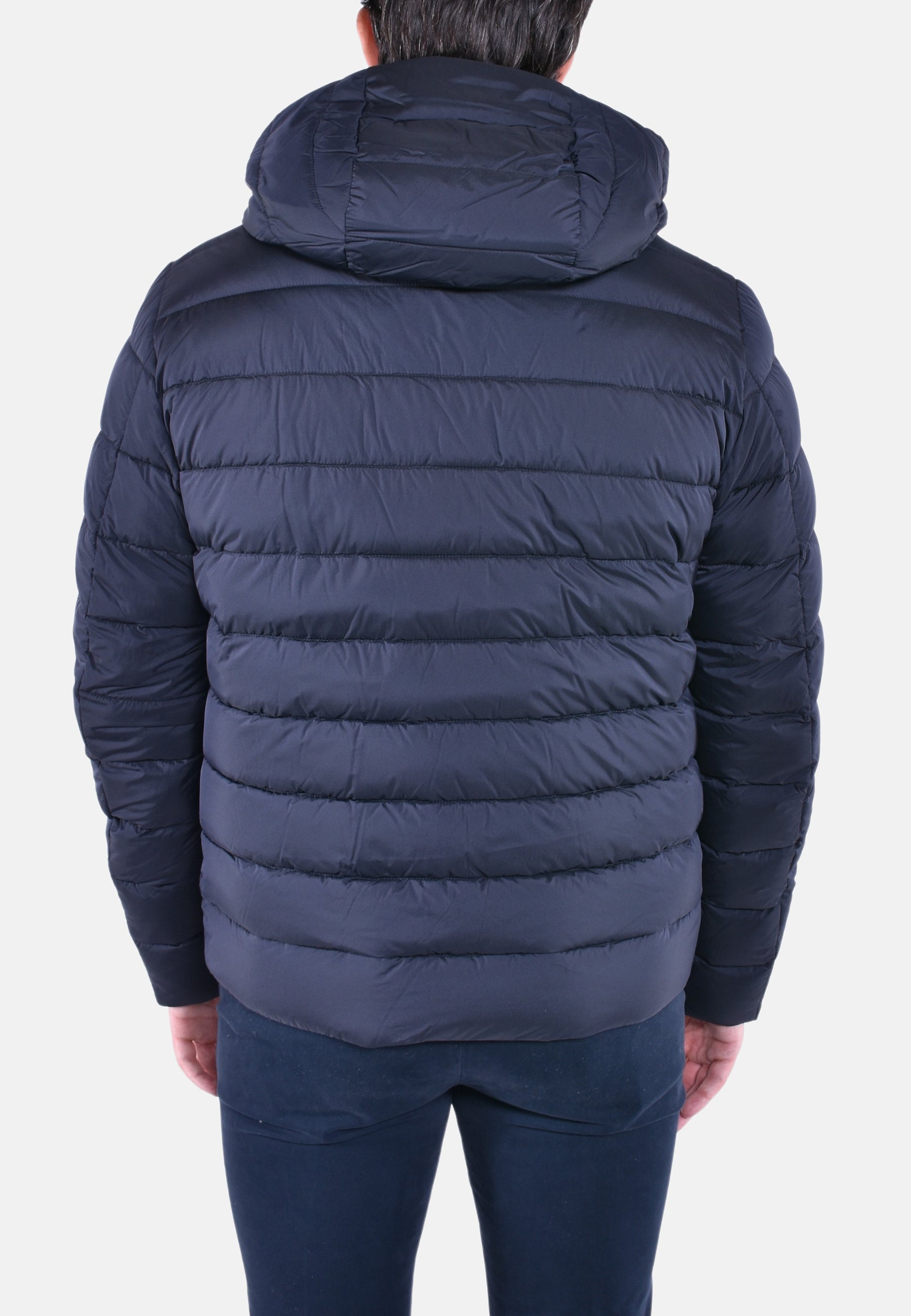 Piumino leggero appartenente alla linea Acqua (1 ombrellino), realizzato in elegante e raffinato tessuto tecnico idrorepellente con colorazione effetto cangiante, imbottito in piuma d'oca e trapuntato a boudin.