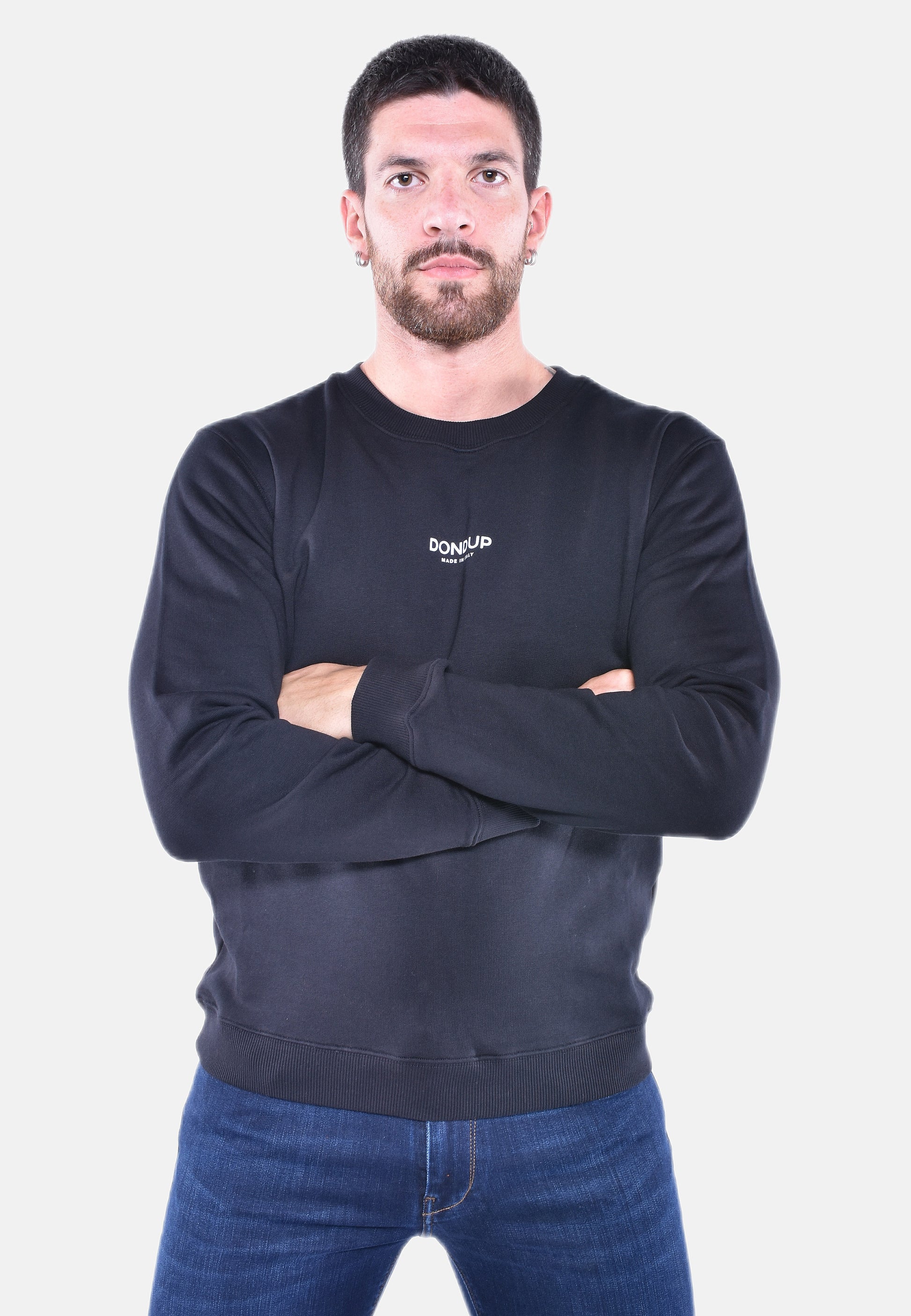 Felpa girocollo con logo frontale stampato, interno felpato.