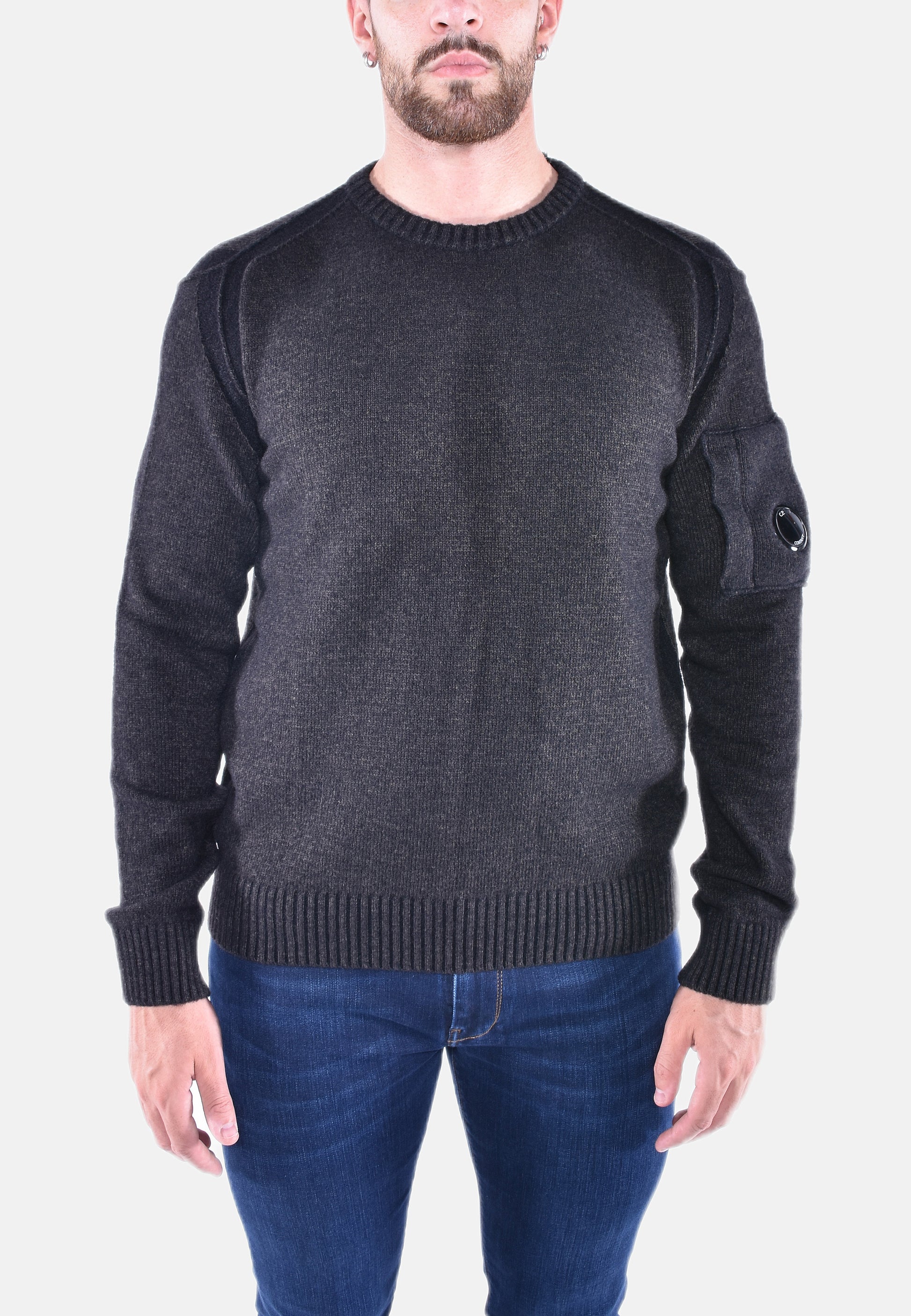 Maglione girocollo con lavorazione vanisé in maglia rasata, con colletto, polsini e fondo a costine e C.P. Company Lens. È in tessuto felpato di prima qualità, per una vestibilità isolante e una texture robusta.