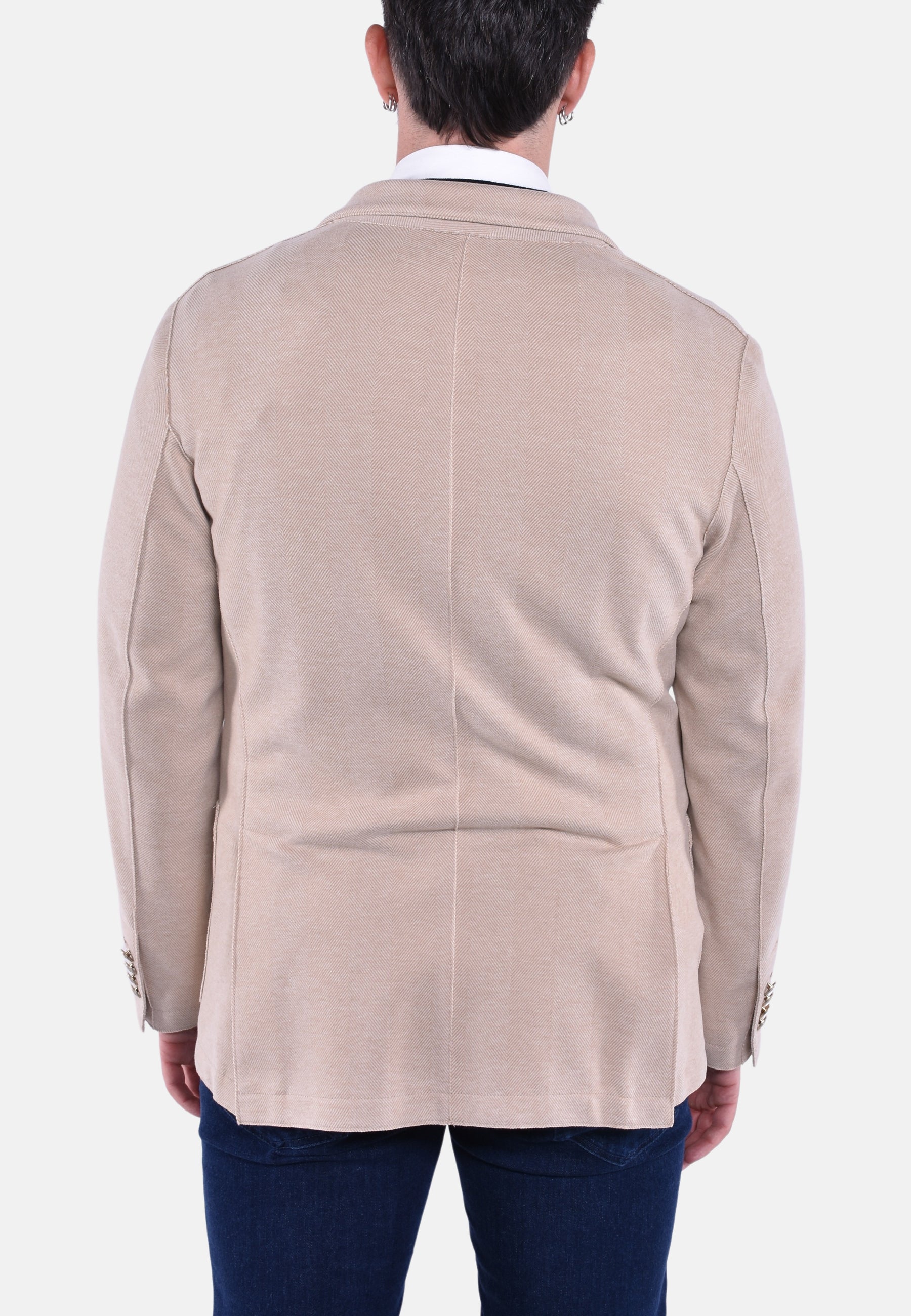 Il modello è alto 180cm e indossa la taglia 50.