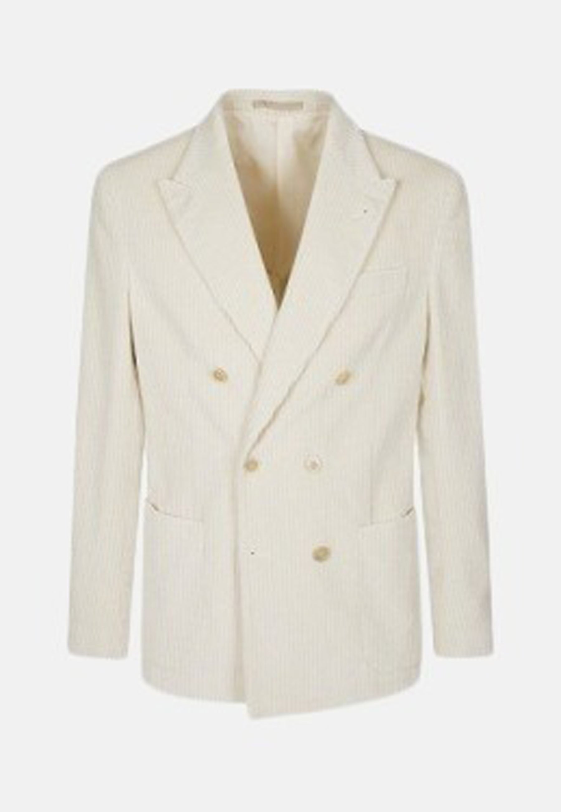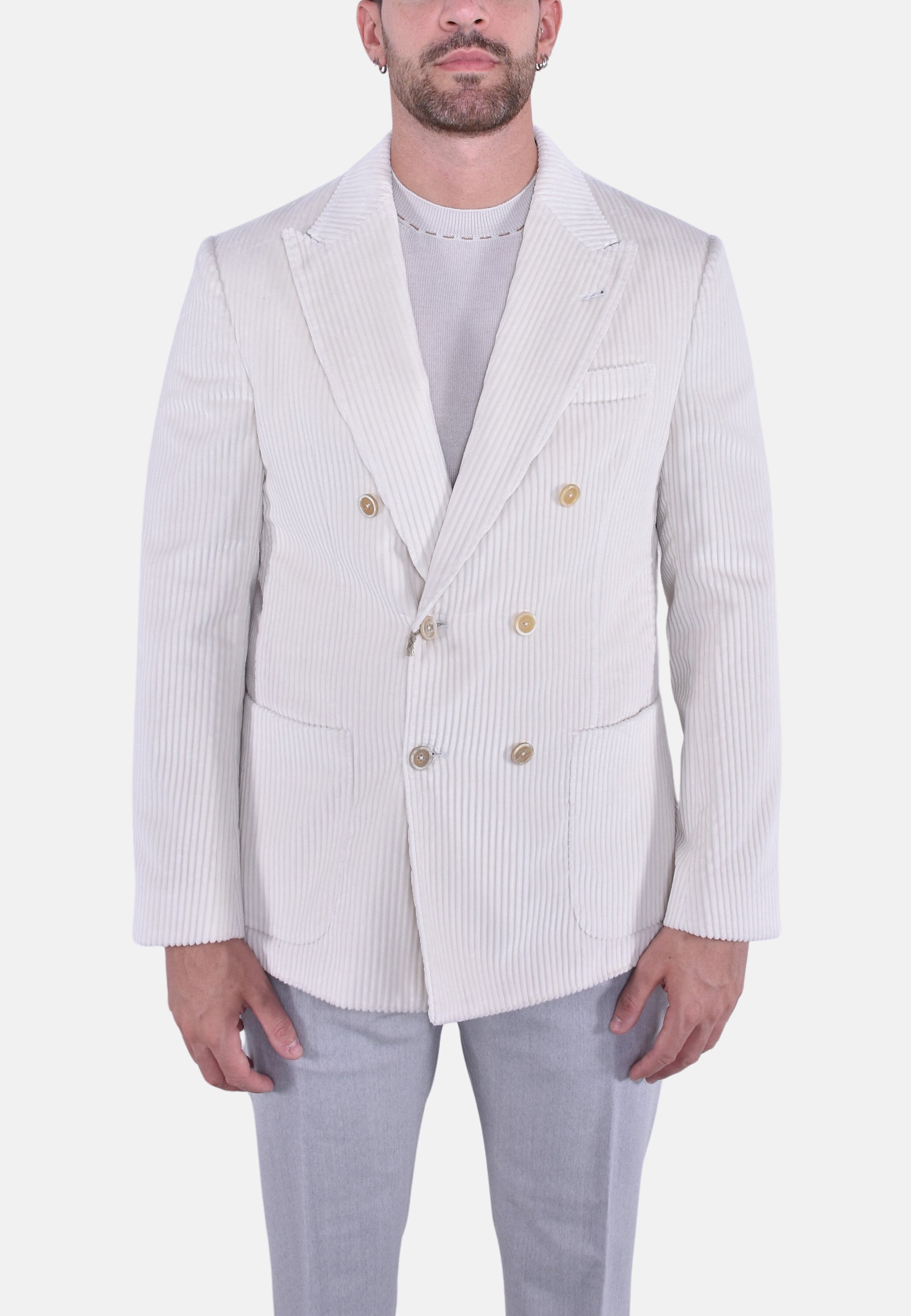 La giacca doppiopetto a punta lancia è realizzata in velluto di cotone a coste. Il dettaglio dei bottoni in corno completa ed impreziosisce il capo, che offre una vestibilità regolare.