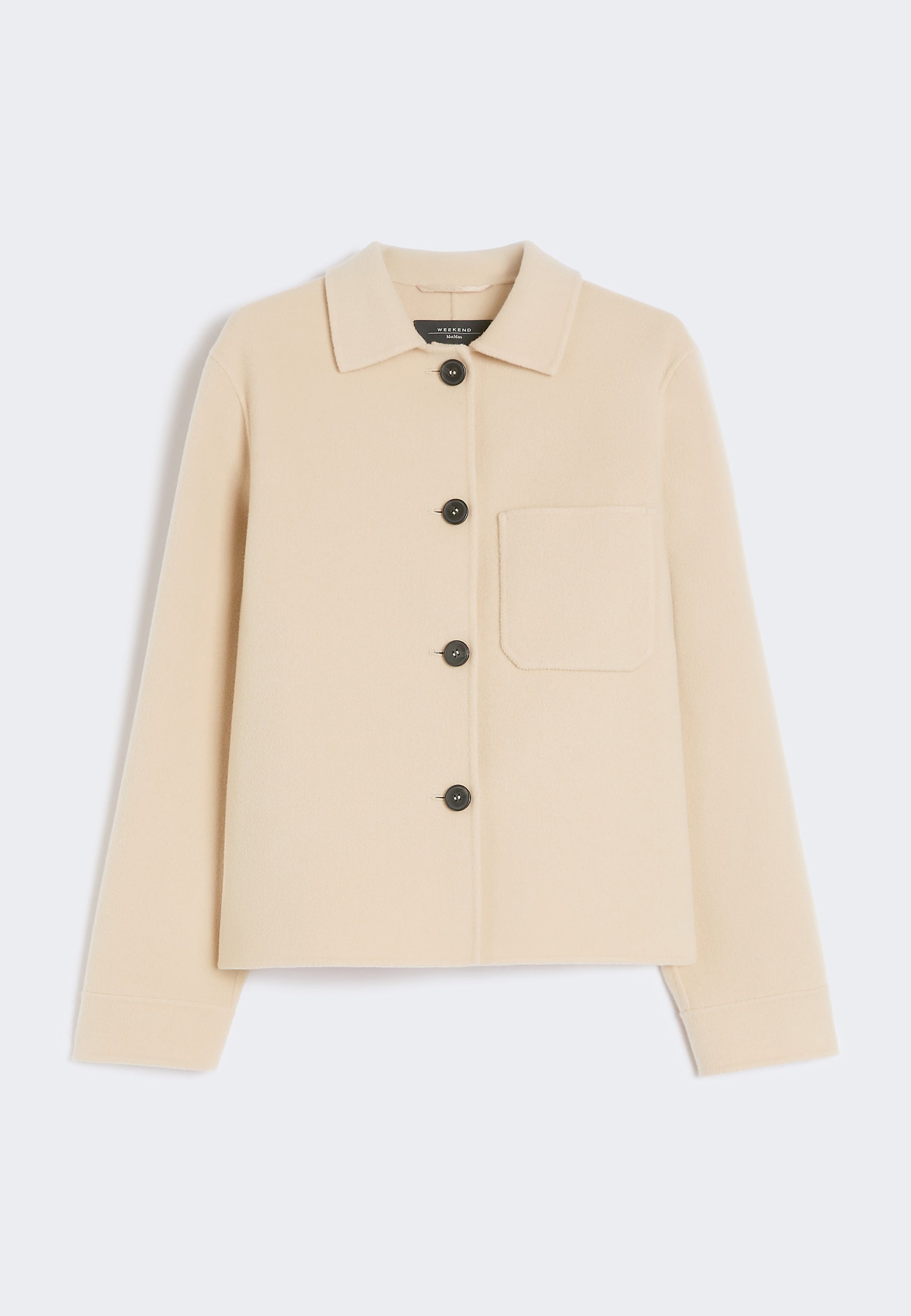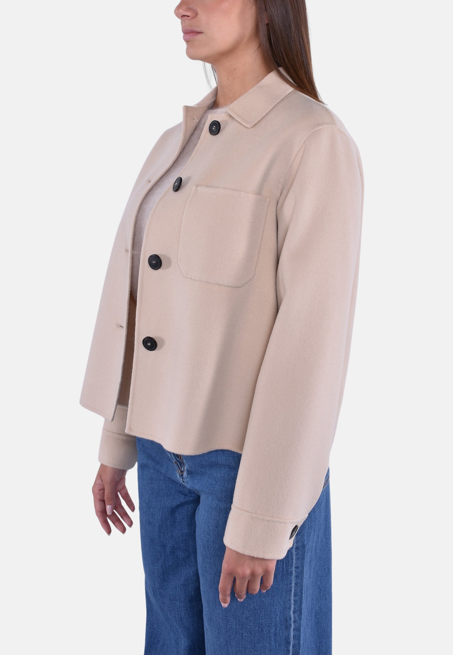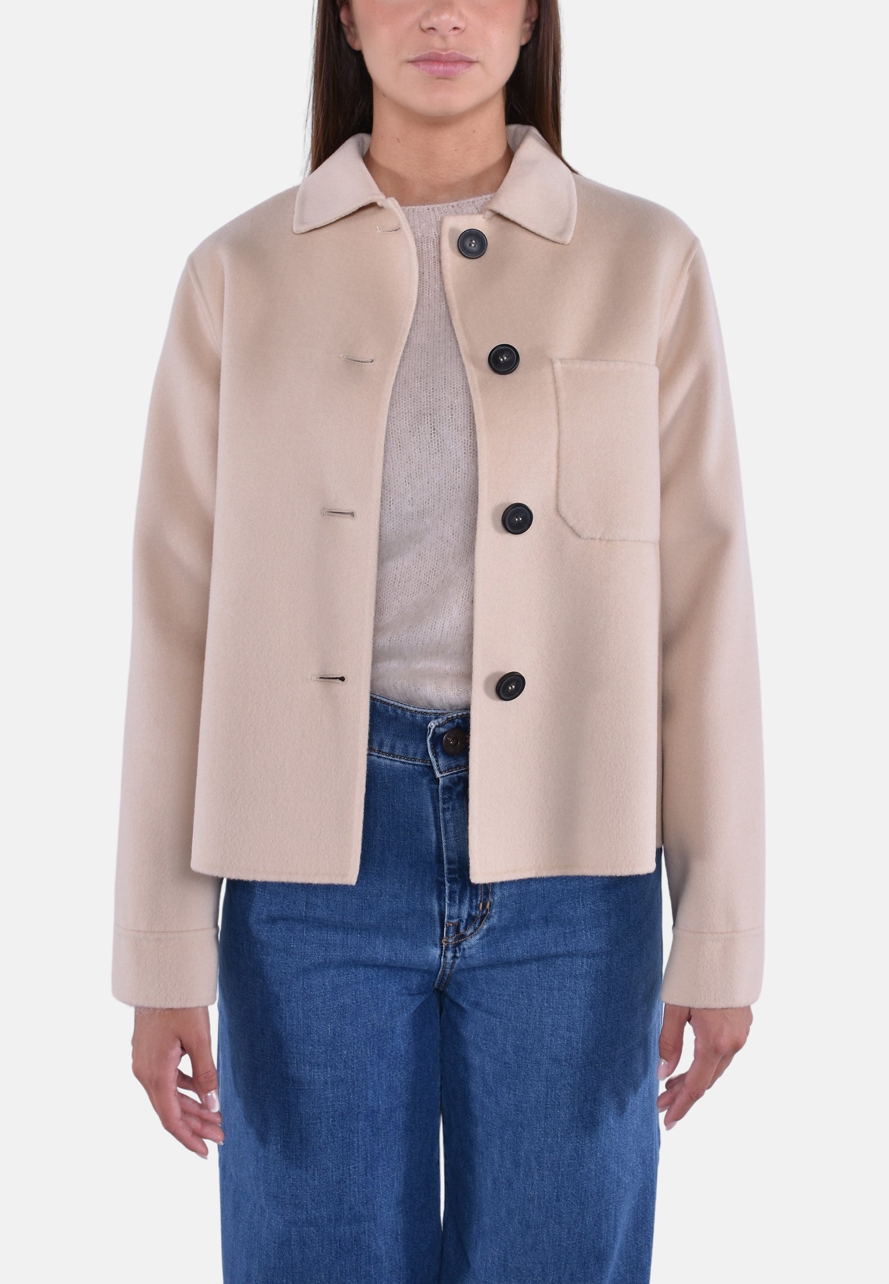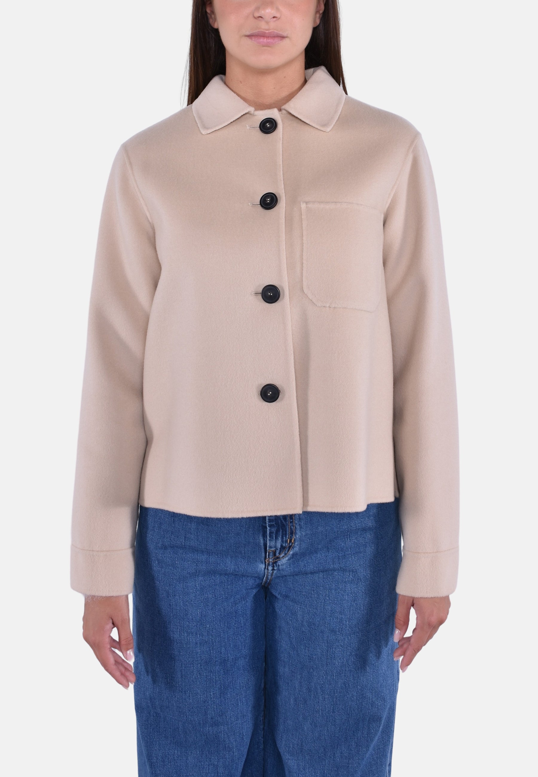 Giacca monopetto con silhouette a camicia leggermente svasata.