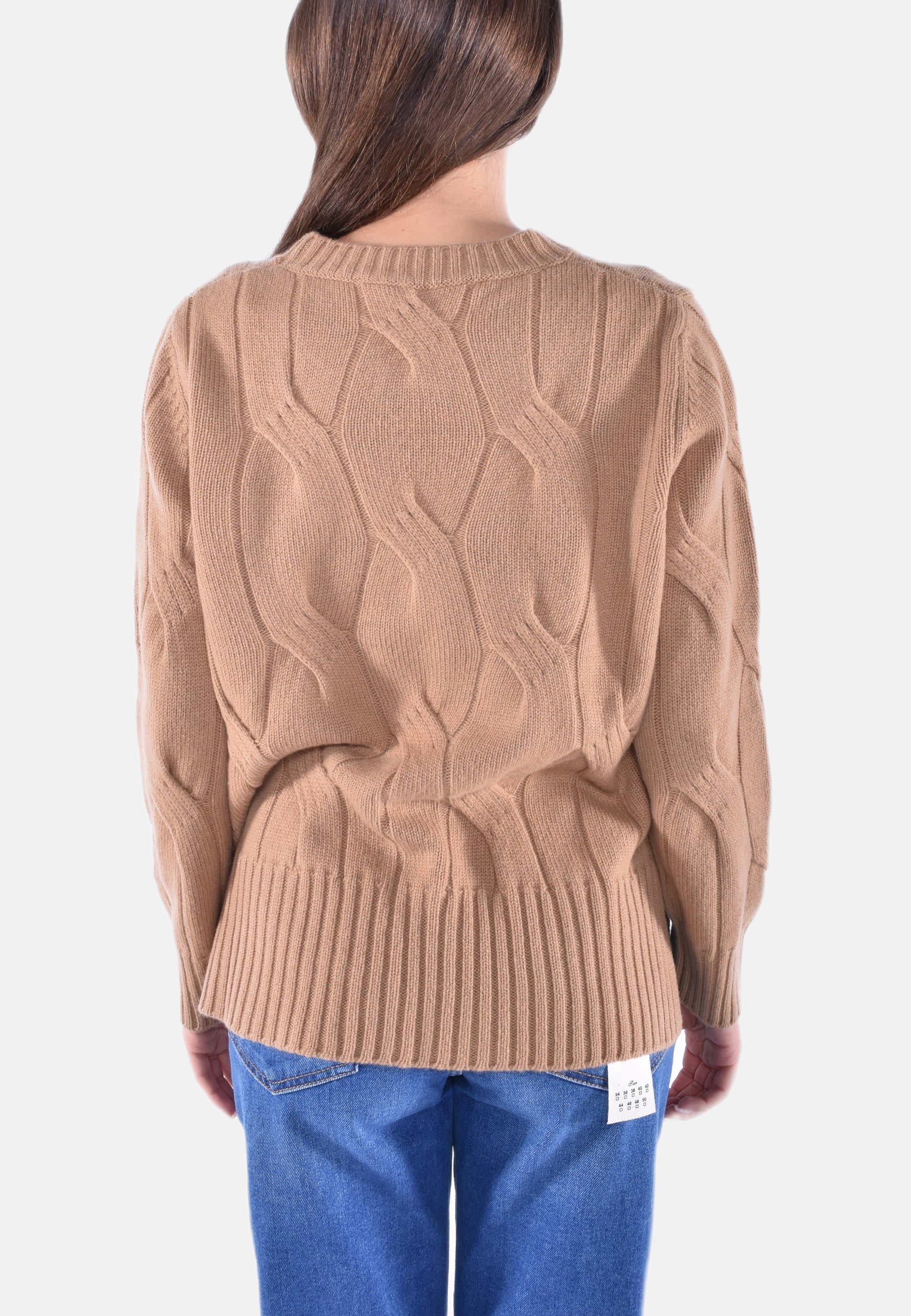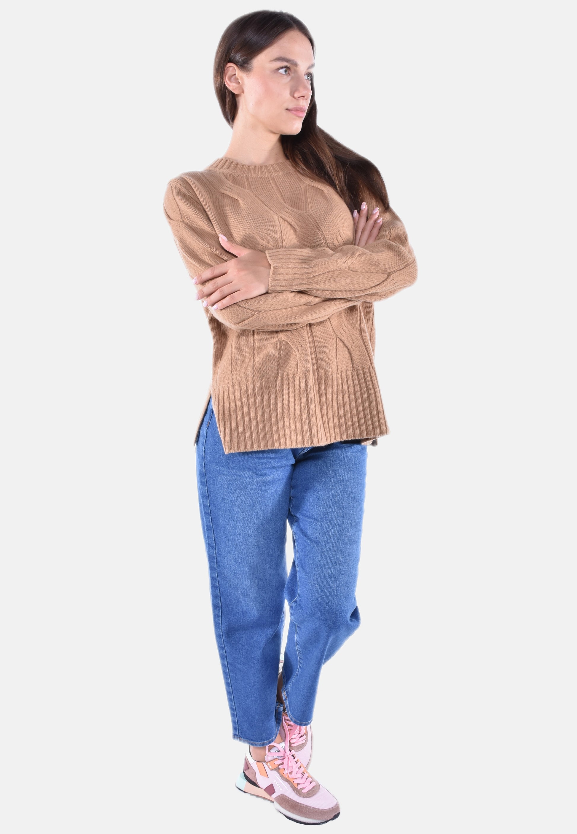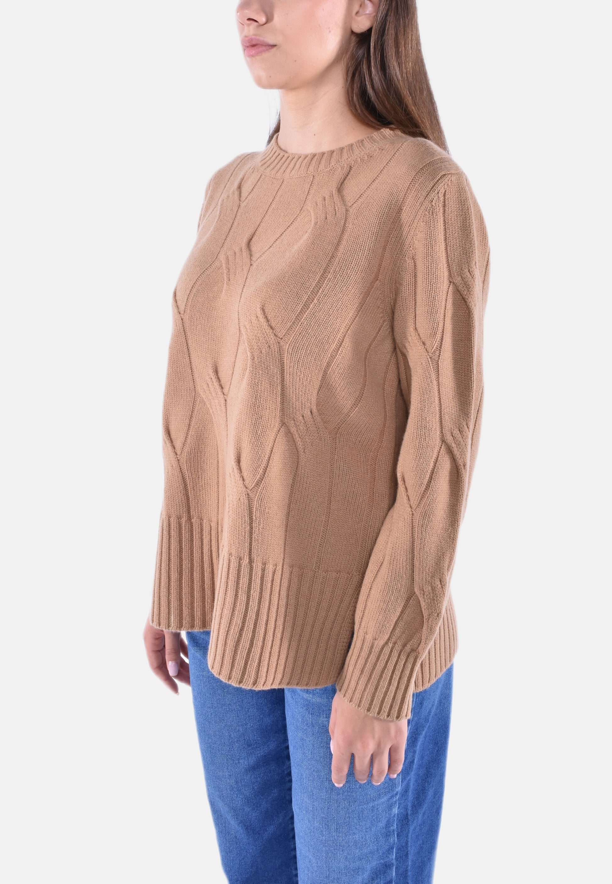 Maglione girocollo in lana e cashmere in fantasia treccia.
