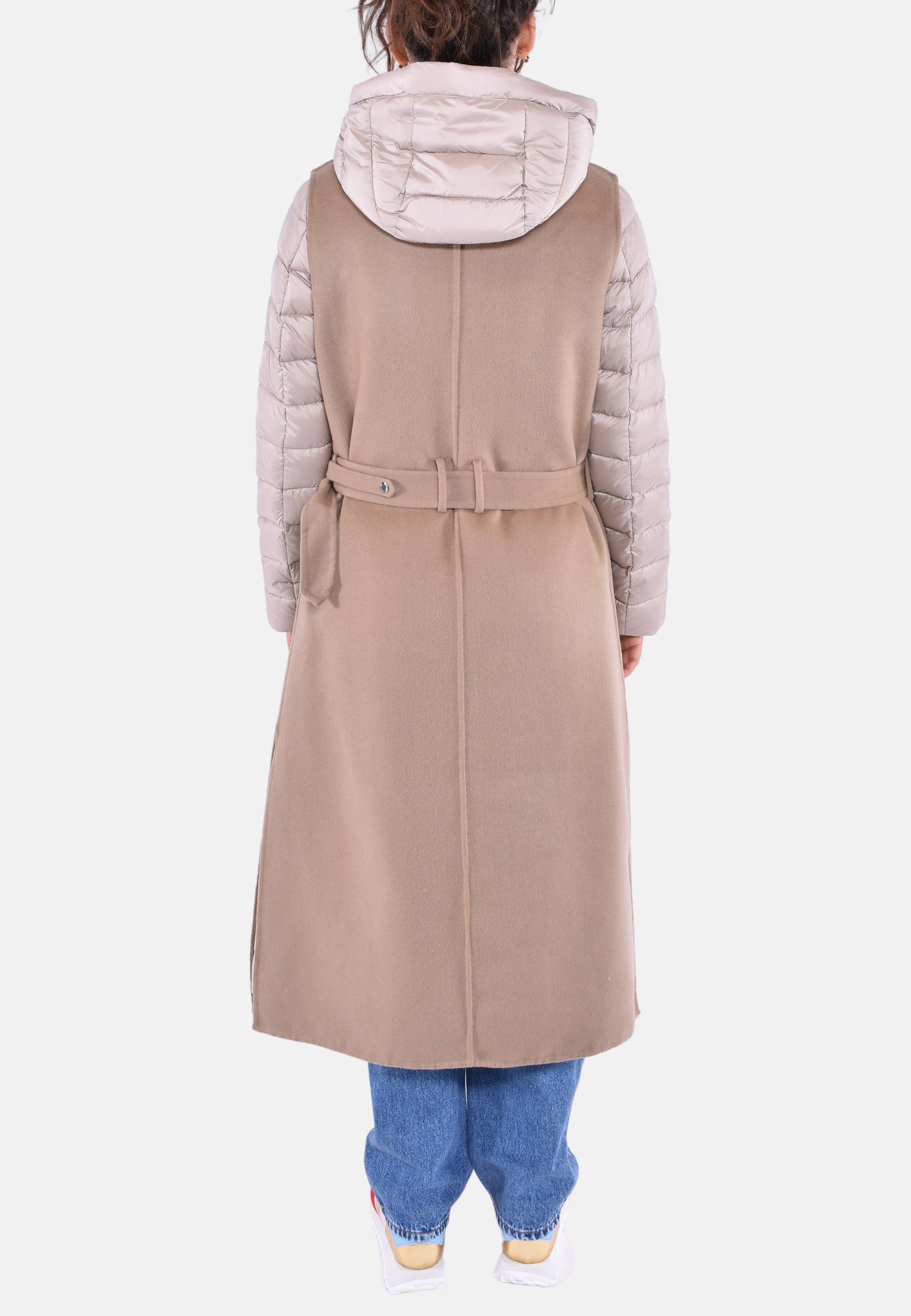 Gilet lungo unito a un caldo piumino staccabile, che permette di soddisfare un triplice utilizzo.