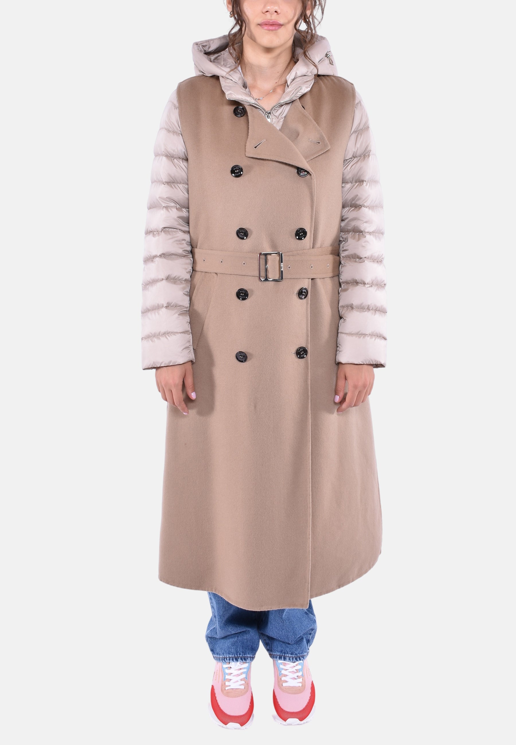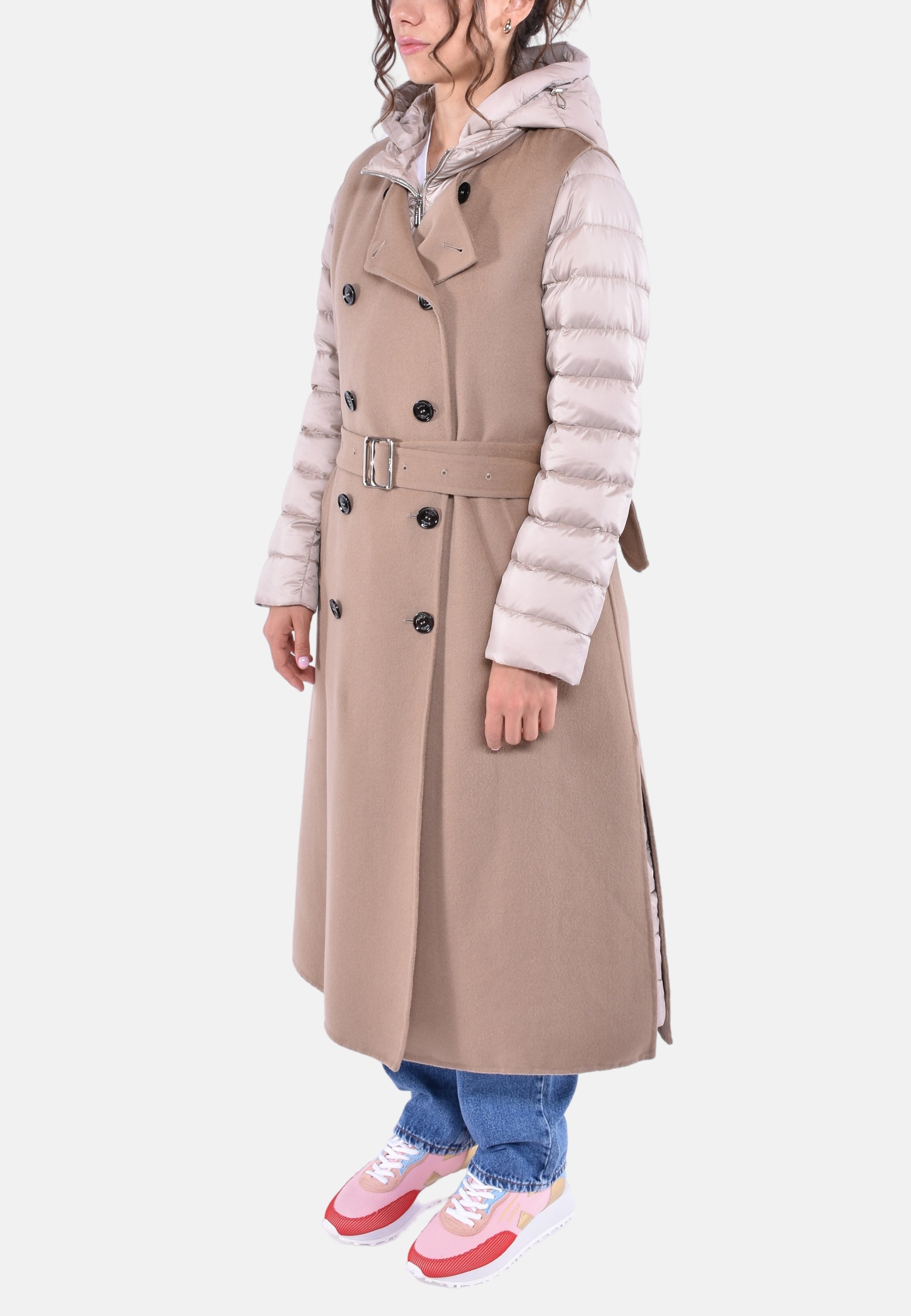 Al suo interno, un pratico piumino in finissima piuma d’oca e trapuntato a boudin, realizzato con un setoso nylon super leggero e down proof.