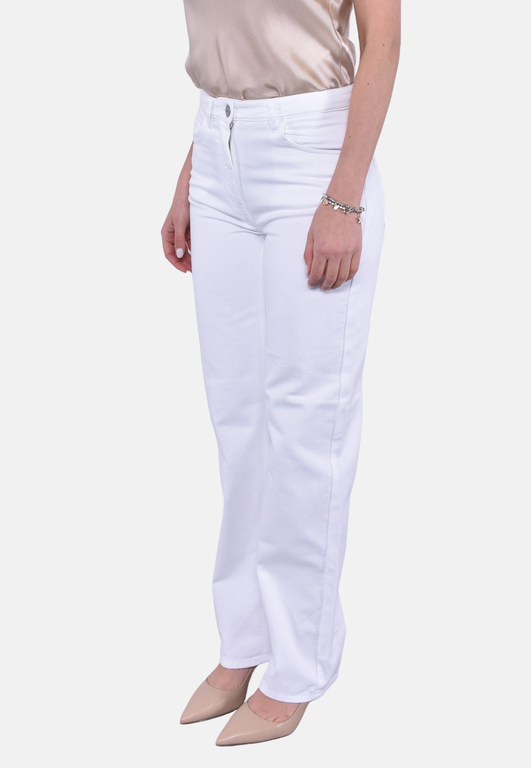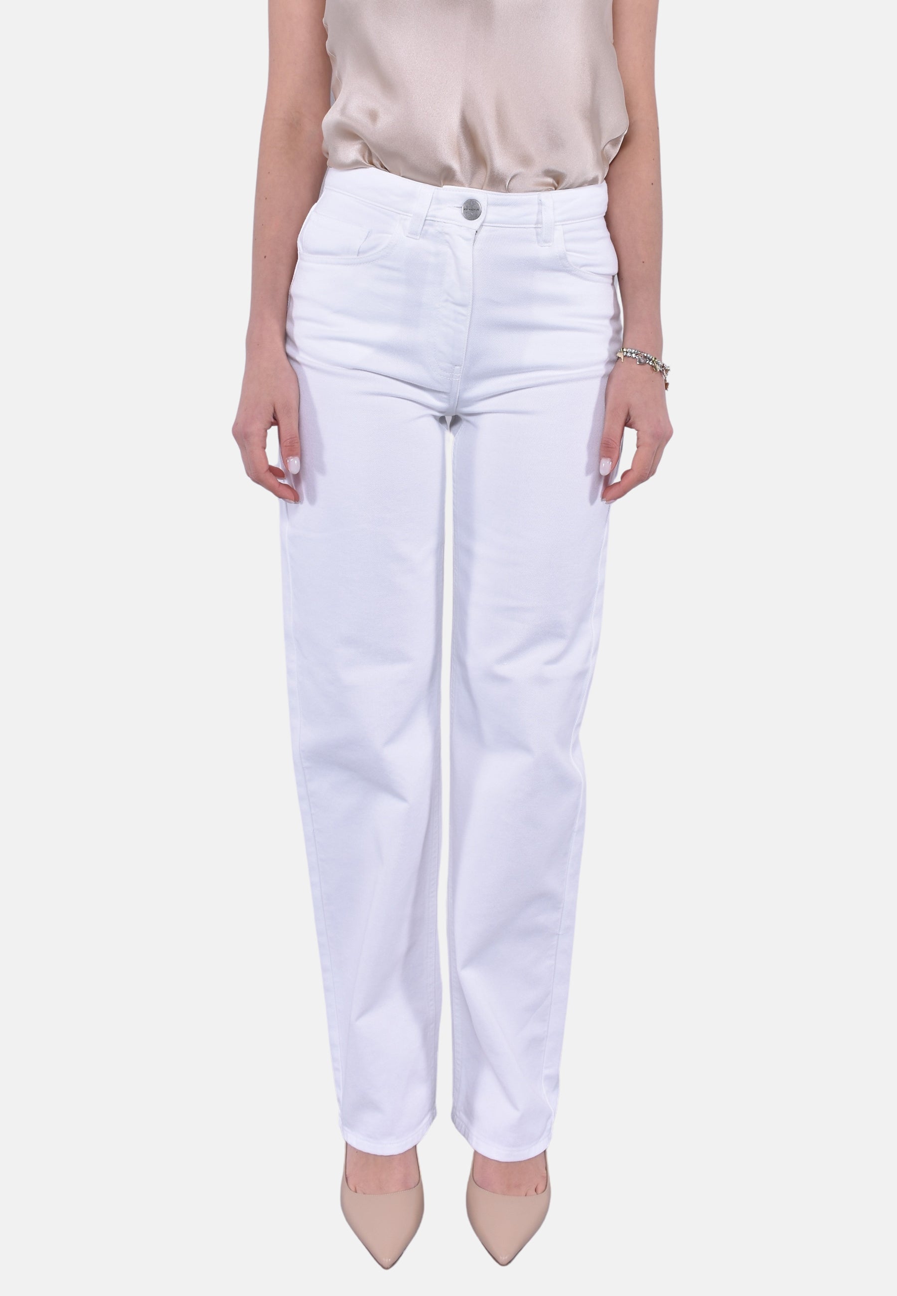 Denim lavaggio tinta unita a vita bassa, modello regular. Bottone logato MVP.