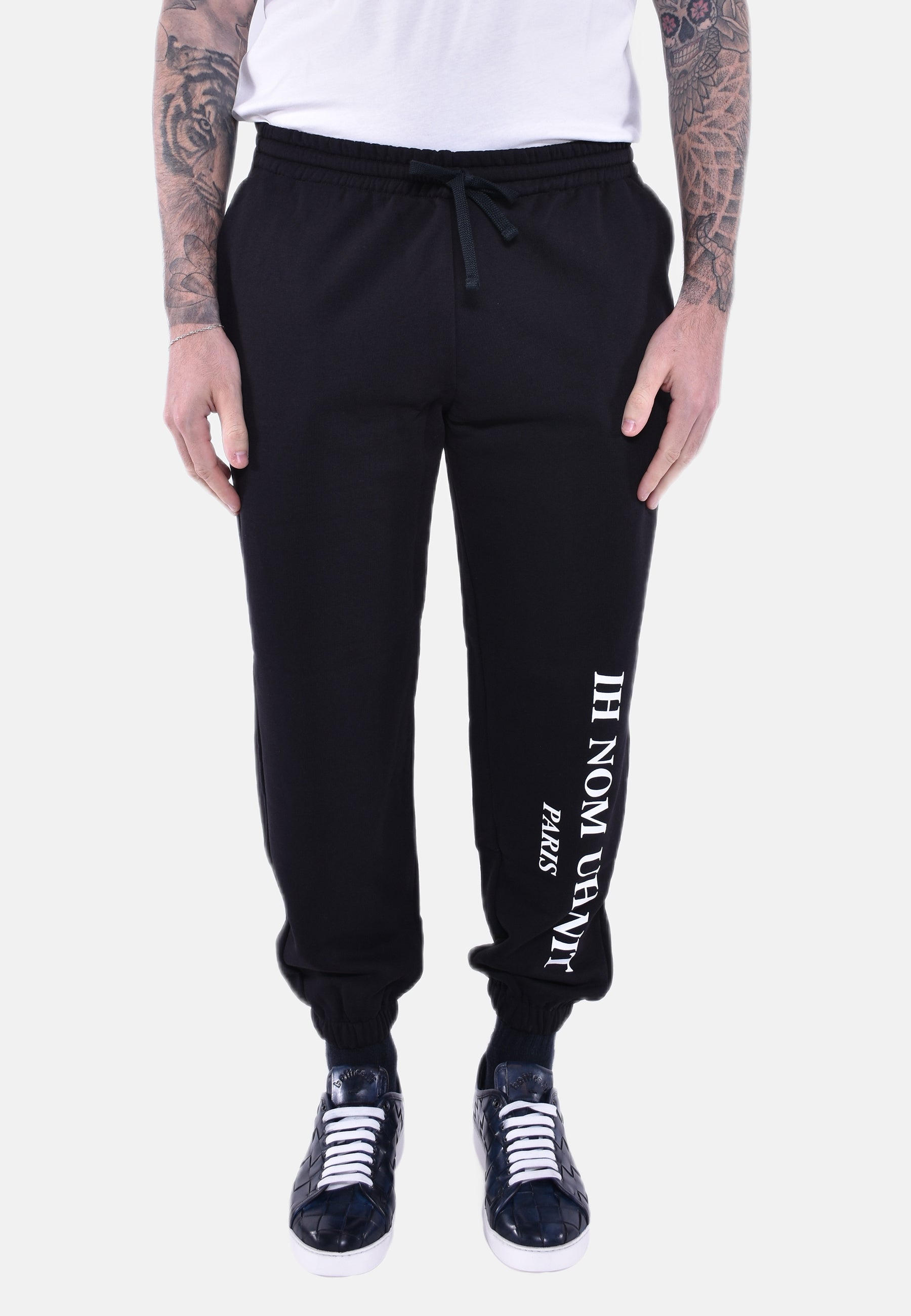 Pantalone con elastico e coulisse, logo sulla parte inferiore.