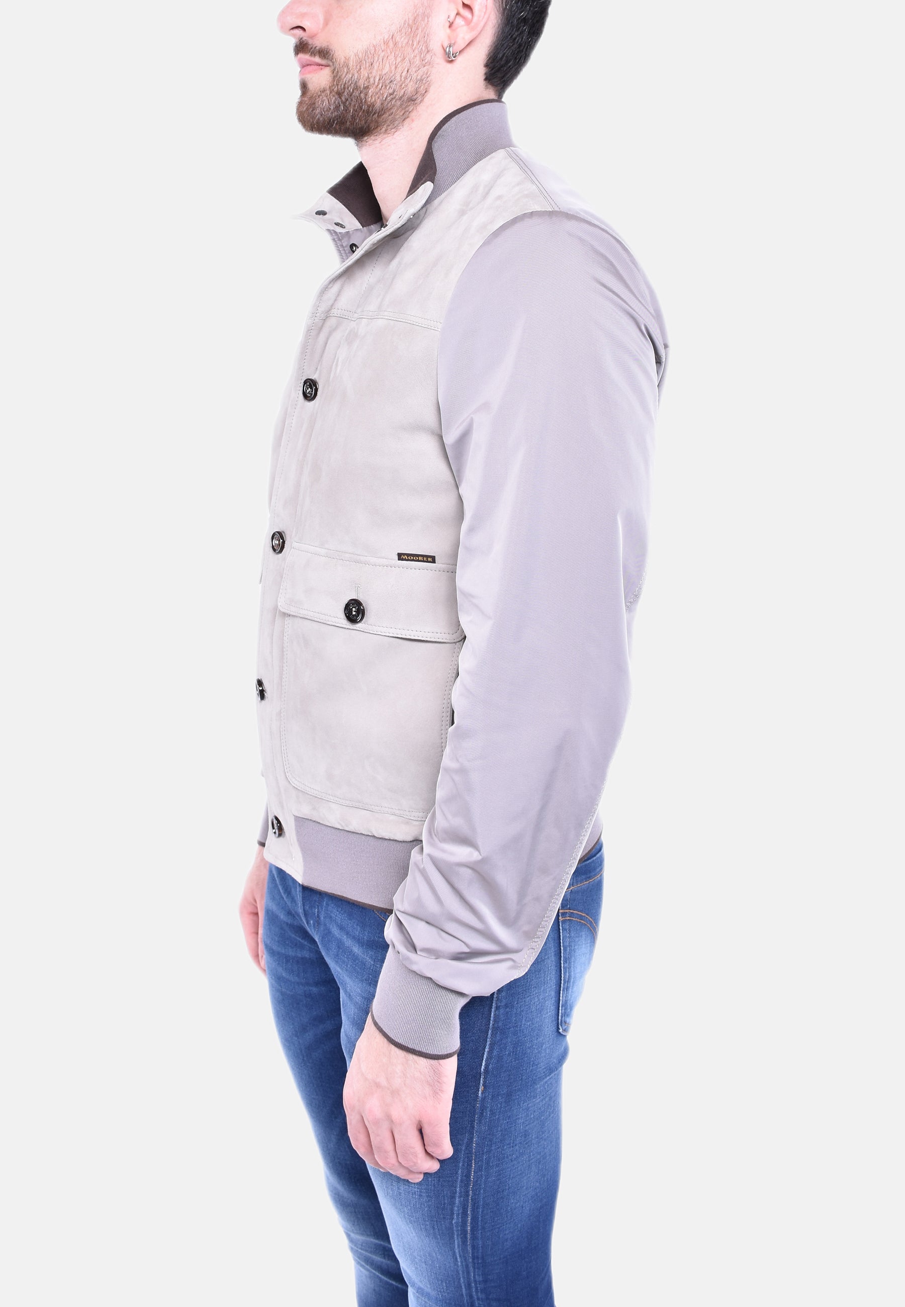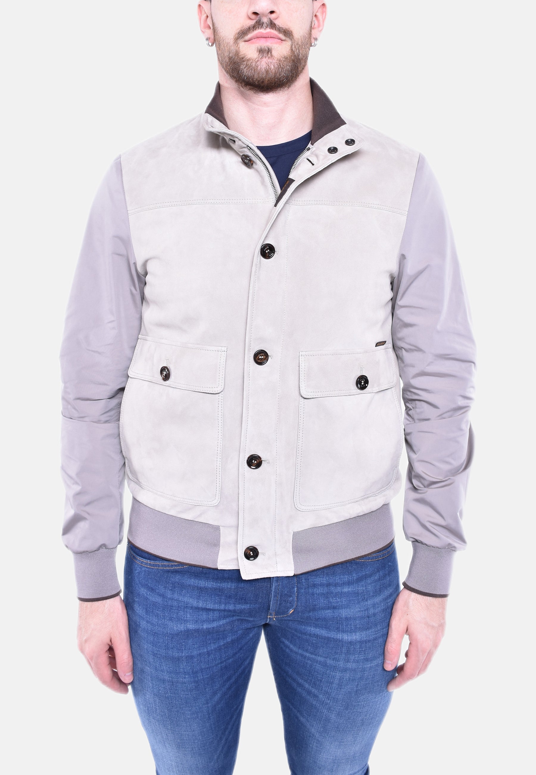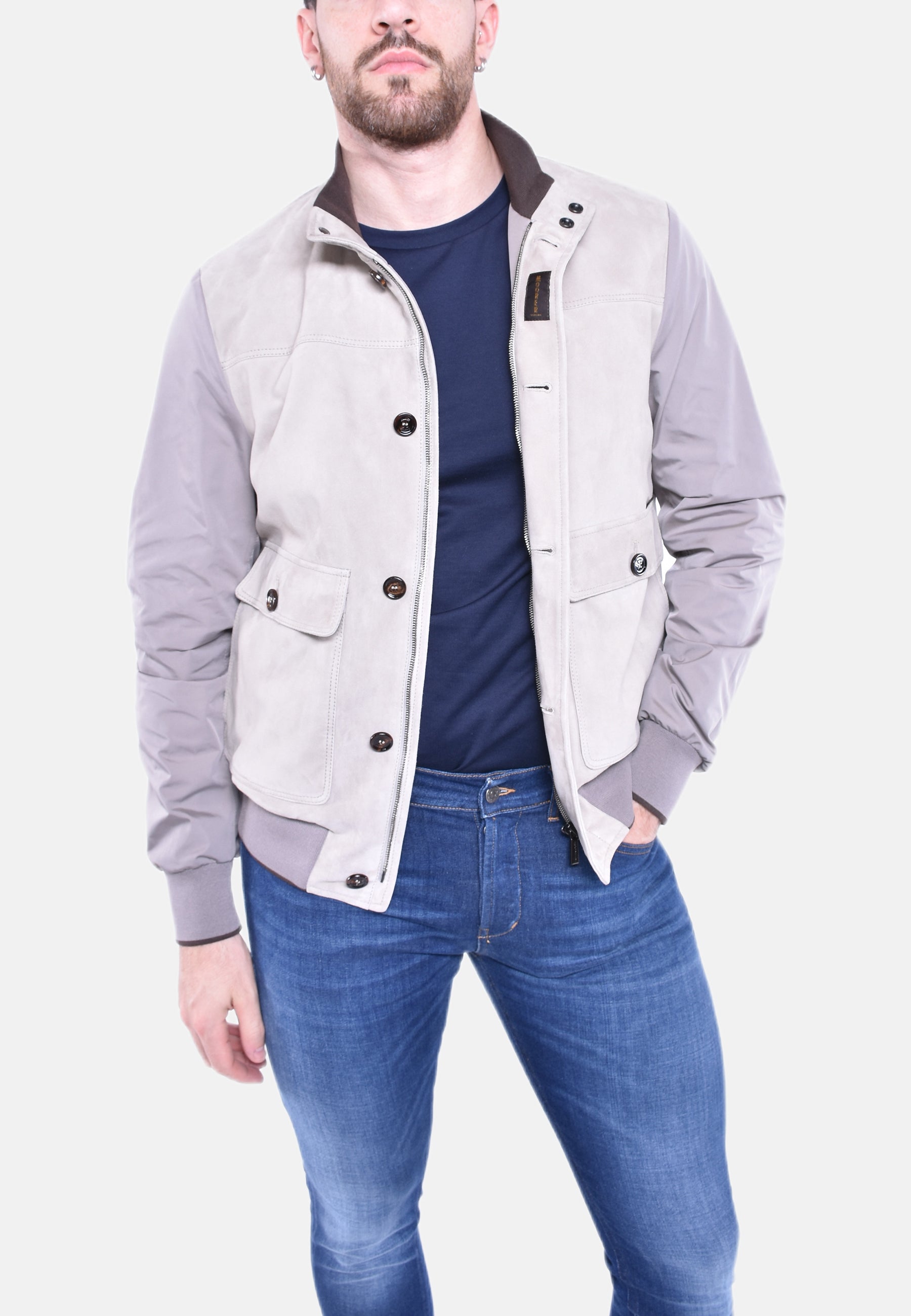 Morbido camoscio sul busto, tessuto drill cangiante su maniche e schiena e fodera interna jersey mélange