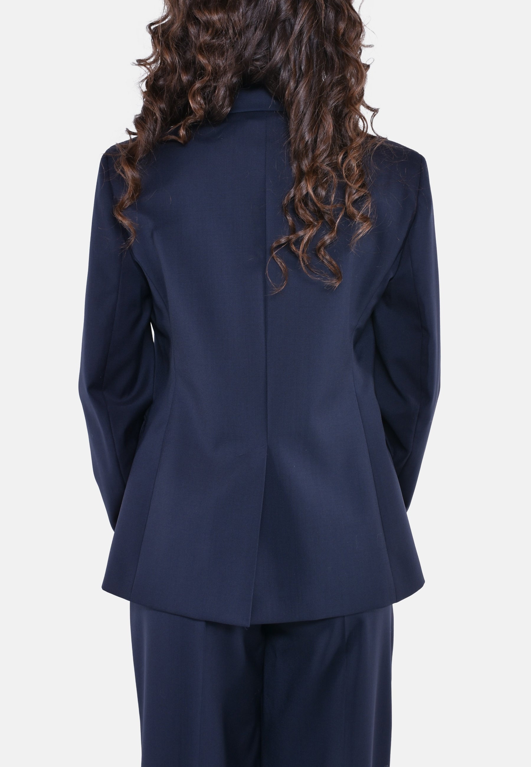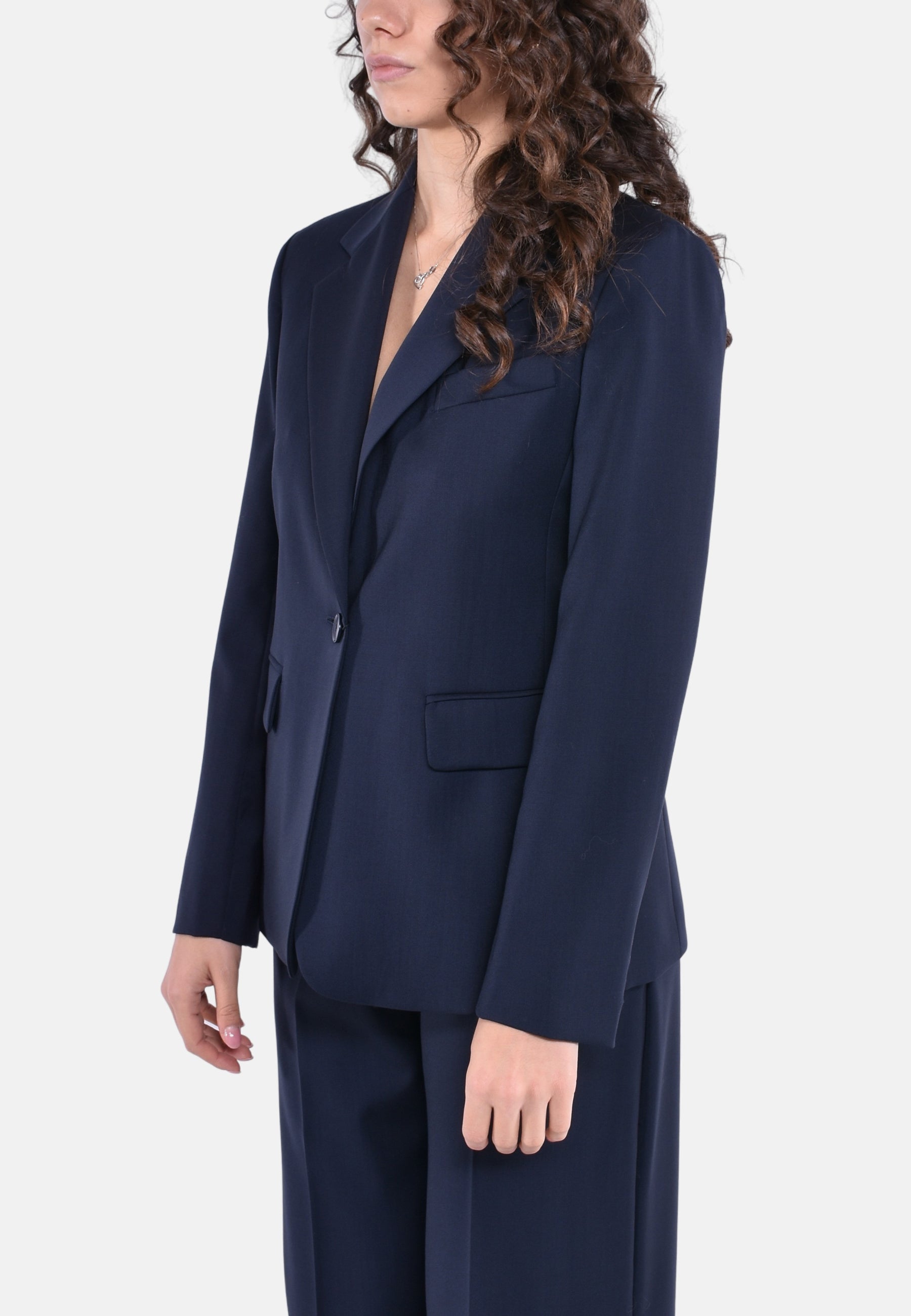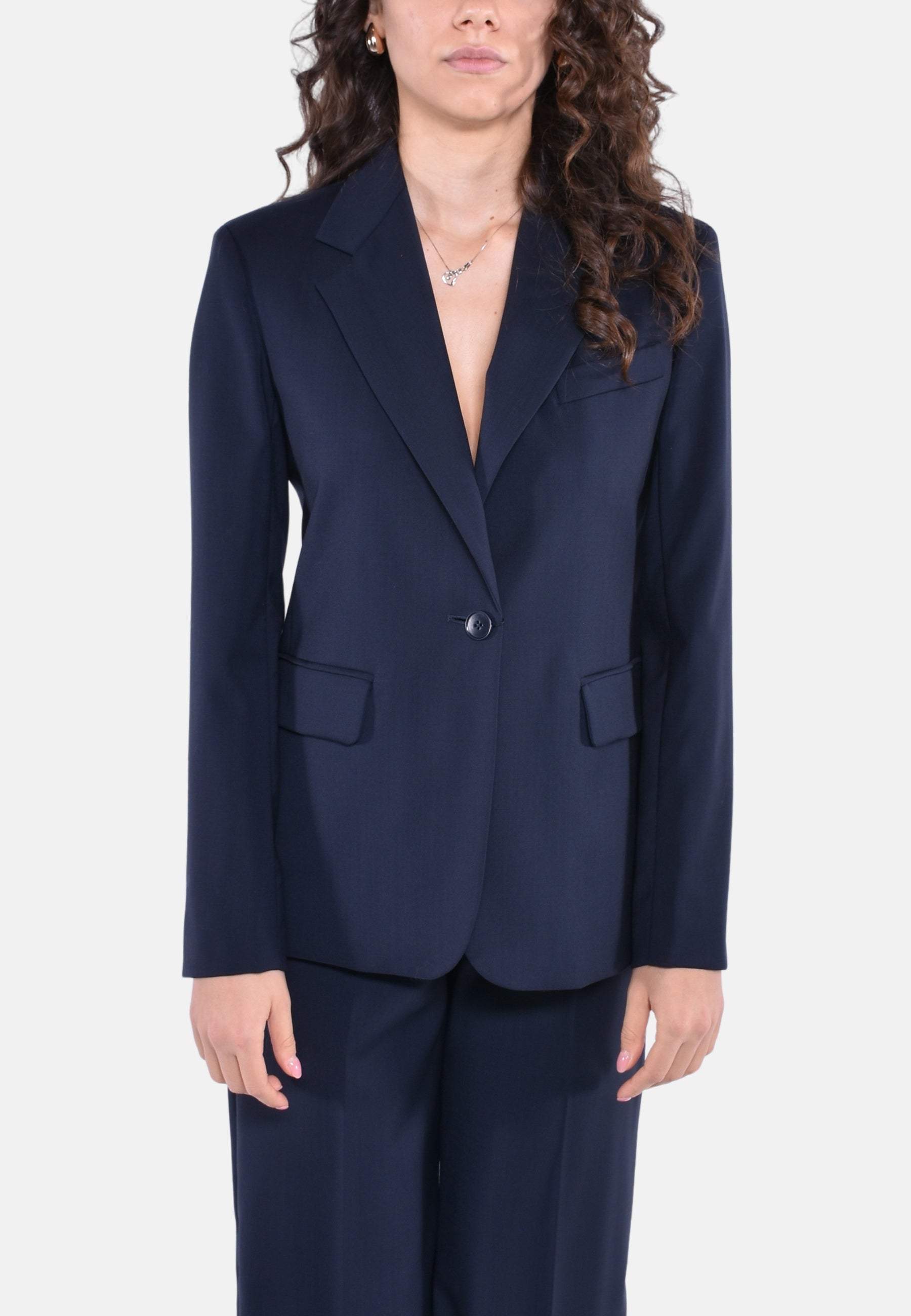 Blazer monopetto in pregiato tessuto di pura lana natural stretch, caratterizzato da una linea sfiancata con spacco centrale sul retro. Modello foderato di ispirazione sartoriale con collo a rever, taschino sul petto e tasche con patta applicata sul davanti. Chiusura con bottone singolo.
