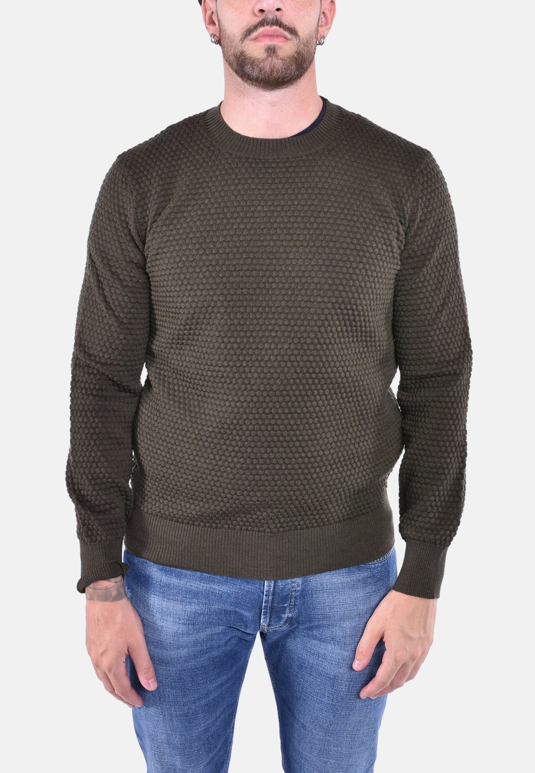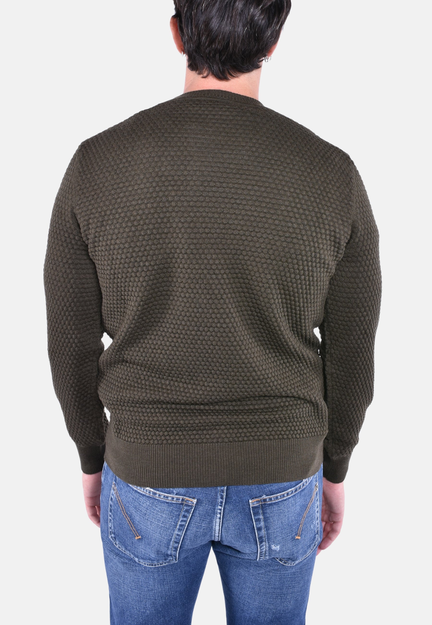 Maglione girocollo in morbida lana stretch con fantasia a pallini in rilievo.
