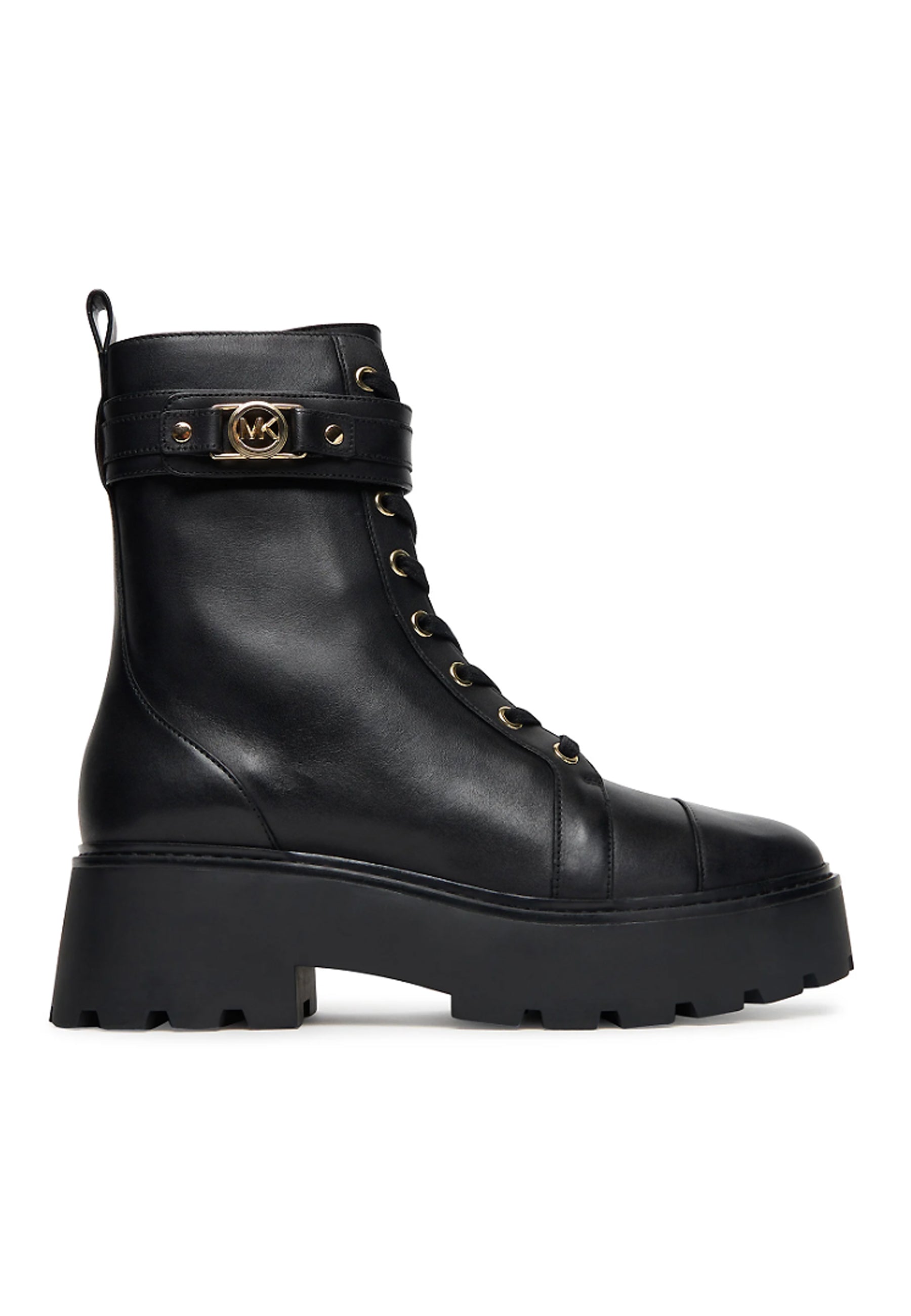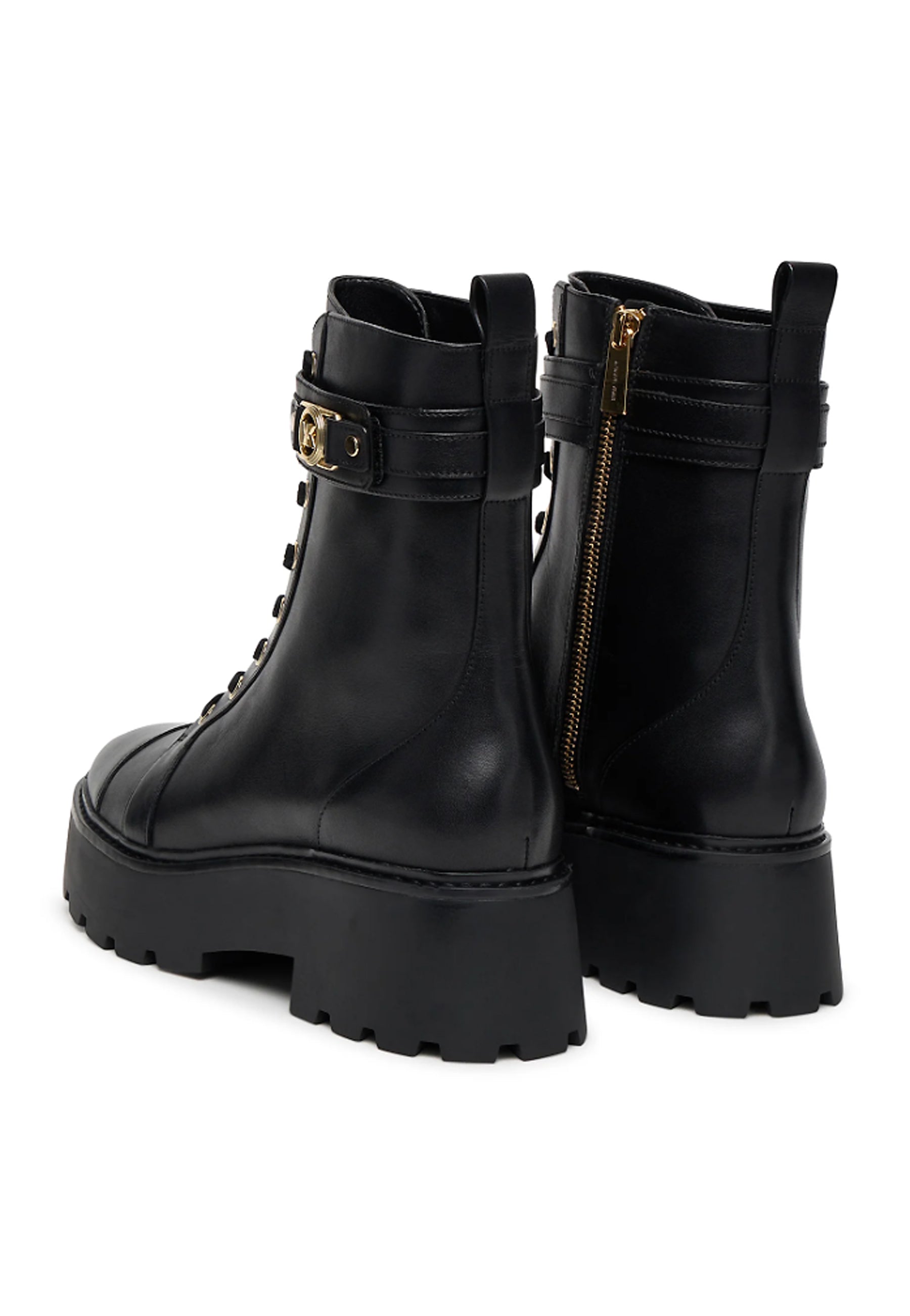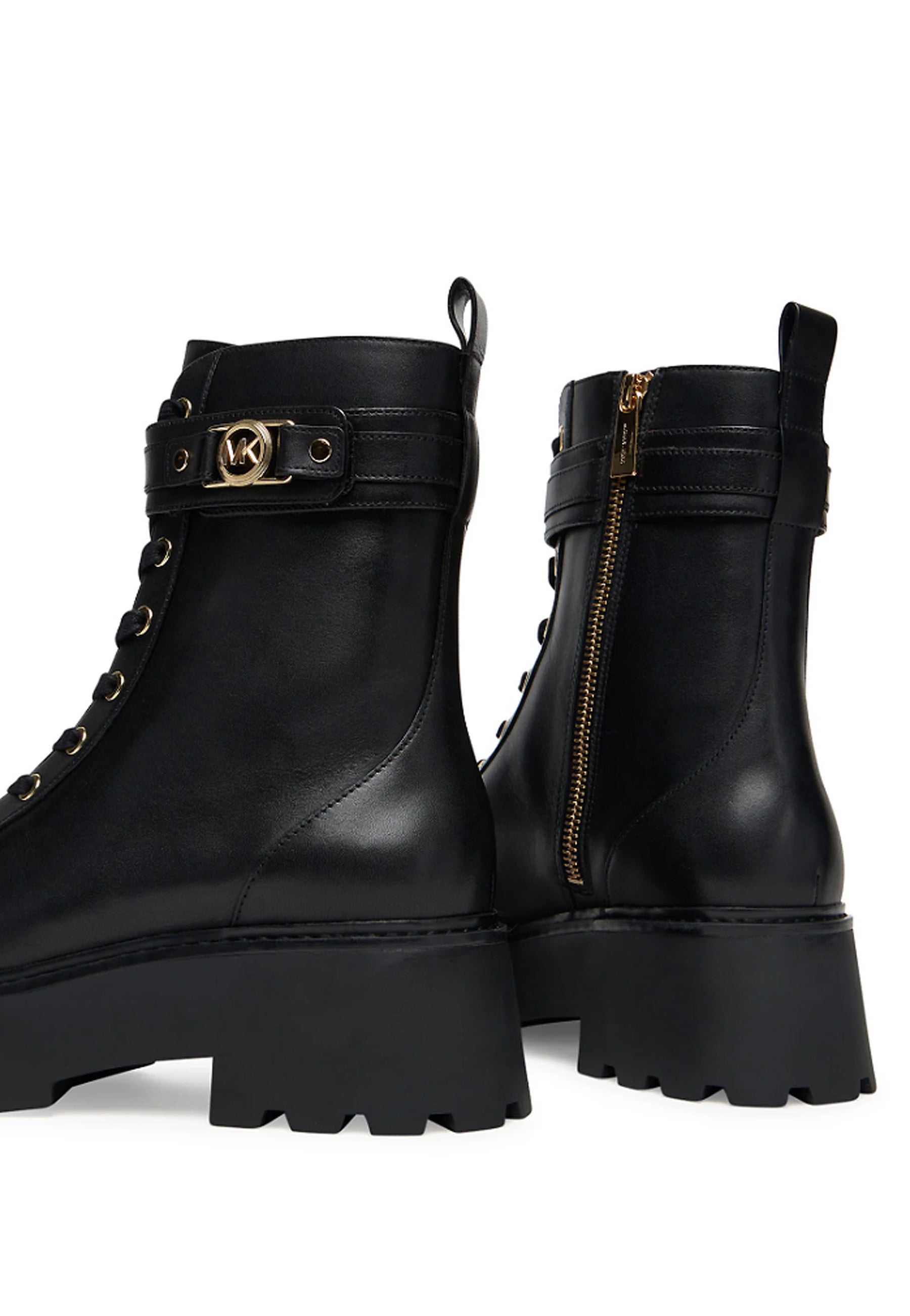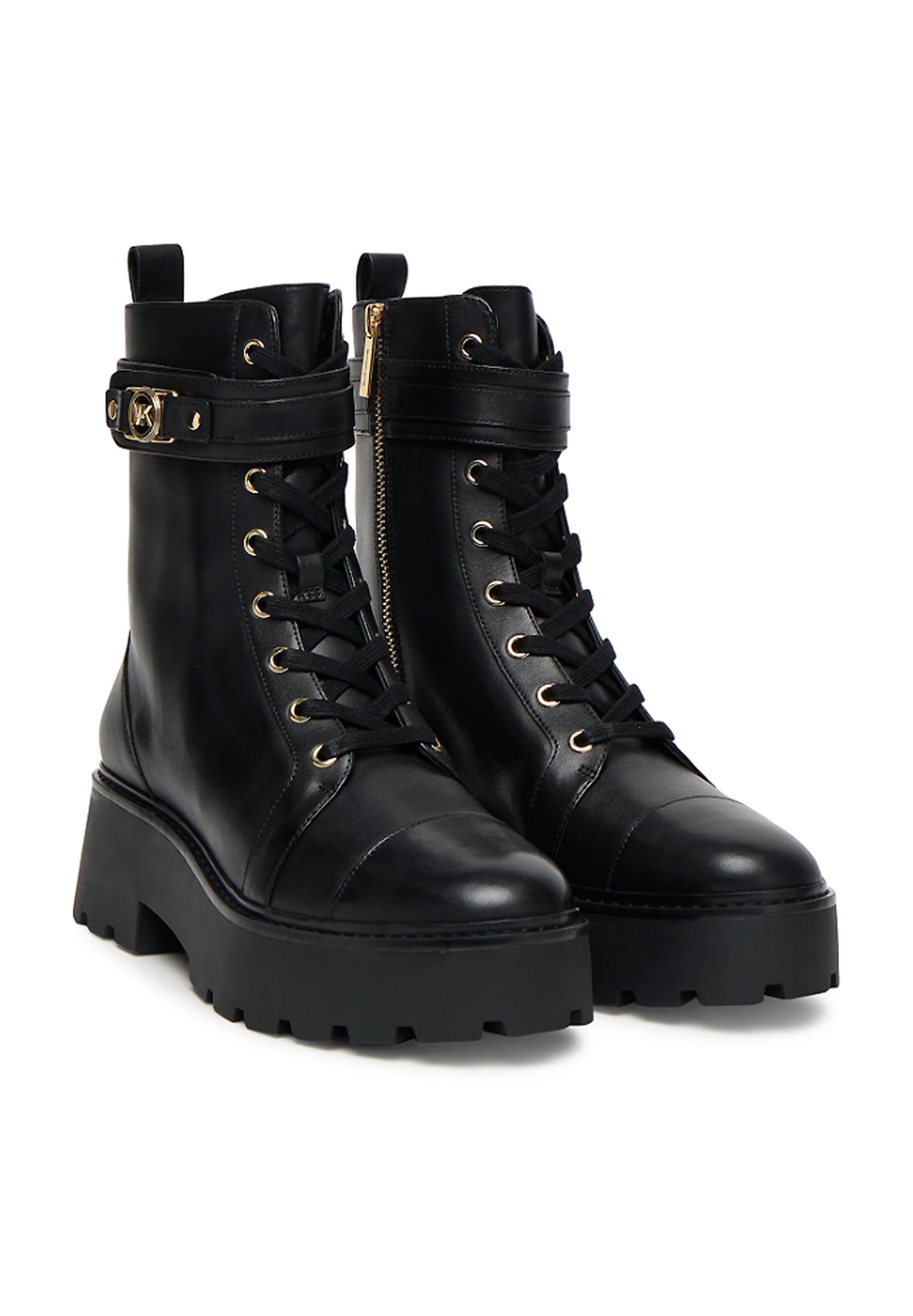 Versatile ed elegante, il nostro Mandy in pelle è lo stivale combat must-have della stagione. Questo modello presenta una fibbia lucida, una chiusura laterale con zip e una suola in gomma con plateau antiscivolo. Abbina il suo mood grintoso agli abiti fluidi della stagione.