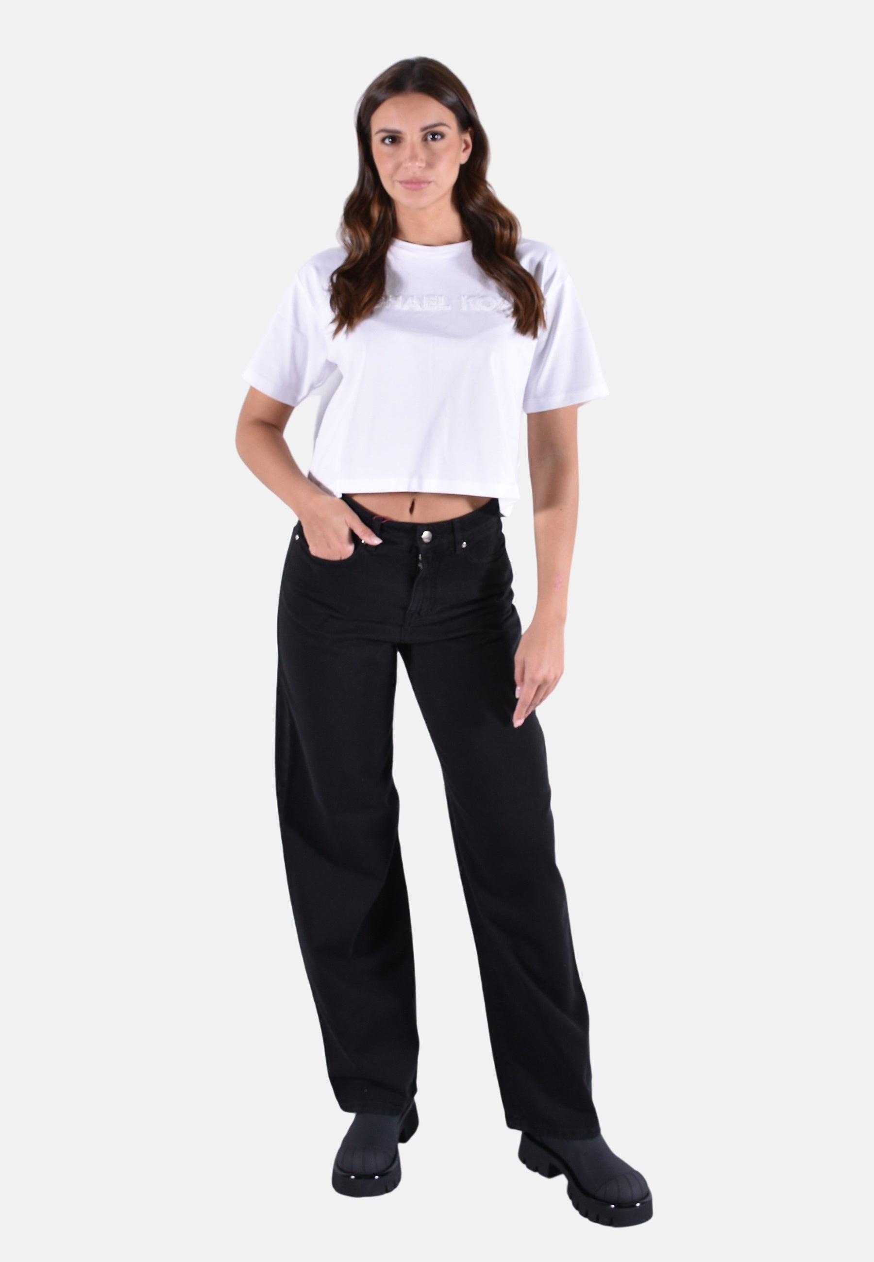 La modella è alta 170cm e indossa la taglia 38 it.