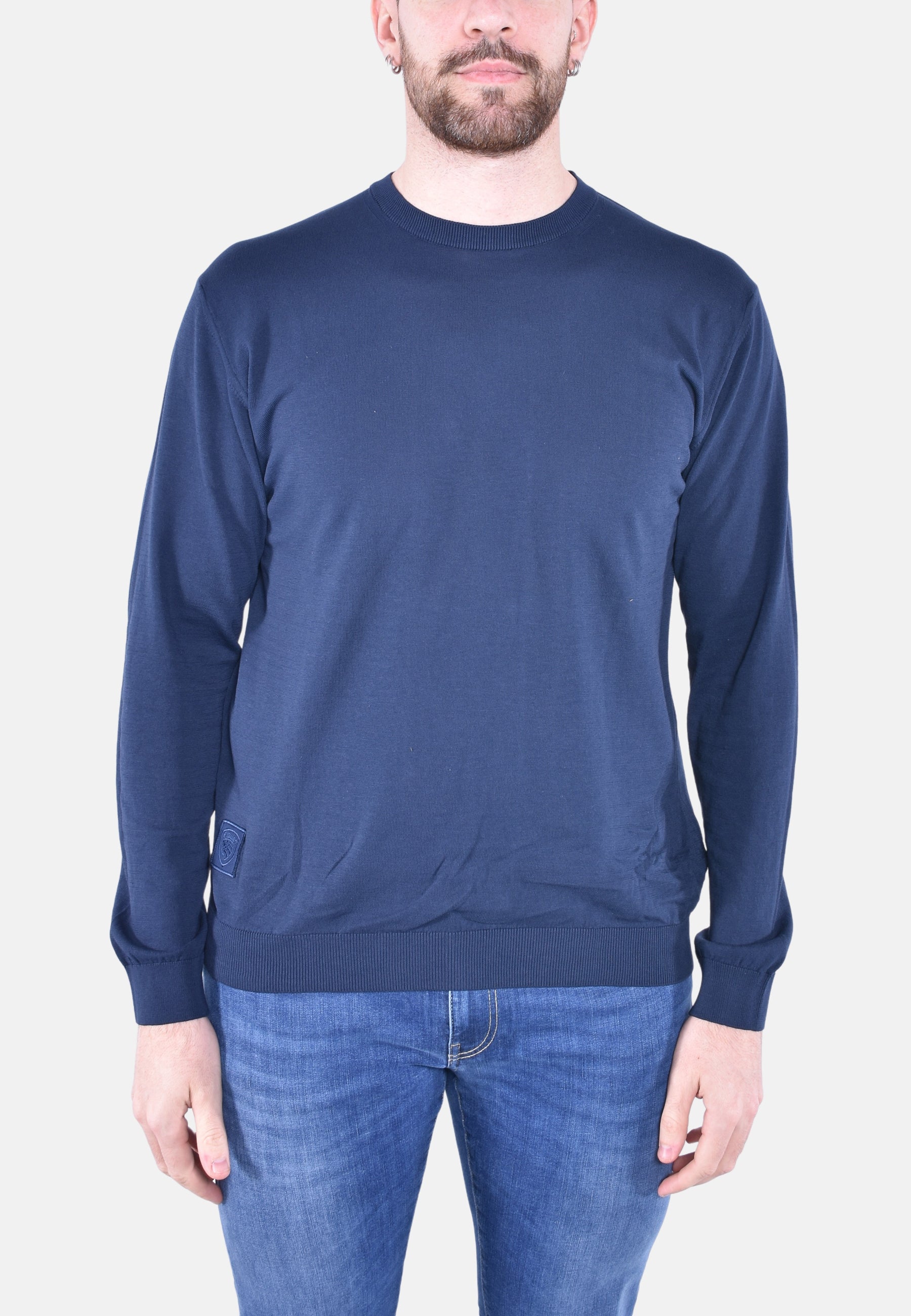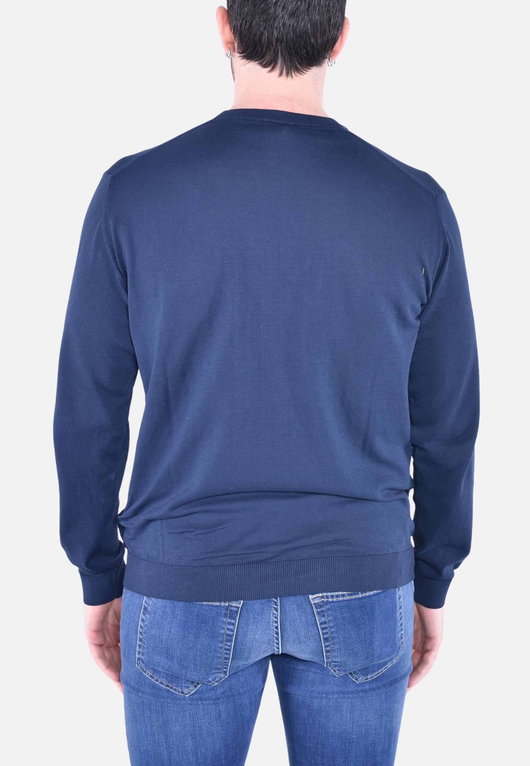 Maglia girocollo tinta in capo con effetti sfumati dall’effetto vissuto. Tessuto in crepe di cotone per dare un tono elegante alla maglia.