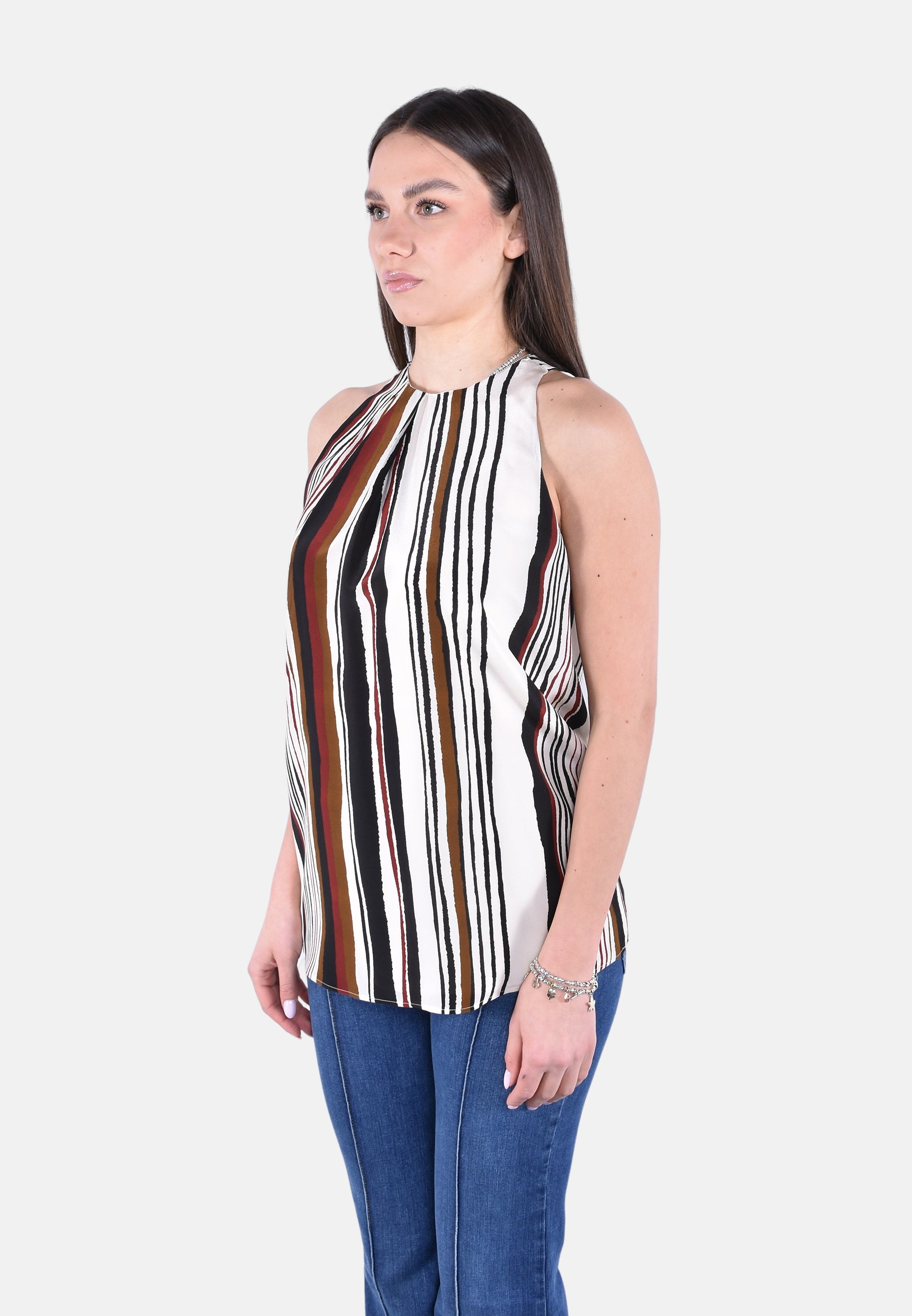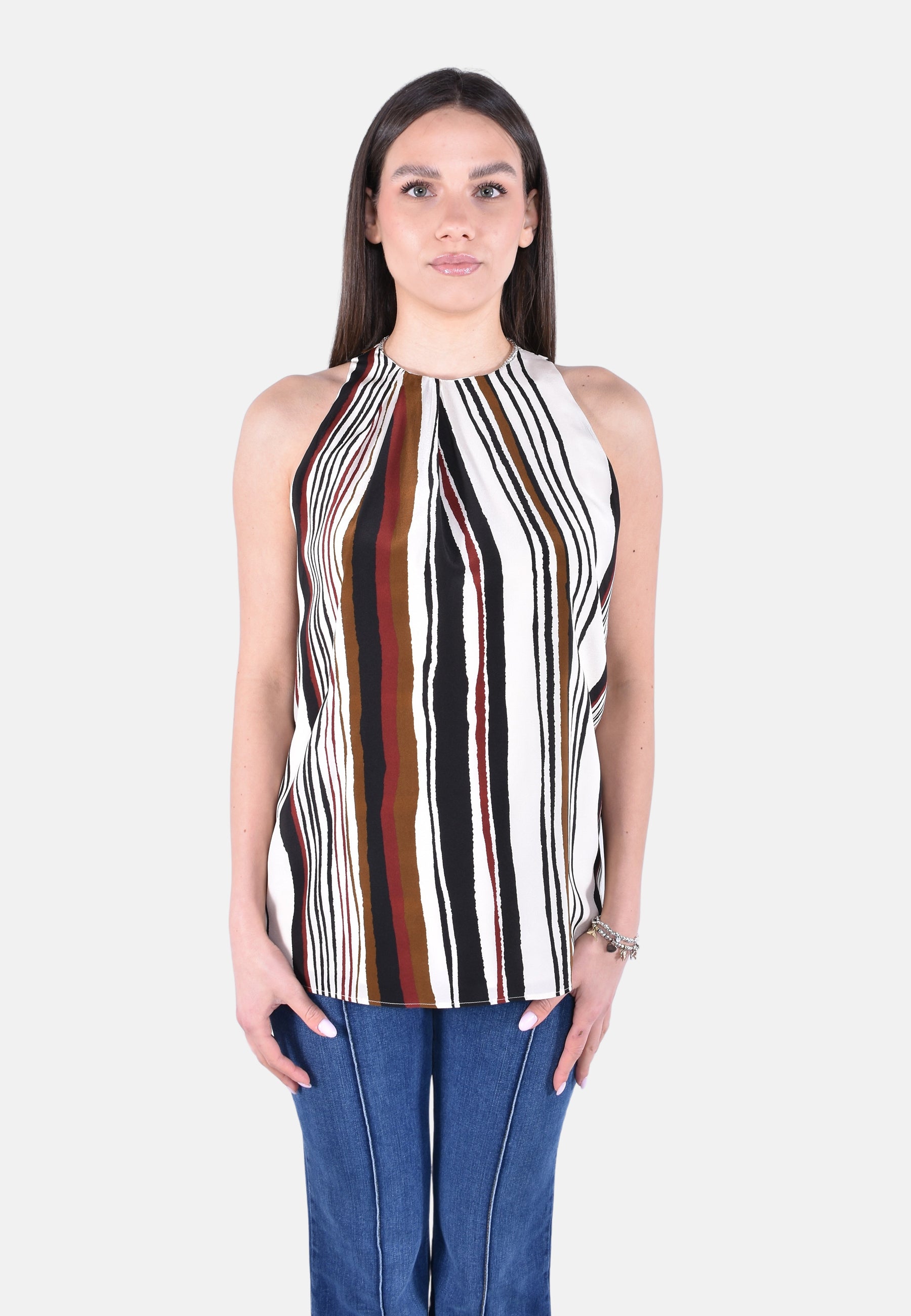 Top smanicato con motivo di pieghe asimmetriche sullo scollo.