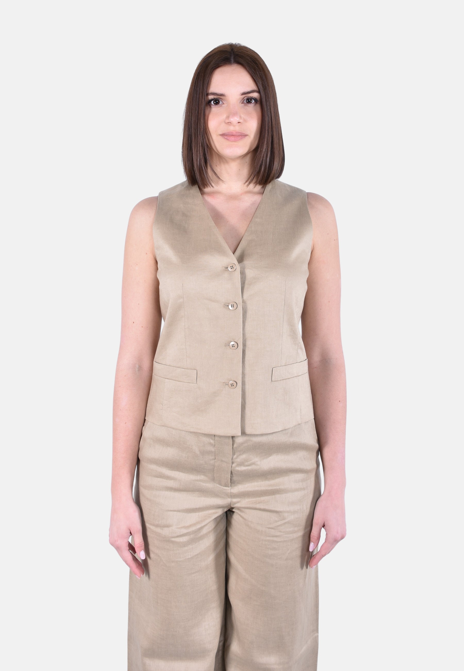 Gilet in tela leggera di puro lino lavato