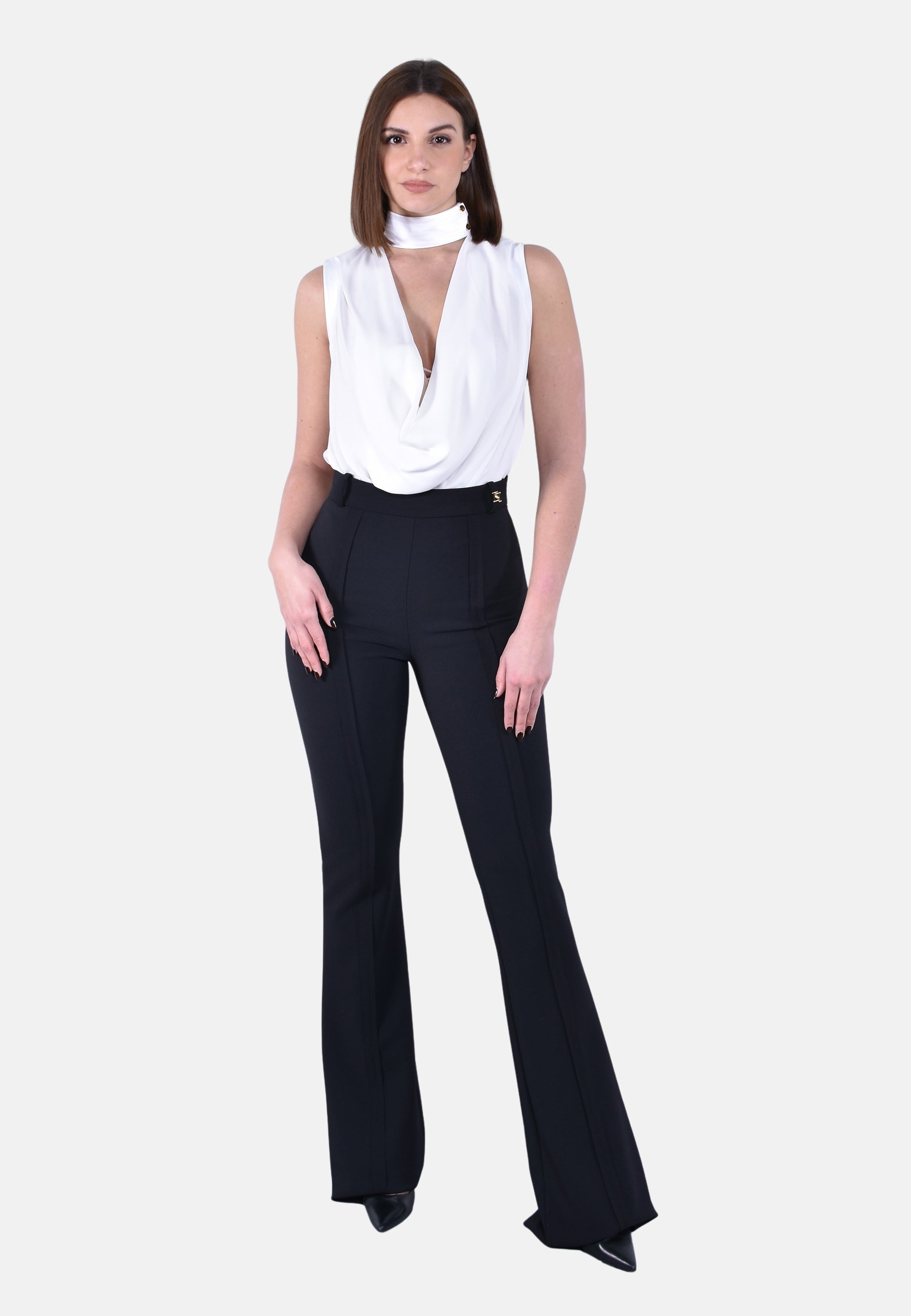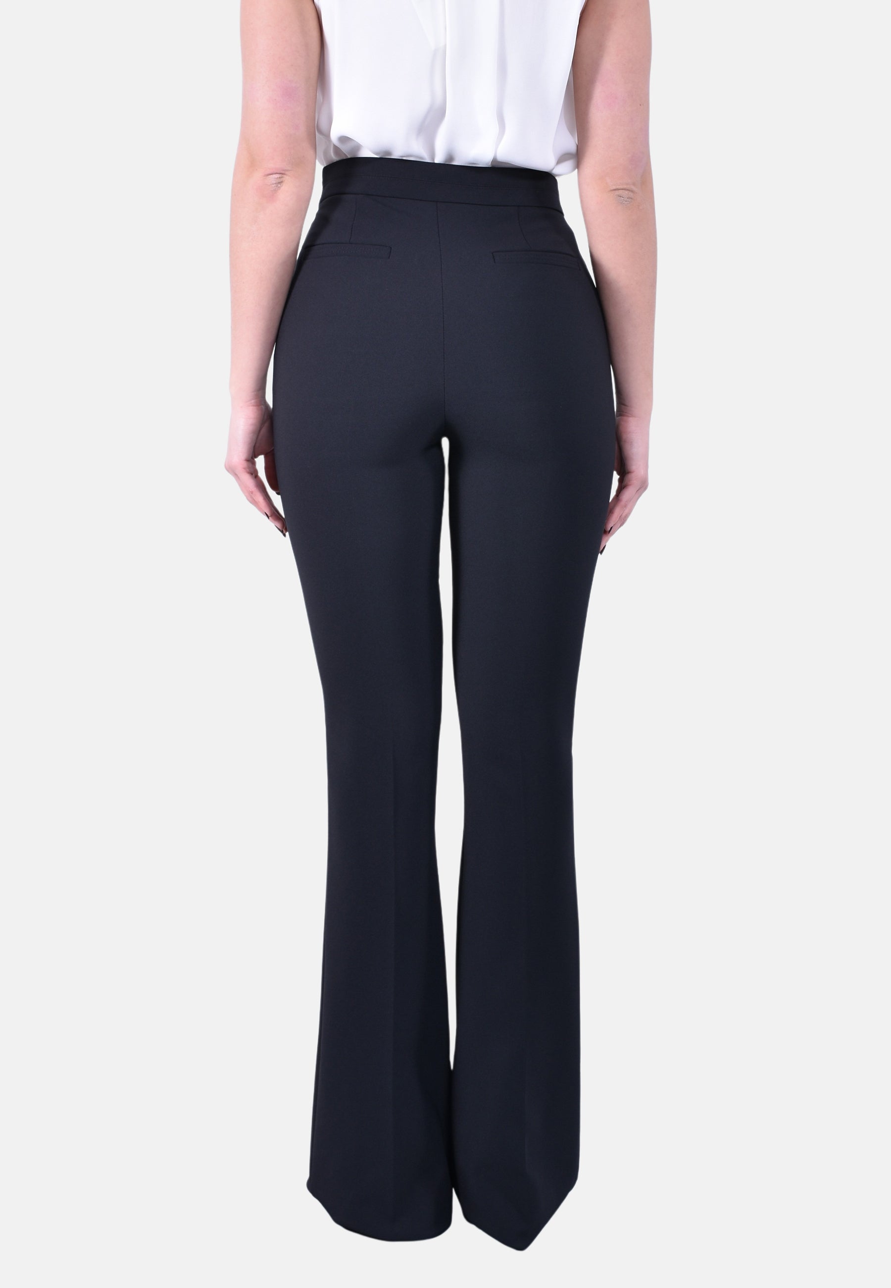 Pantaloni in doppio crêpe stretch. Sono impreziositi dal dettaglio di charm con logo su un passante. I tagli laterali sono sottolineati dalle cuciture riportate esternamente, rifinite con tessuto a taglio vivo e impunture. Vestibilità regular. Parte della collezione Essential, per costruire il guardaroba perfetto.