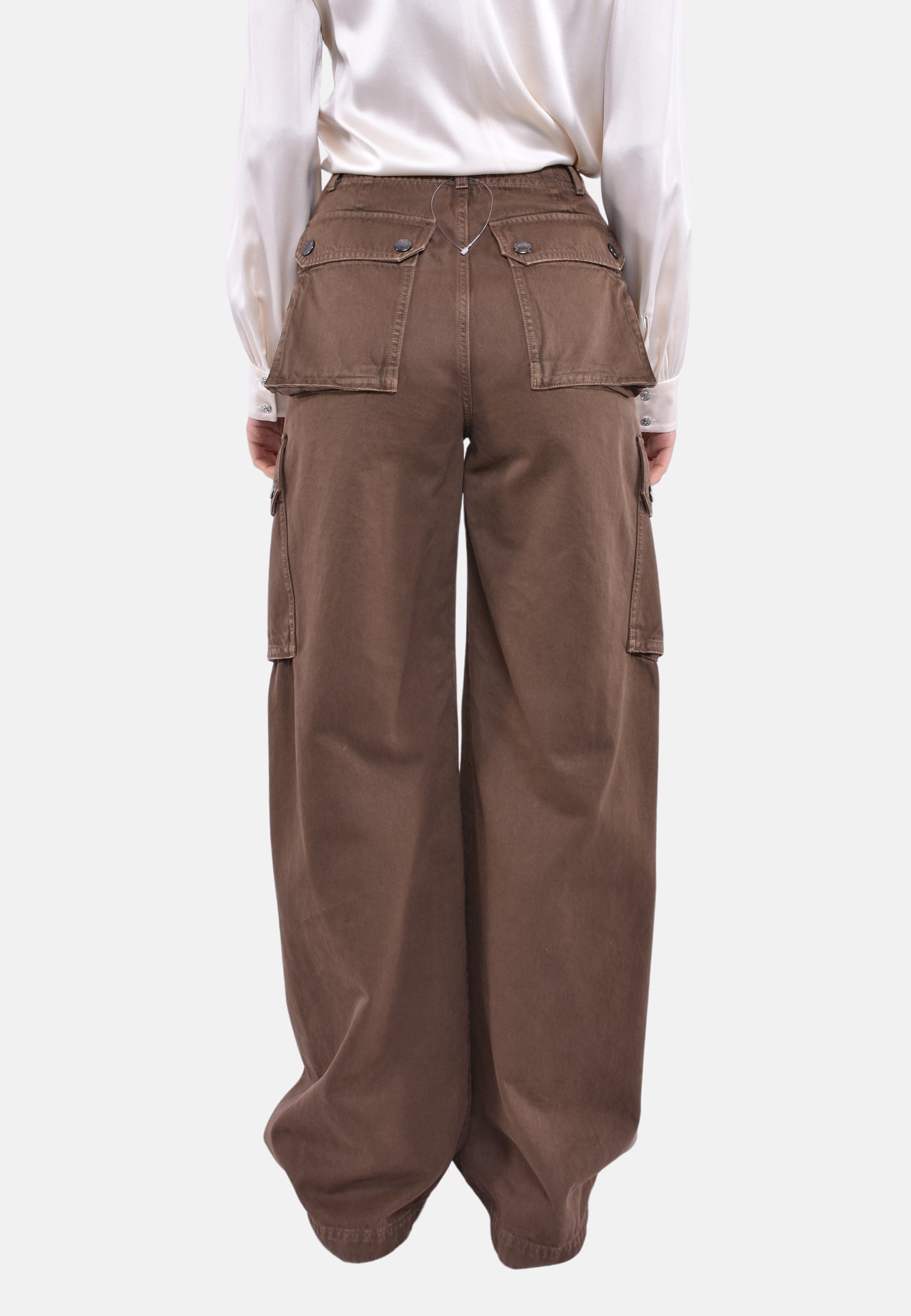 Pantalone stile cargo, realizzato in una gabardina di puro cotone tinto in capo dalla texture sostenuta. Modello a vita media con linea ampia sulla gamba, caratterizzato da tasche alla francese sui fianchi, grandi tasche a toppa sulle gambe e tasche a soffietto con patta e bottone a pressione sul retro. Chiusura frontale con zip nascosta e bottone. La quotidianità si veste di raffinatezza e spirito western nella Signature Collection firmata da Lucy Hale per Weekend Max Mara. Un tributo all'estetica western rivisitata con capi dalle linee pulite e dettagli iconici. Un look effortless che parla di comfort, eleganza e autenticità.