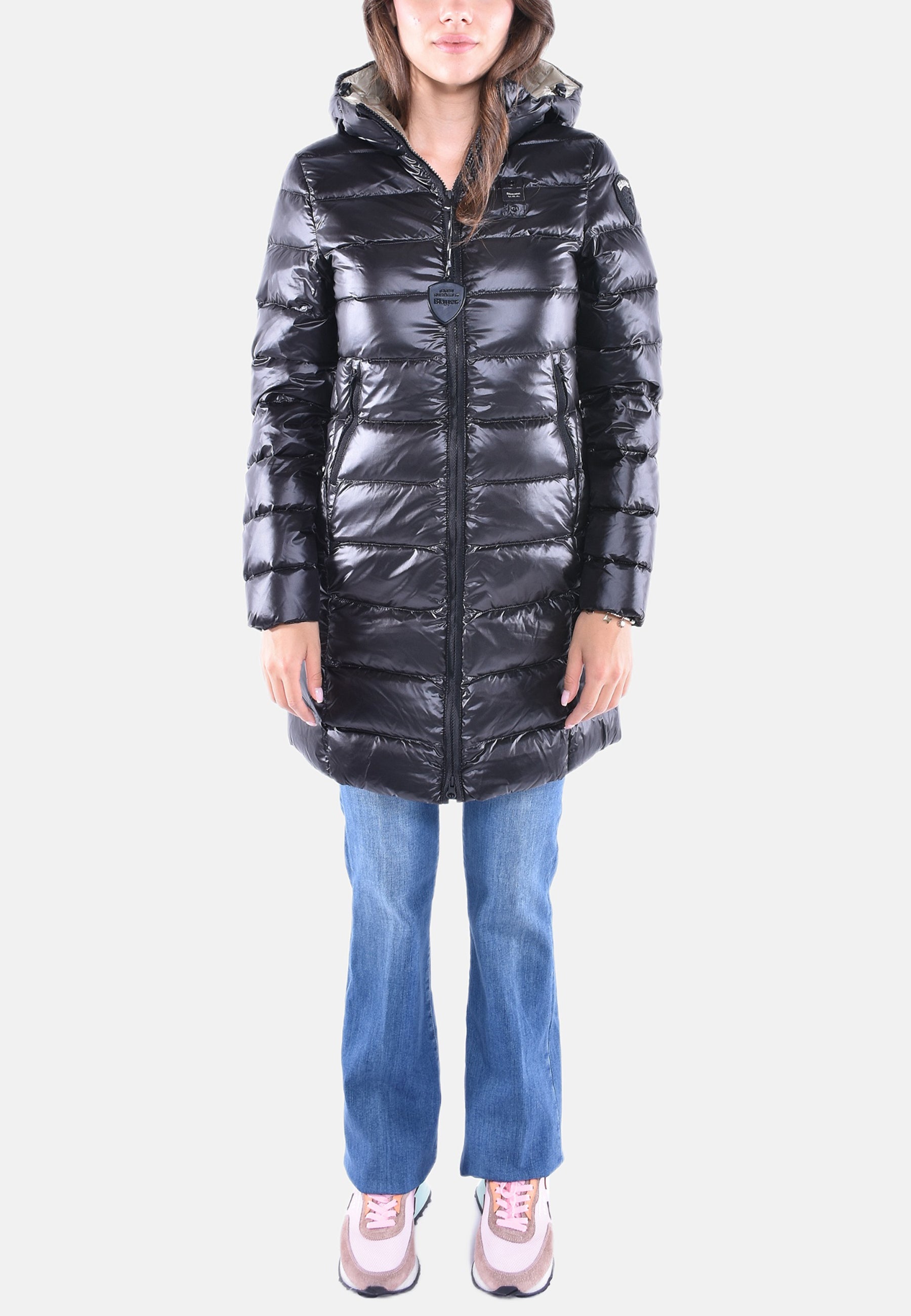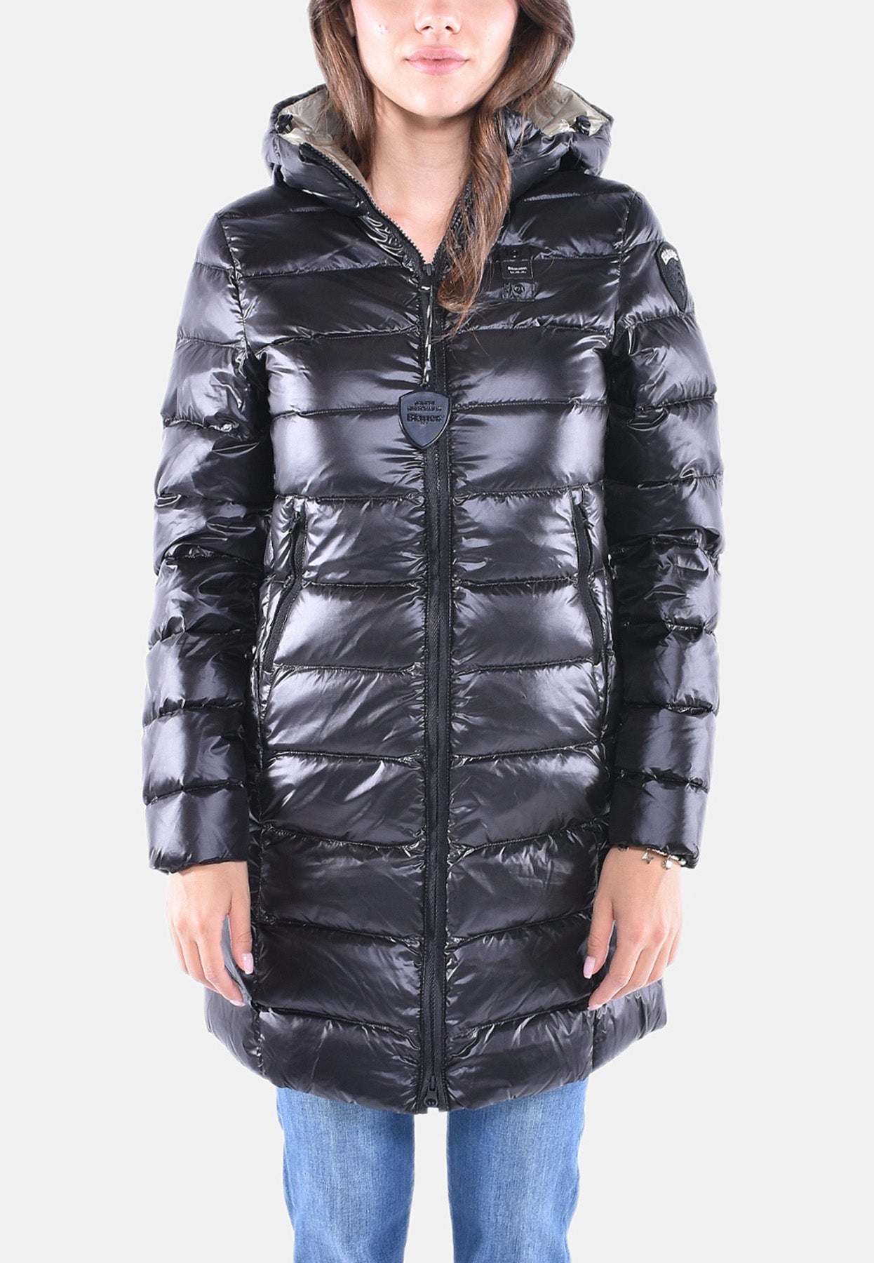 Caratteristico passante Blauer in tono cucito sul petto a sinistra e patch scudo Blauer sulla manica sinistra.