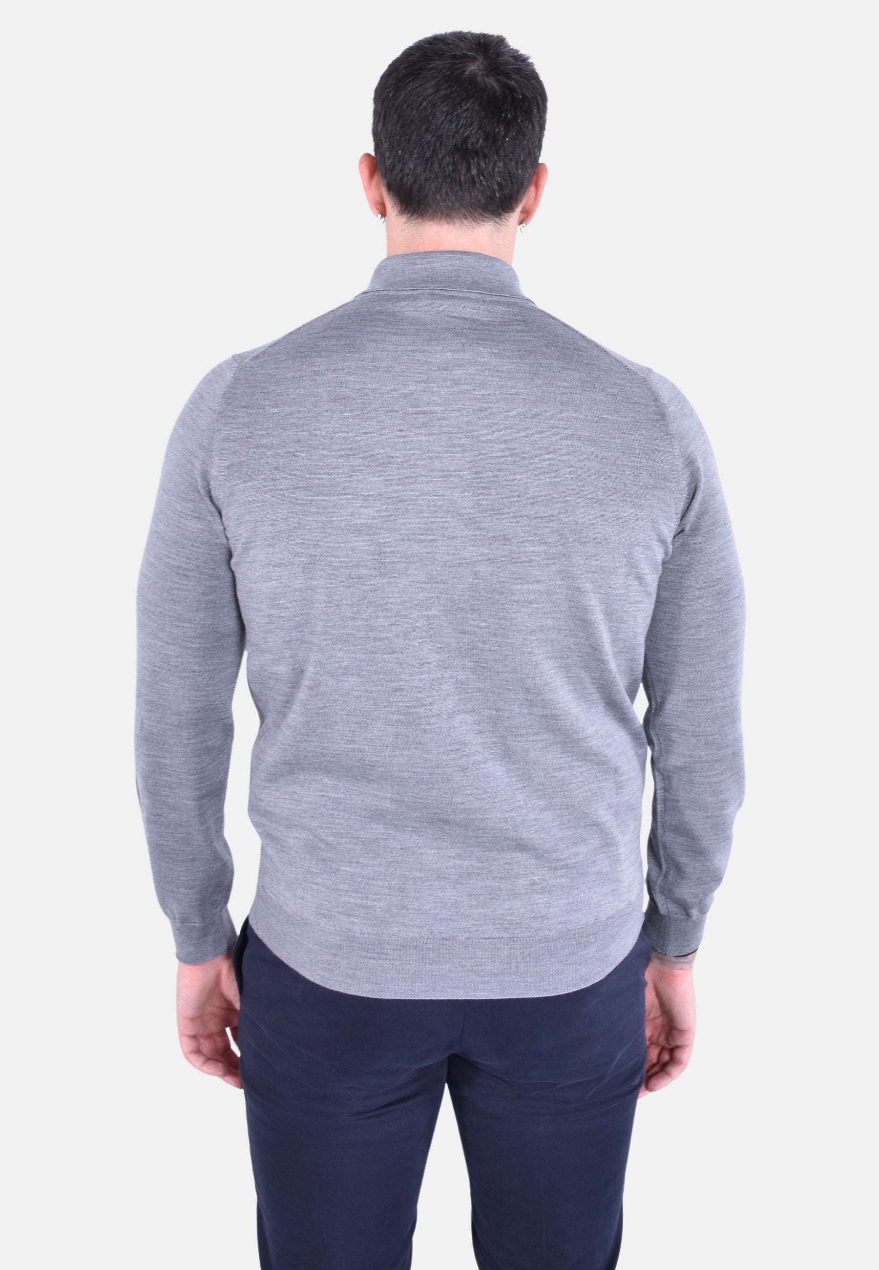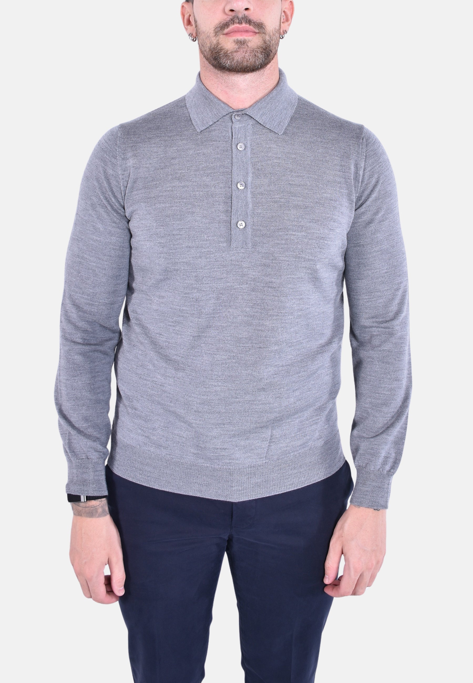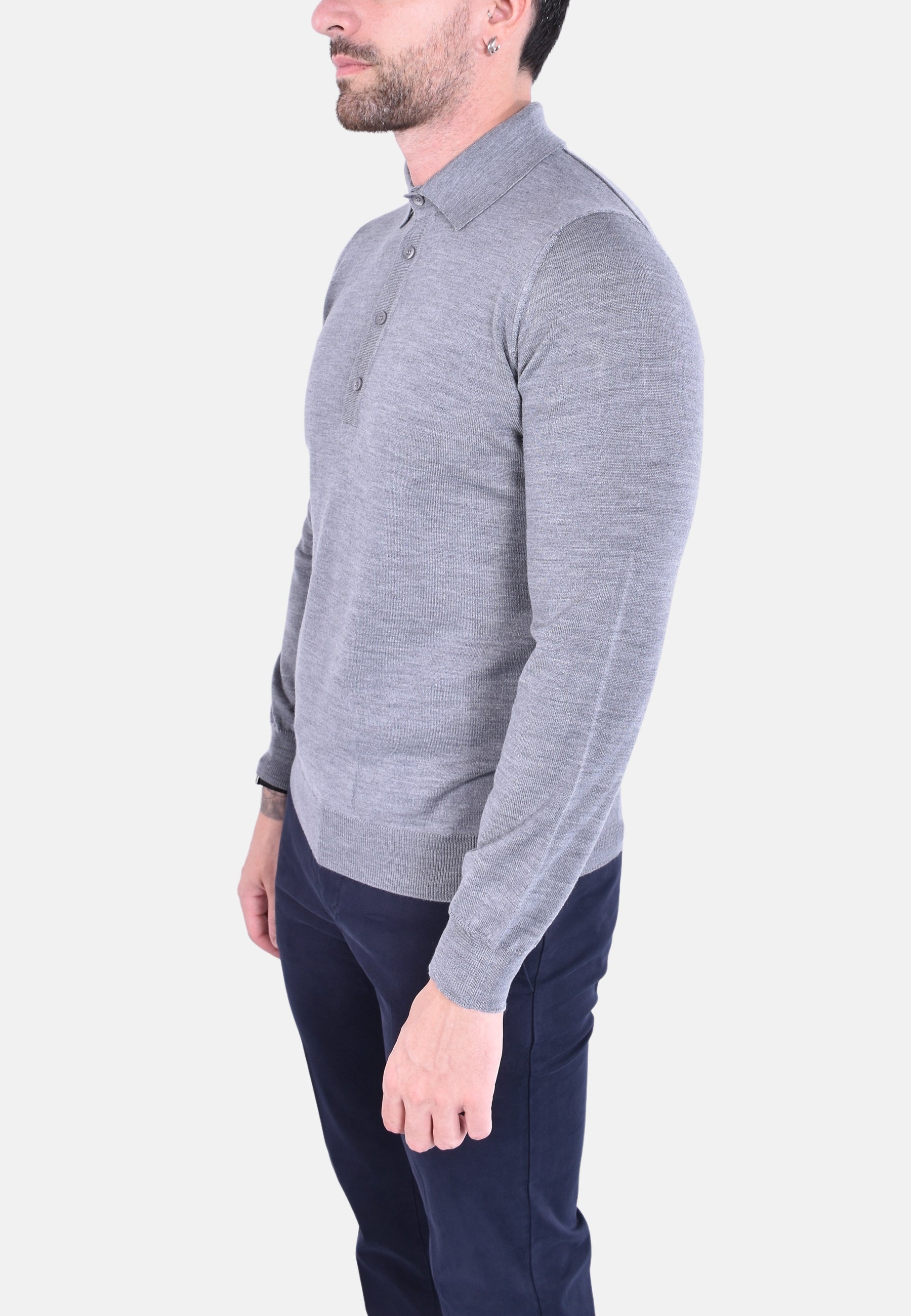 Polo senza bottoni in maglia rasata, realizzata in pura lana merino extrafine finezza 14. Vestibilità regolare con orlo, polsini e colletto a coste.