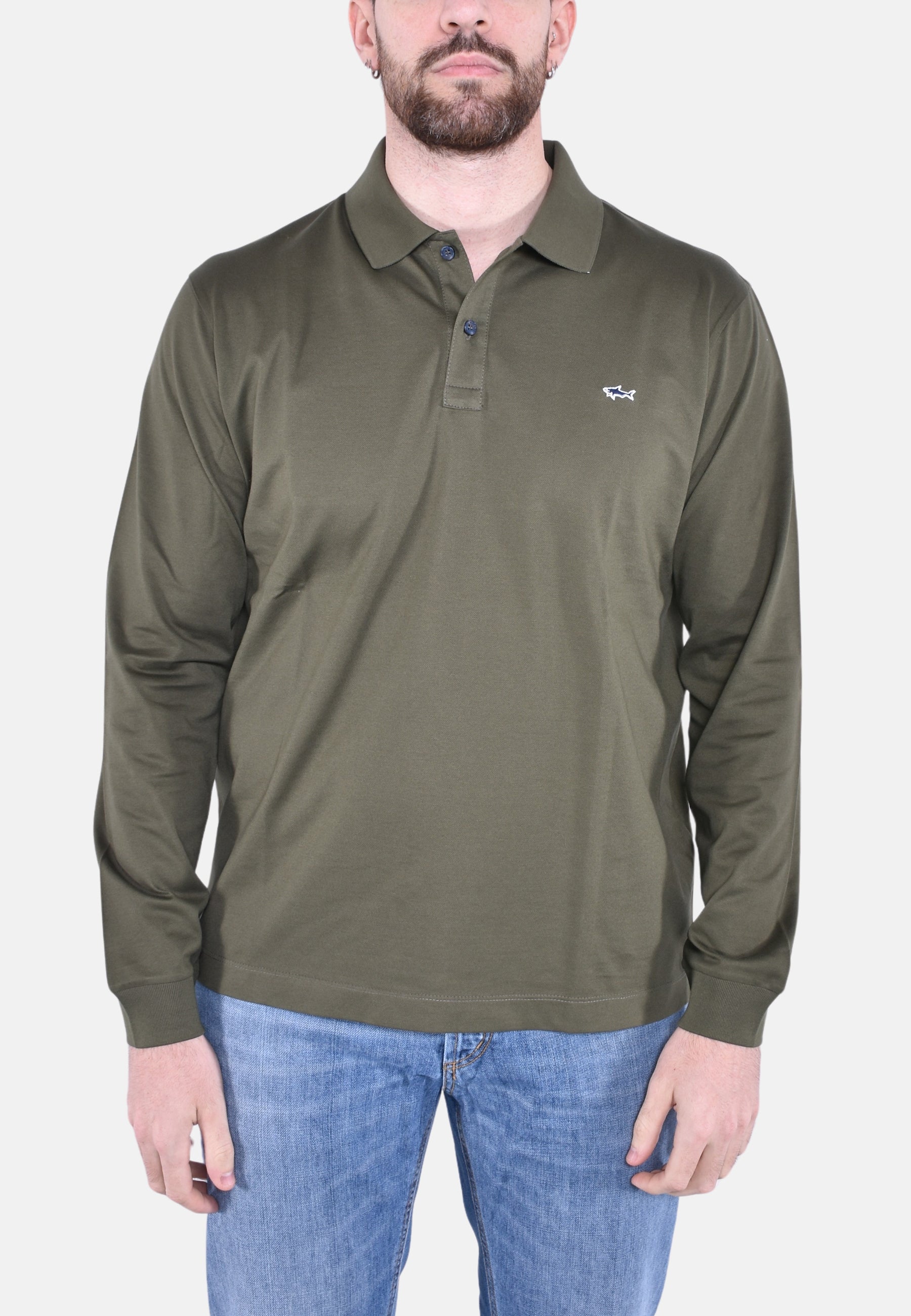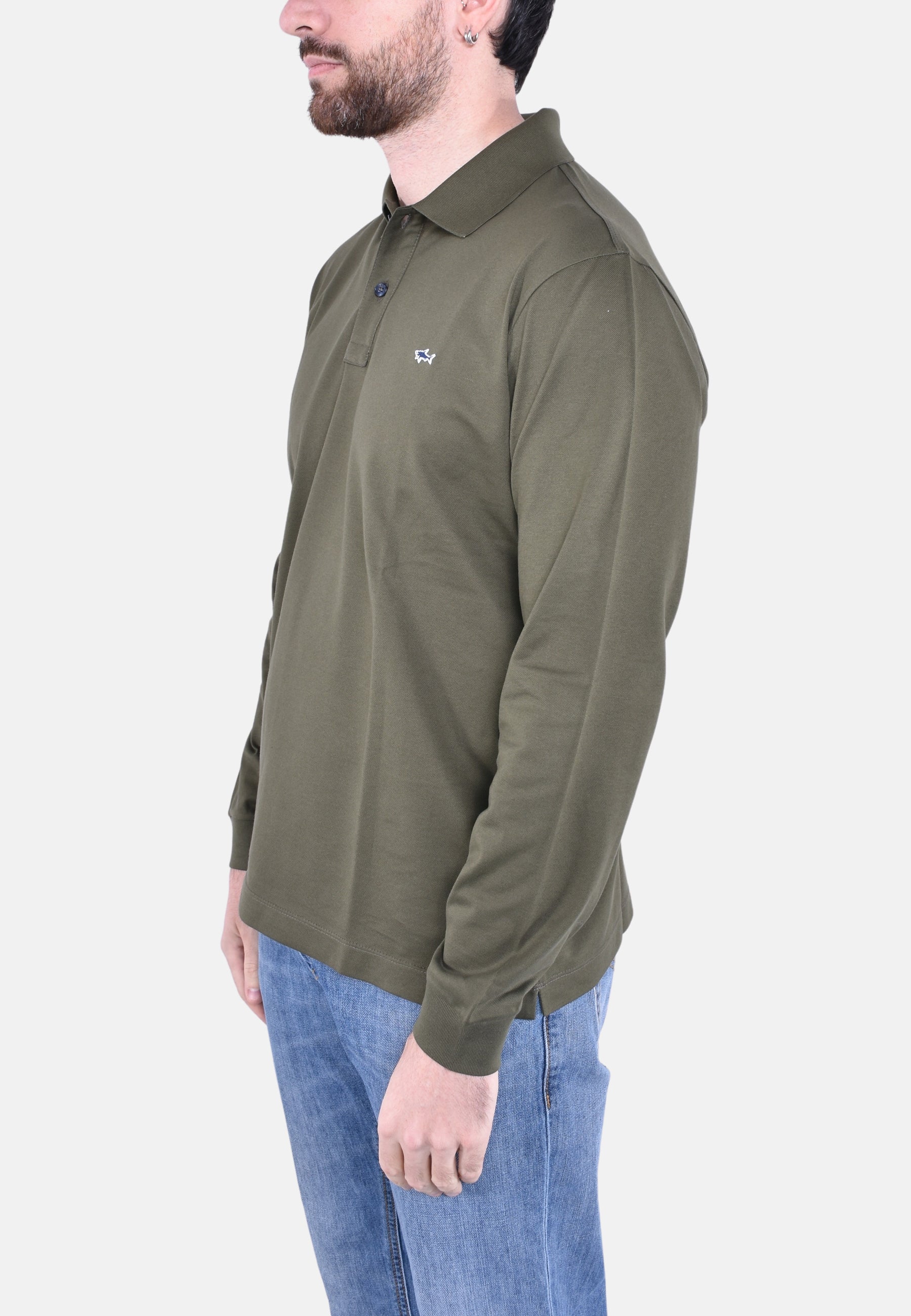 Polo maniche lunghe in cotone piquet, logo shark, regular fit.