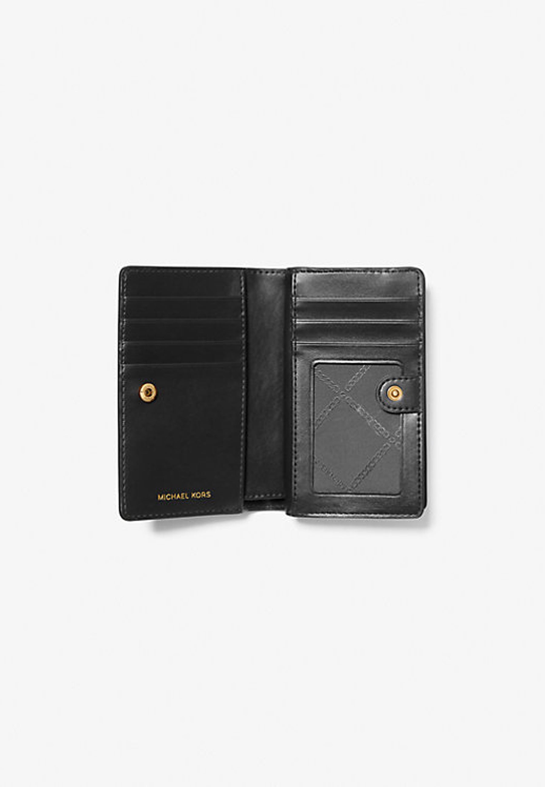 • Dettagli interni: tasca posteriore a bustina, 6 scomparti per carte, finestra per documento d'identità