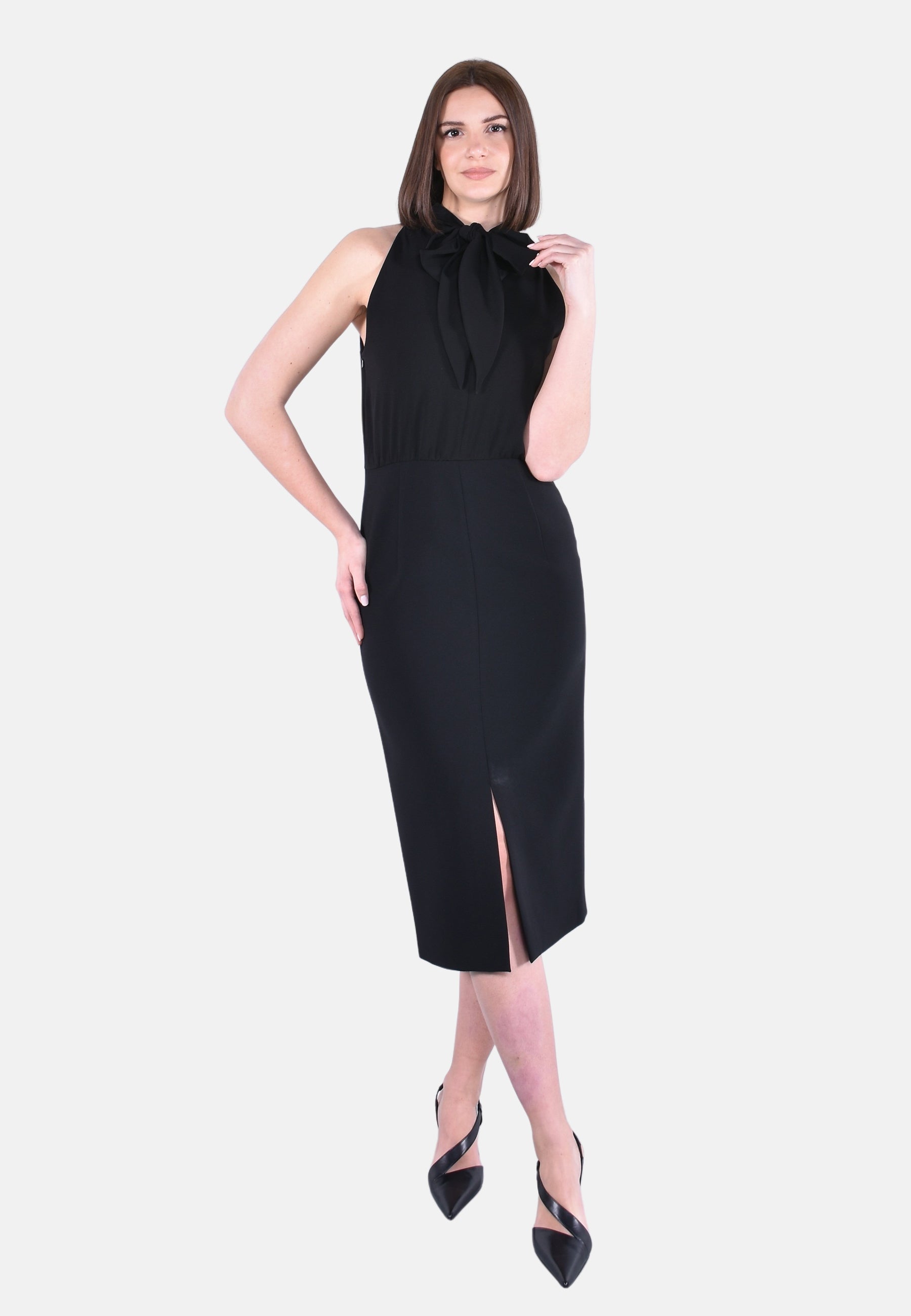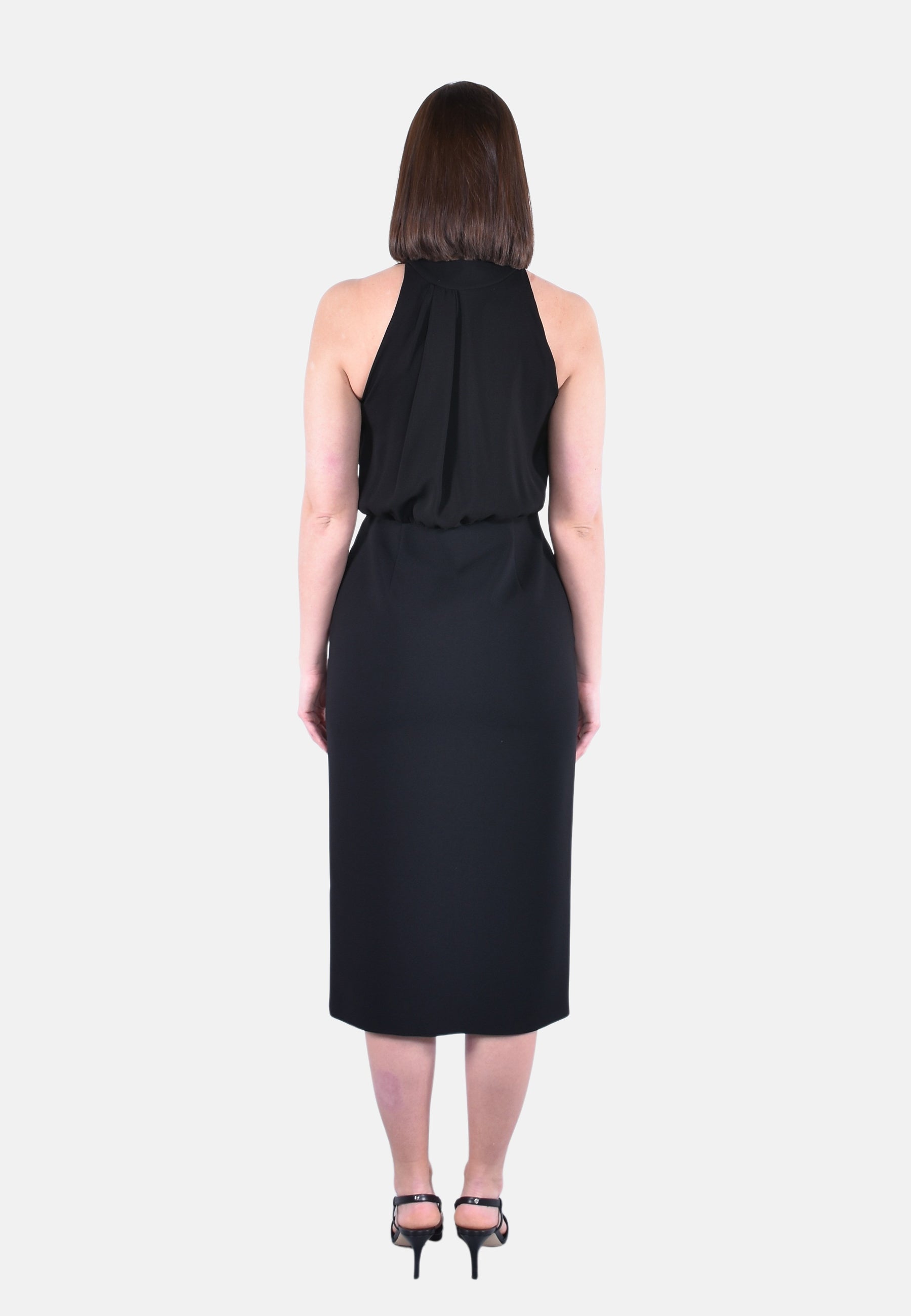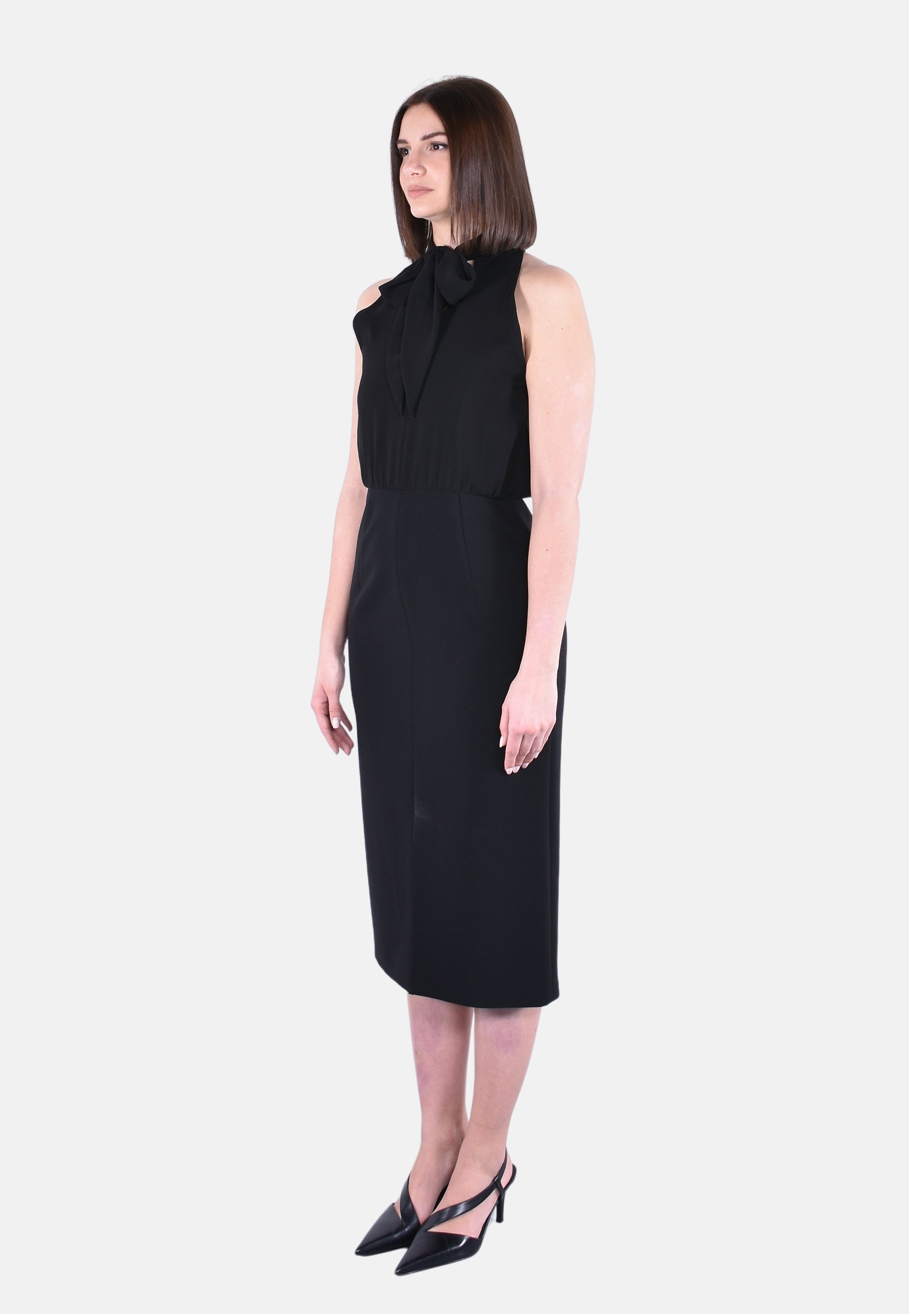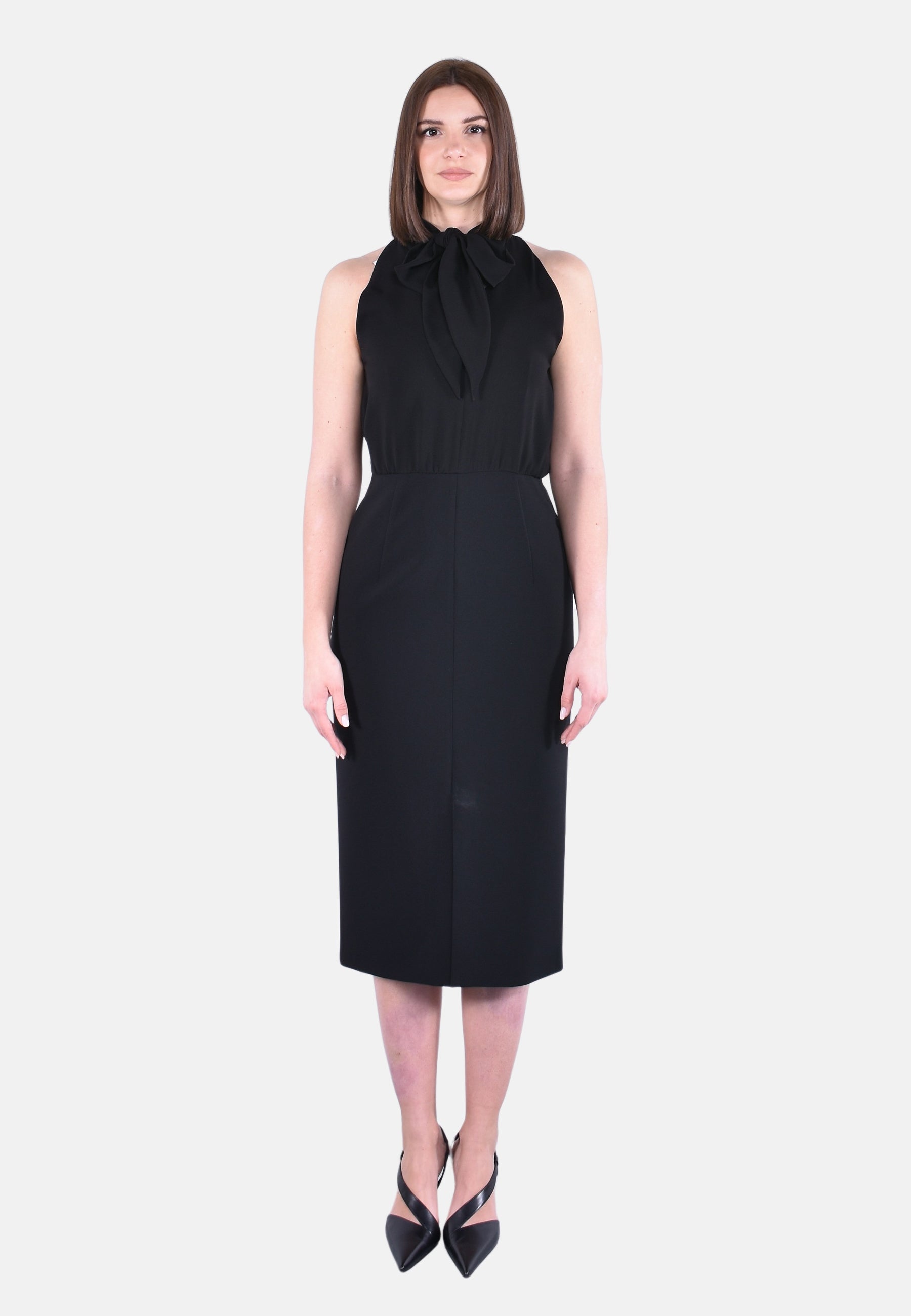 Questo elegante abito lungo nero della collezione Studio Max Mara Sele presenta un raffinato scollo all'americana che valorizza spalle e décolleté. Il taglio a tubino aderisce perfettamente alla silhouette femminile, creando un effetto slanciante. Realizzato con tessuti di alta qualità, rappresenta un capo versatile e senza tempo per occasioni formali o serate eleganti.