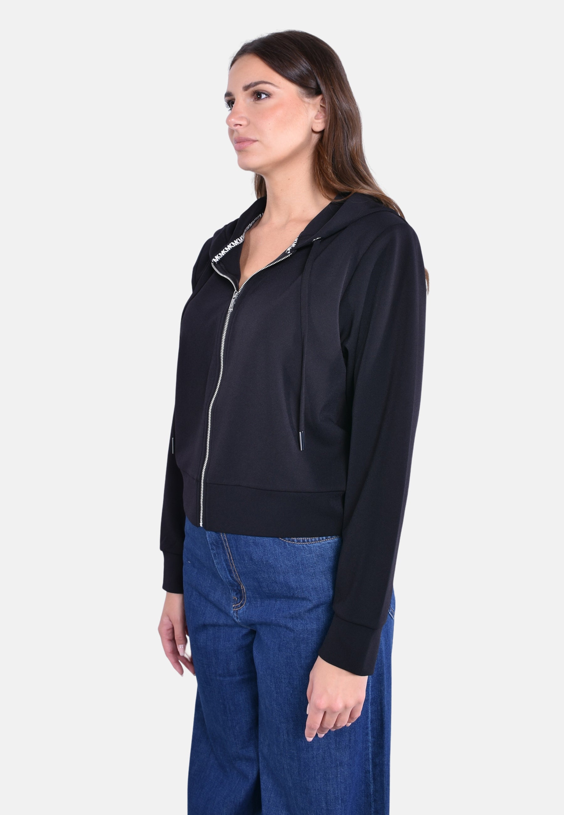 Felpa con cappuccio fisso e cerniera in metallo, polsini elasticizzati.