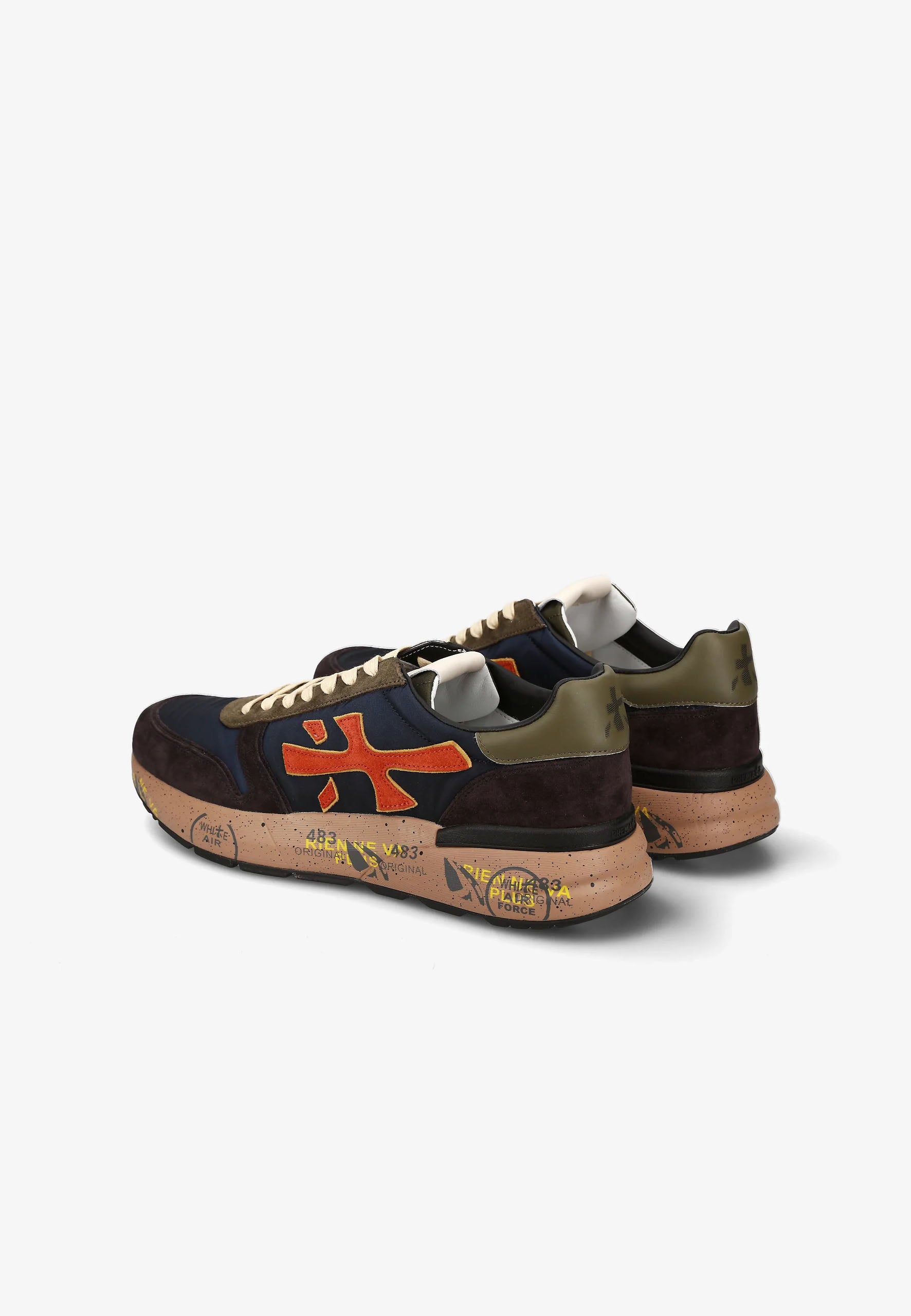 Sneakers Mick in mix di materiali e pellami di qualità. La scarpa è realizzata nella tonalità del blu per uno stile casual. L'iconica silhouette è arrichita dal logo Premiata.
