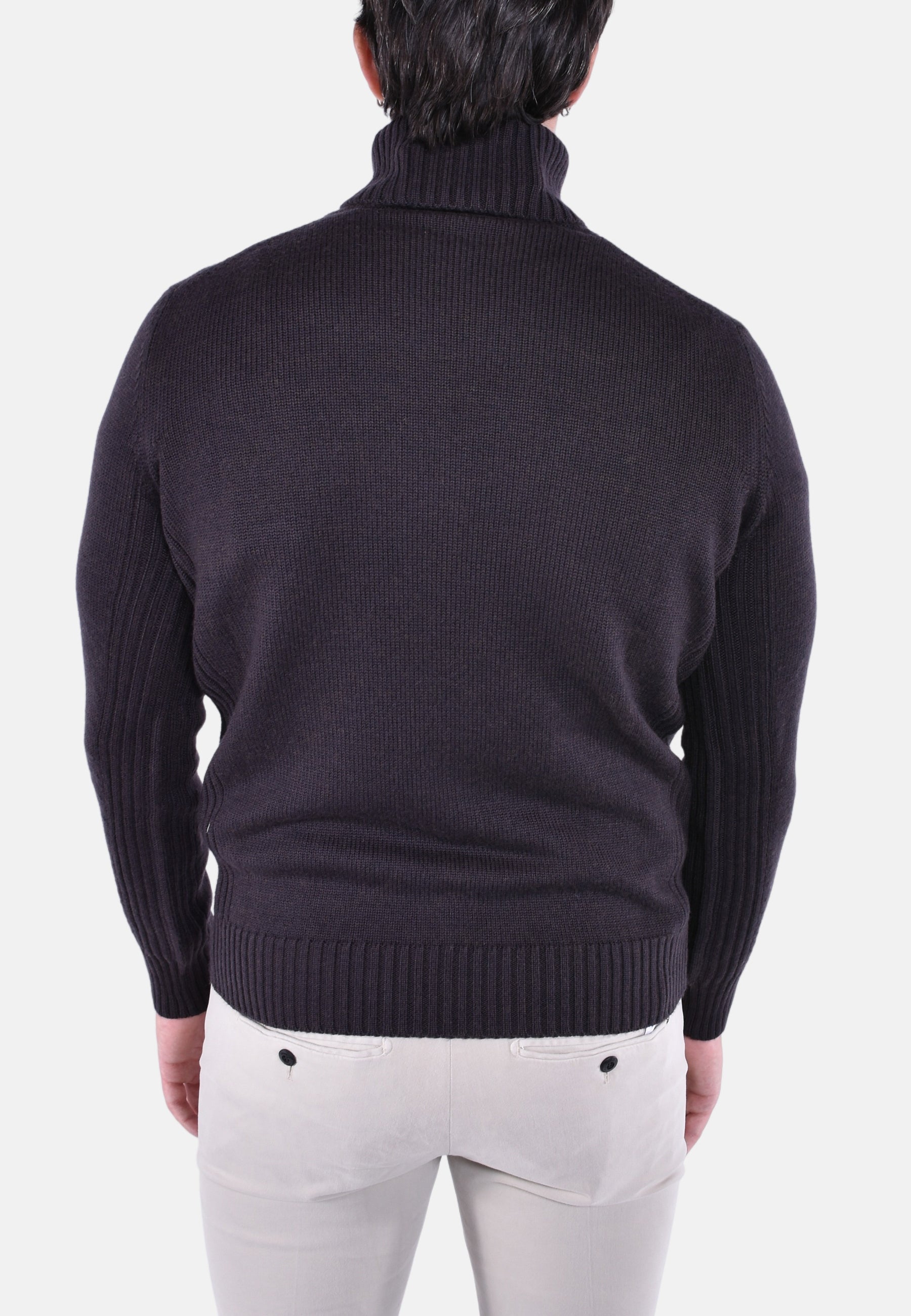 Maglione dolcevita in maglia rasata, realizzato in pura lana, morbido e avvolgente. Vestibilità regolare con orlo, polsini e scollo a coste.