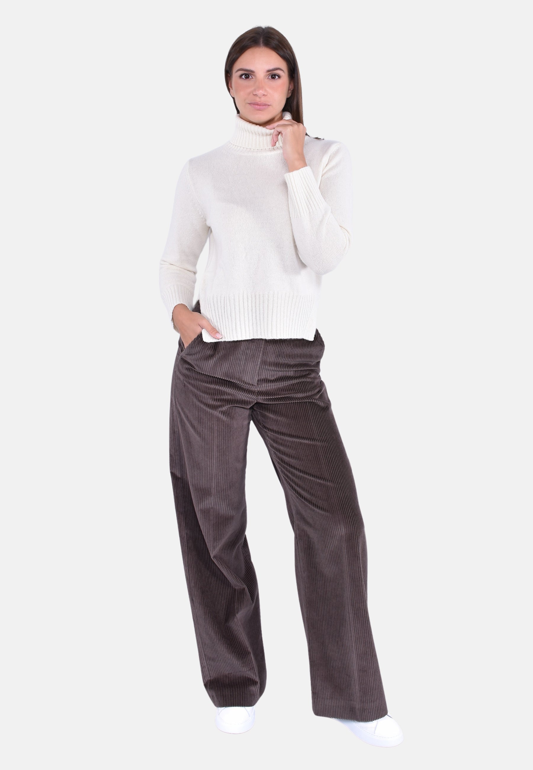 Il design valorizza la qualità del filato, unendo calore e morbidezza in un capo sempre attuale. Fit regolare dal taglio femminile.