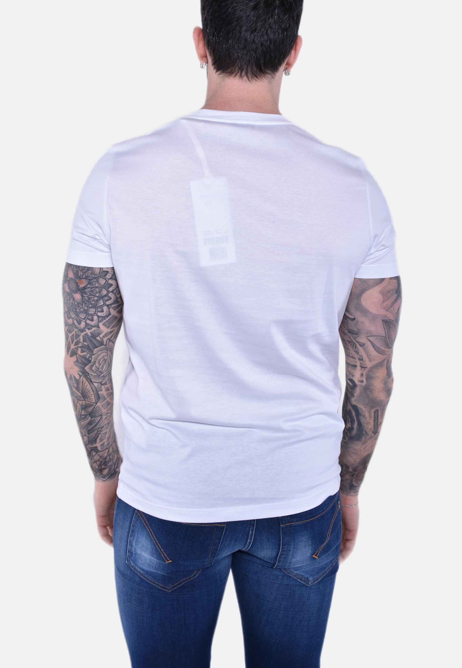 T-shirt girocollo regular a maniche corte con D logo applicato sul petto. Jersey basico. Made in Italy