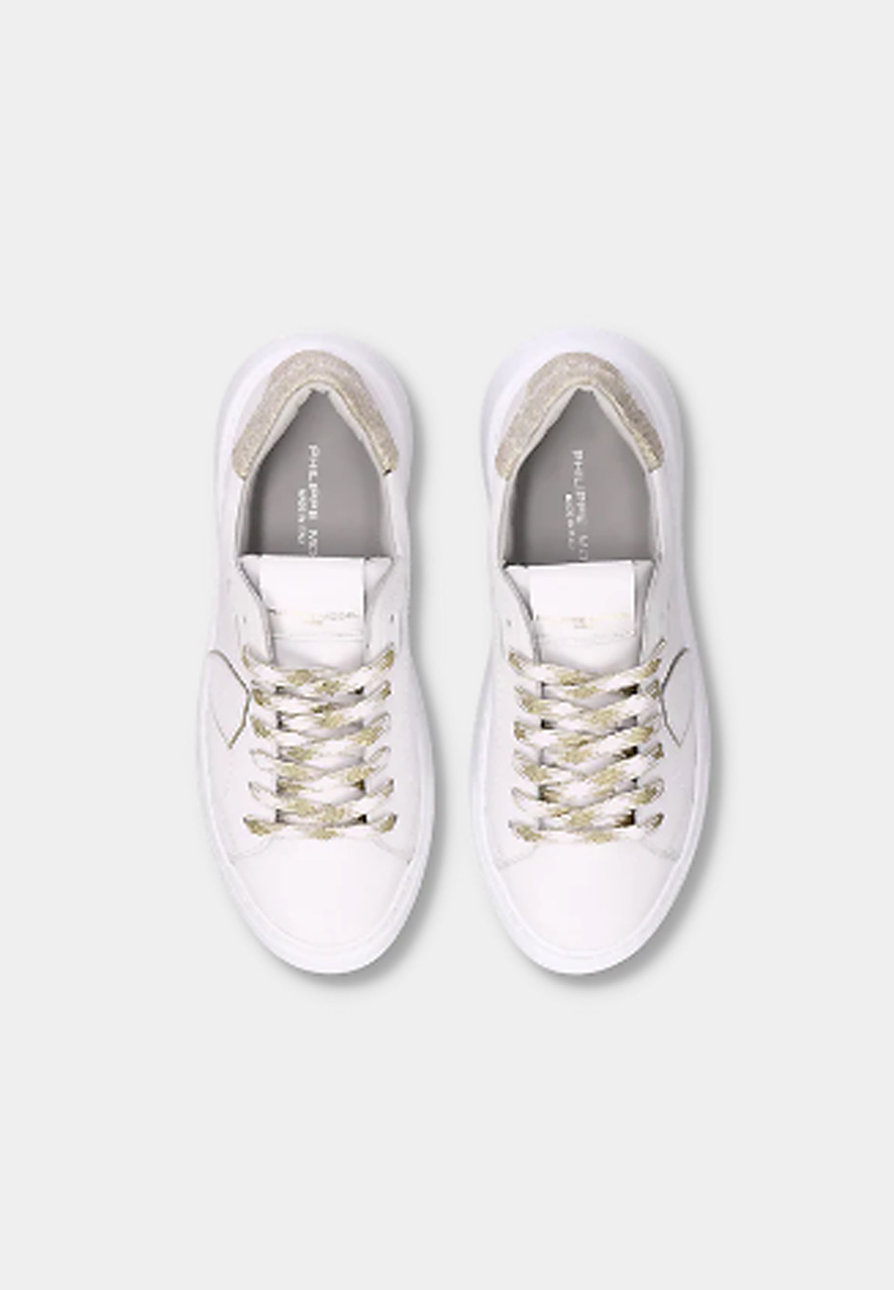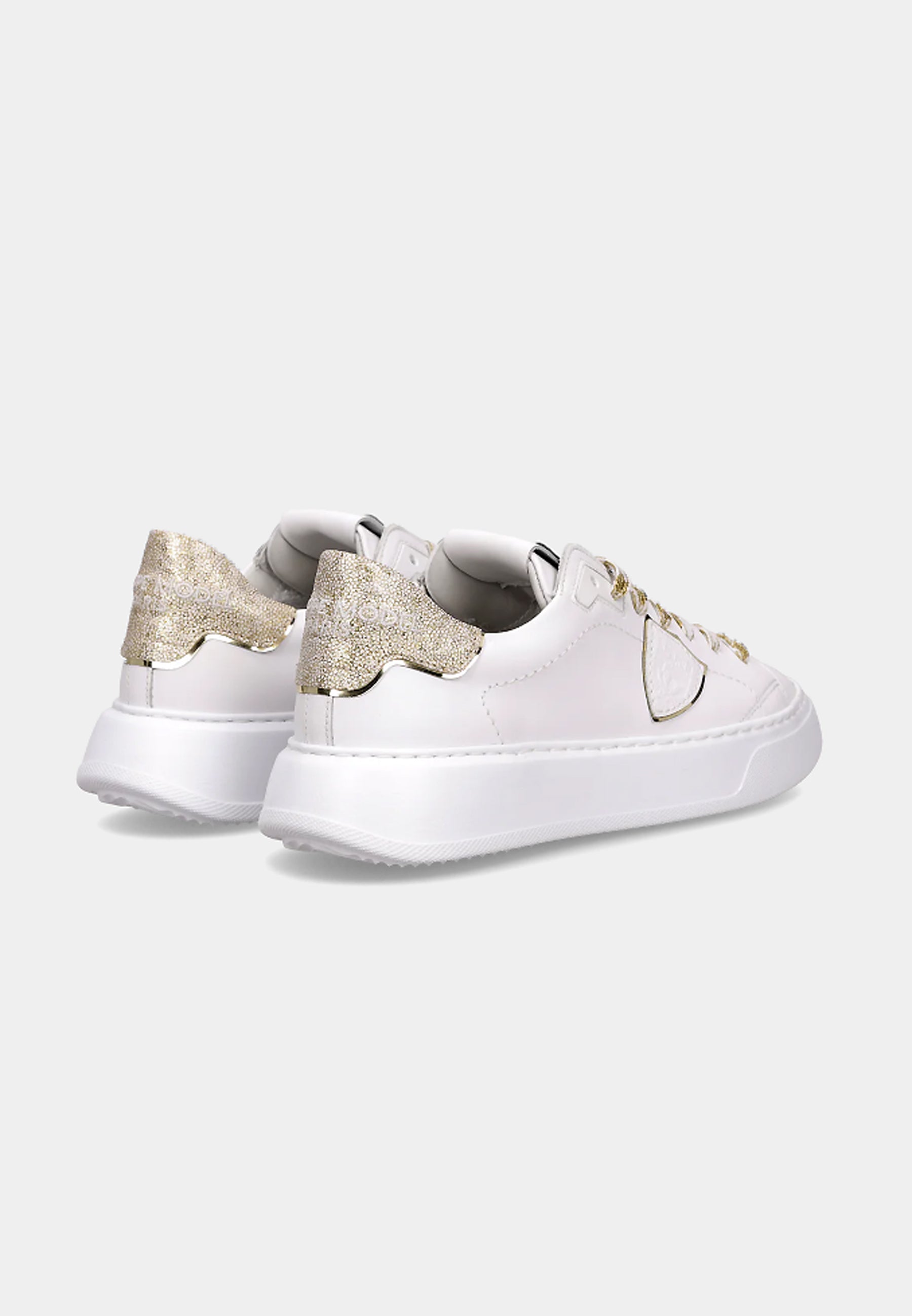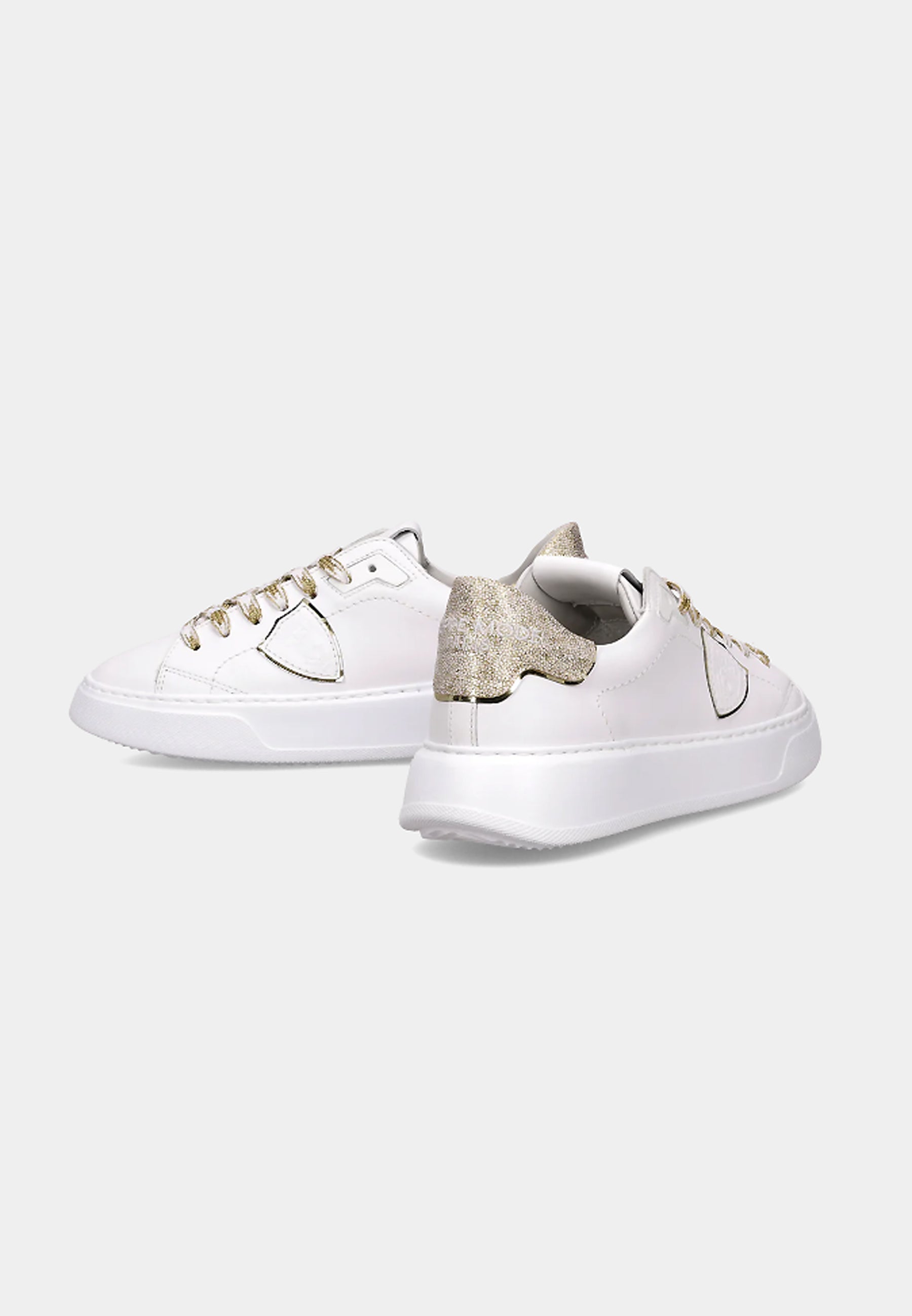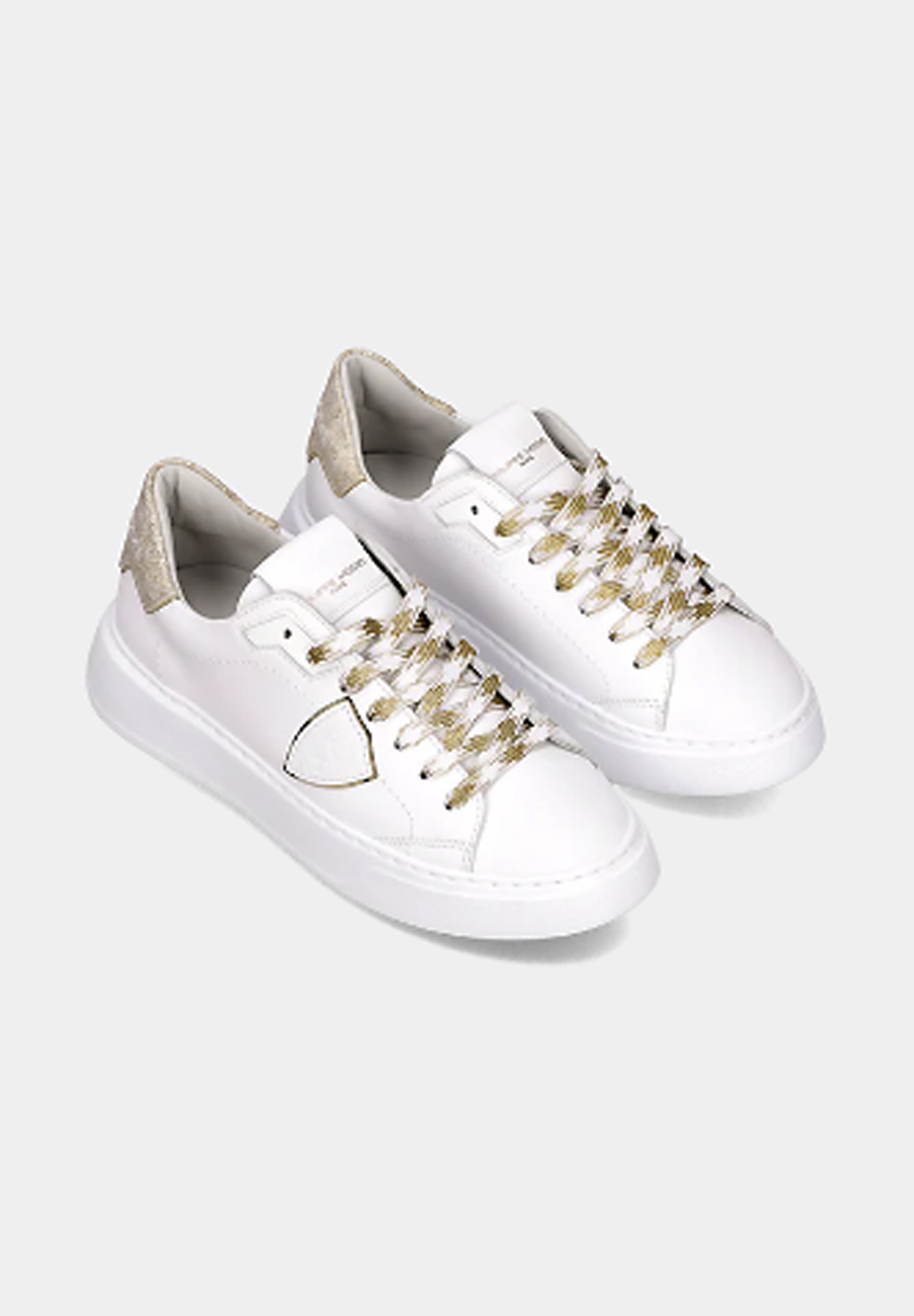 Eleva il tuo stile con le nuove sneaker Temple: forme essenziali ispirate ai modelli nineties rivisitate con creatività materiali italiani. La tomaia in morbido vitello è completata da spoiler in pelle con stampa leo Bianco oro. Dettagli oro anche nei lacci nel profilo dello scudo. La suola è in gomma ultra leggera, per un look bold assolutamente contemporaneo.